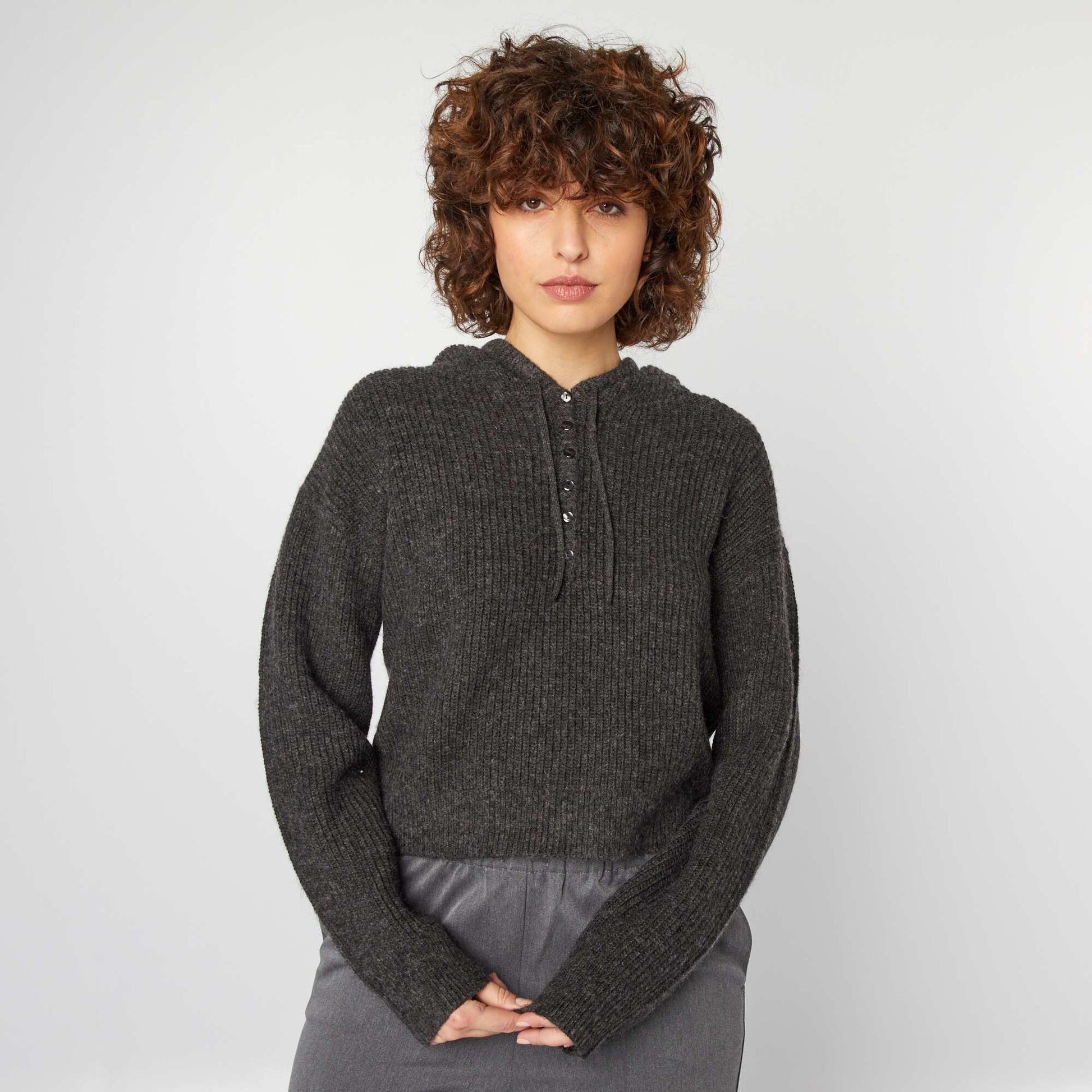 Sa coupe relaxed et sa capuche ajoutent une touche sportive, tandis que sa matière lui confère un style soigné. - Pull - Maille moulinée - Col capuche - Liens à nouer - Manches longues - Poignets côtelés - Finitions bords-côtes - Longueur dos : 53 cm environ - Les mesures prises correspondent à une taille M Notre mannequin porte une taille S et mesure 1m74