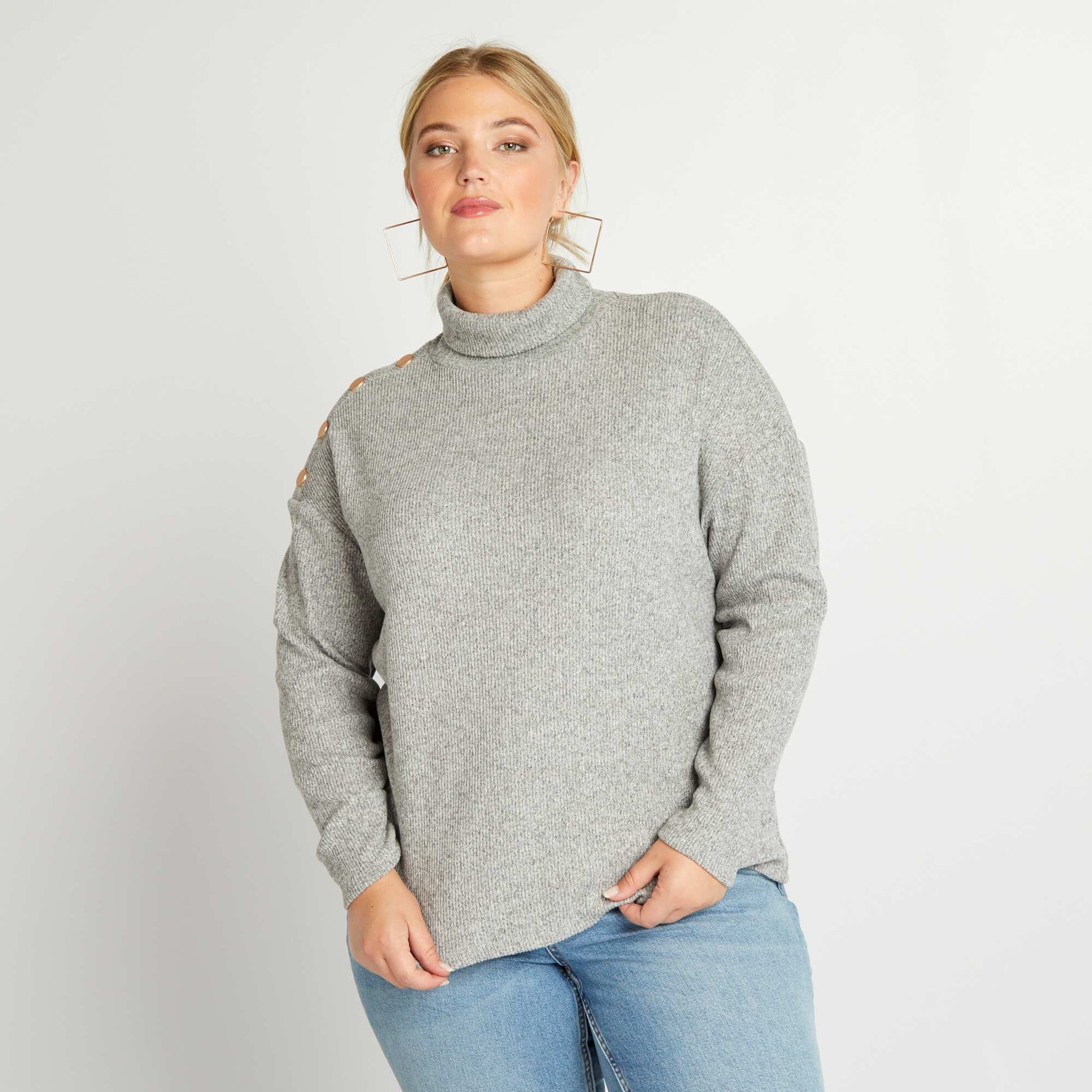 Le pull id ale pour cet hiver. Une pi ce simple et basique pour la saison ! - Pull en maille - Col roul - Manches longues - Boutons fantaisie l' paule - Longueur dos : 64 cm environ - Notre mannequin porte une taille XL et mesure 1m79