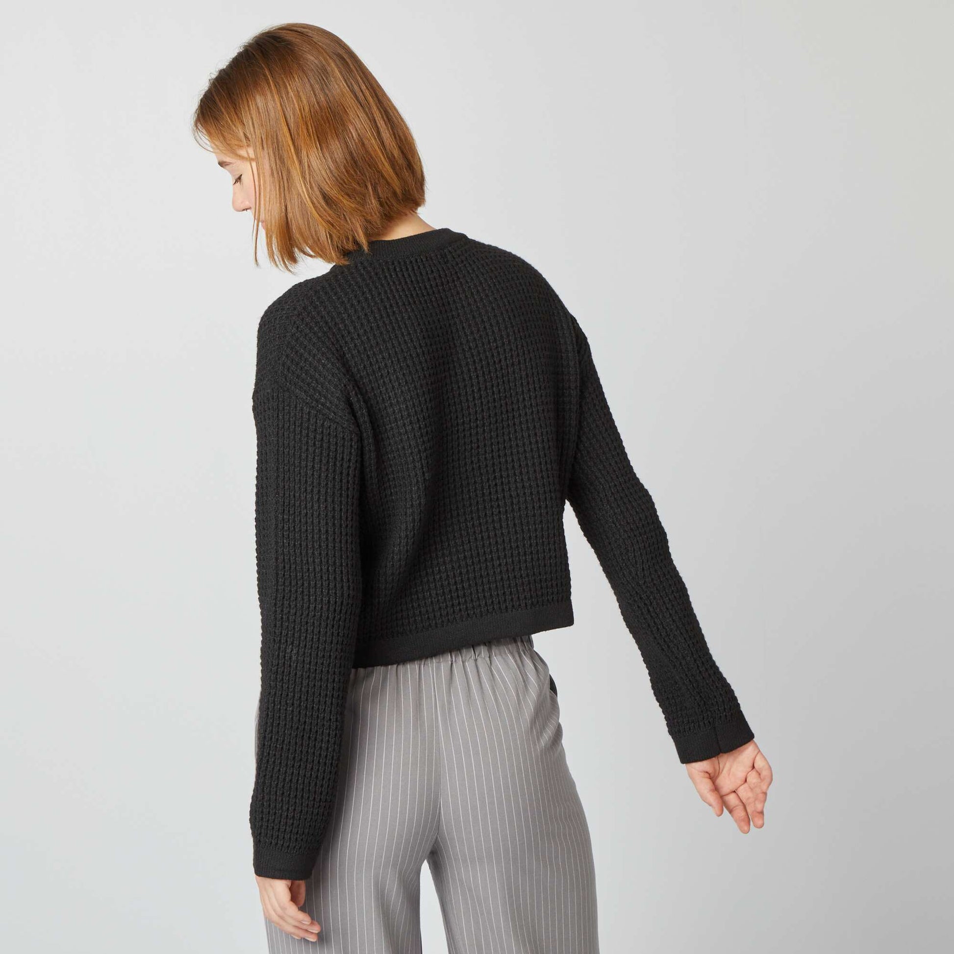 Pull crop top maille fantaisie noir