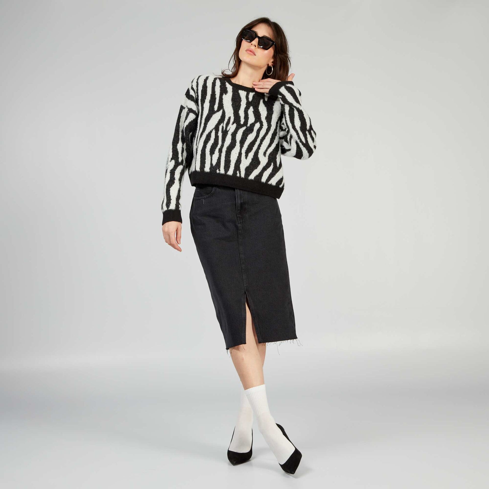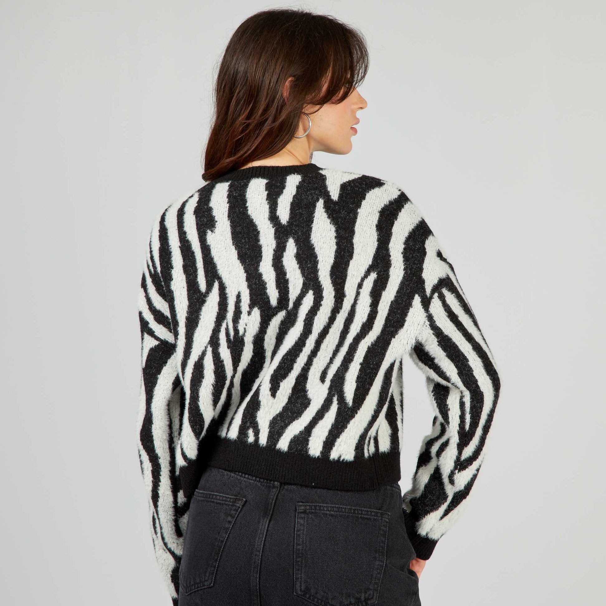 Ce pull motif z br ajoute une dose d' nergie et d'originalit votre garde-robe ! - Pull en maille - Col rond - Manches longues - Motif 'z bre' all-over - Finitions bords-c tes - Longueur dos : 51 cm environ - Notre mannequin porte une taille M et mesure 1m76