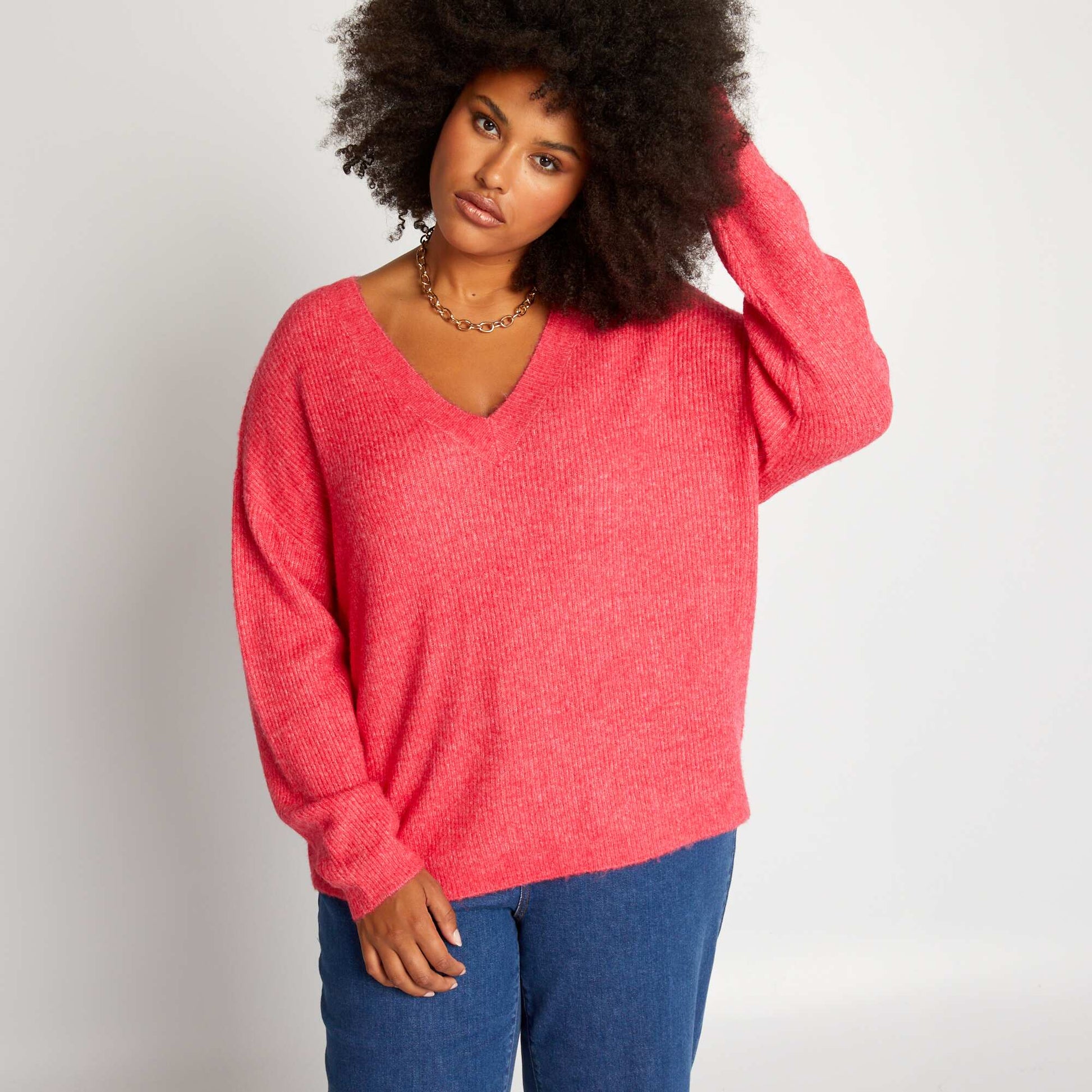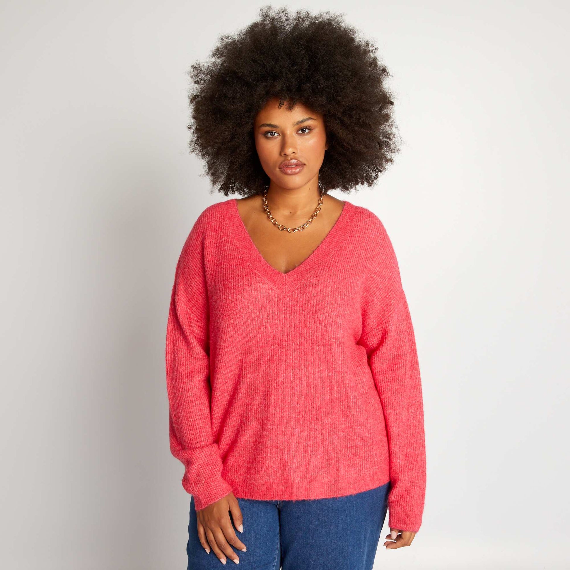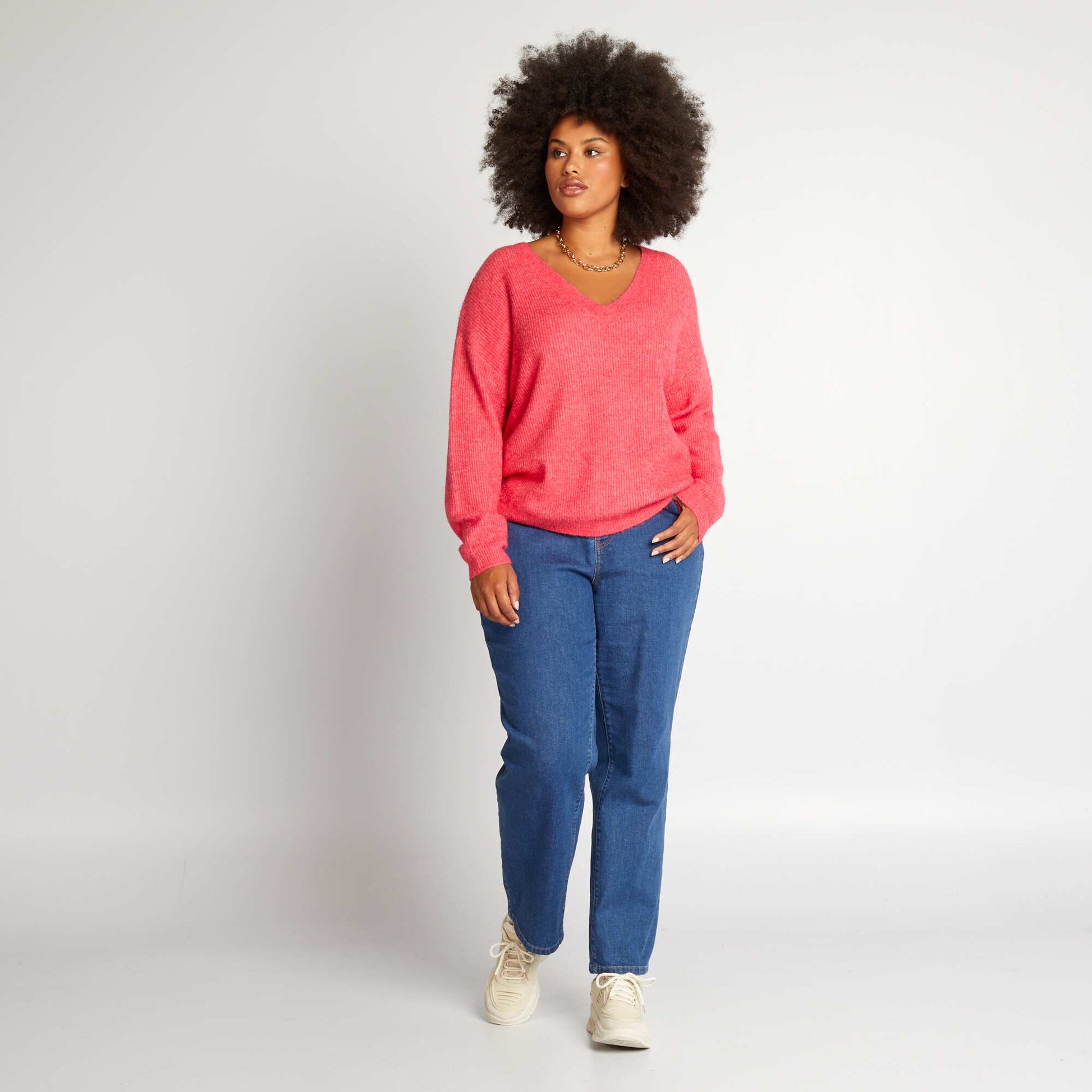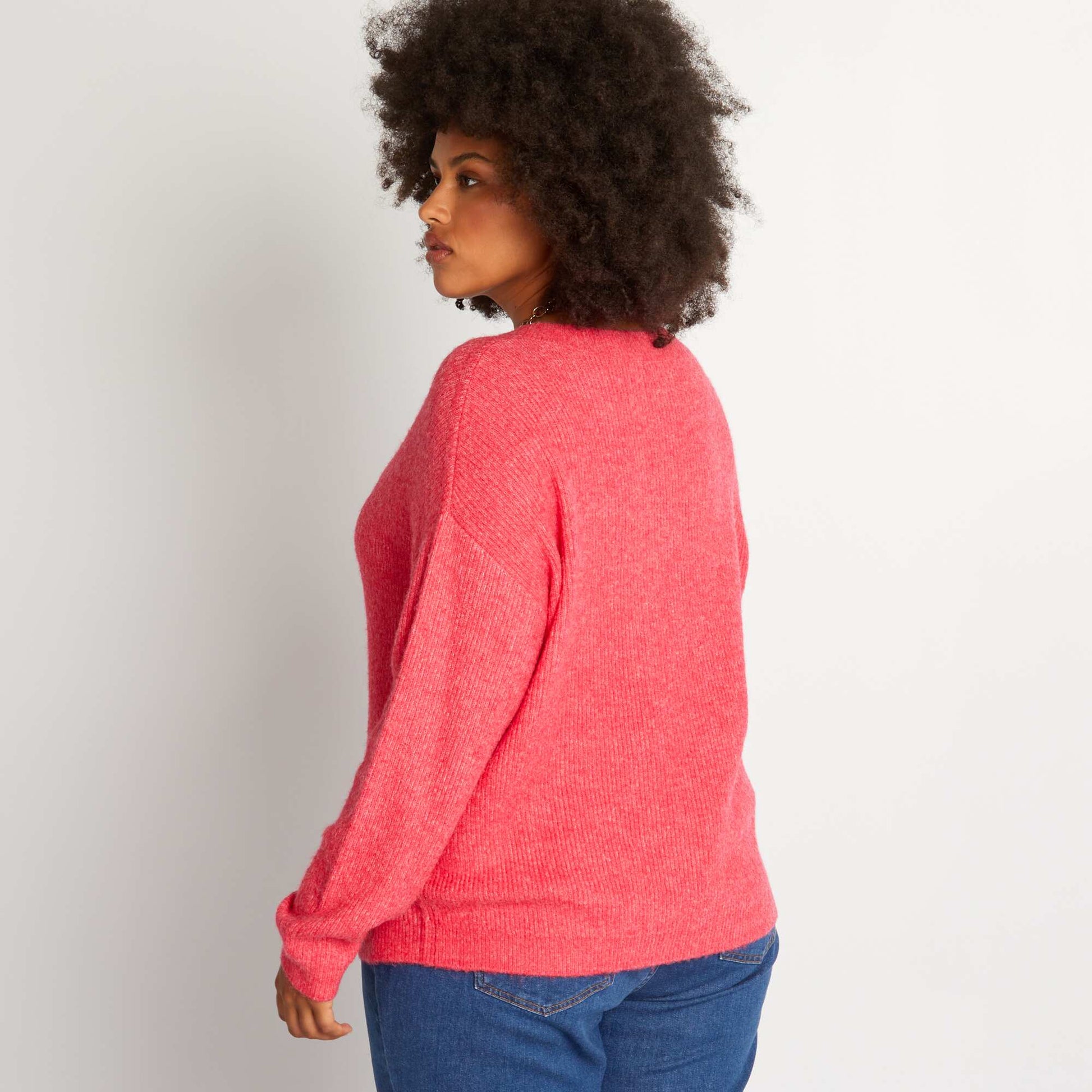 Pull en maille encolure V Rose