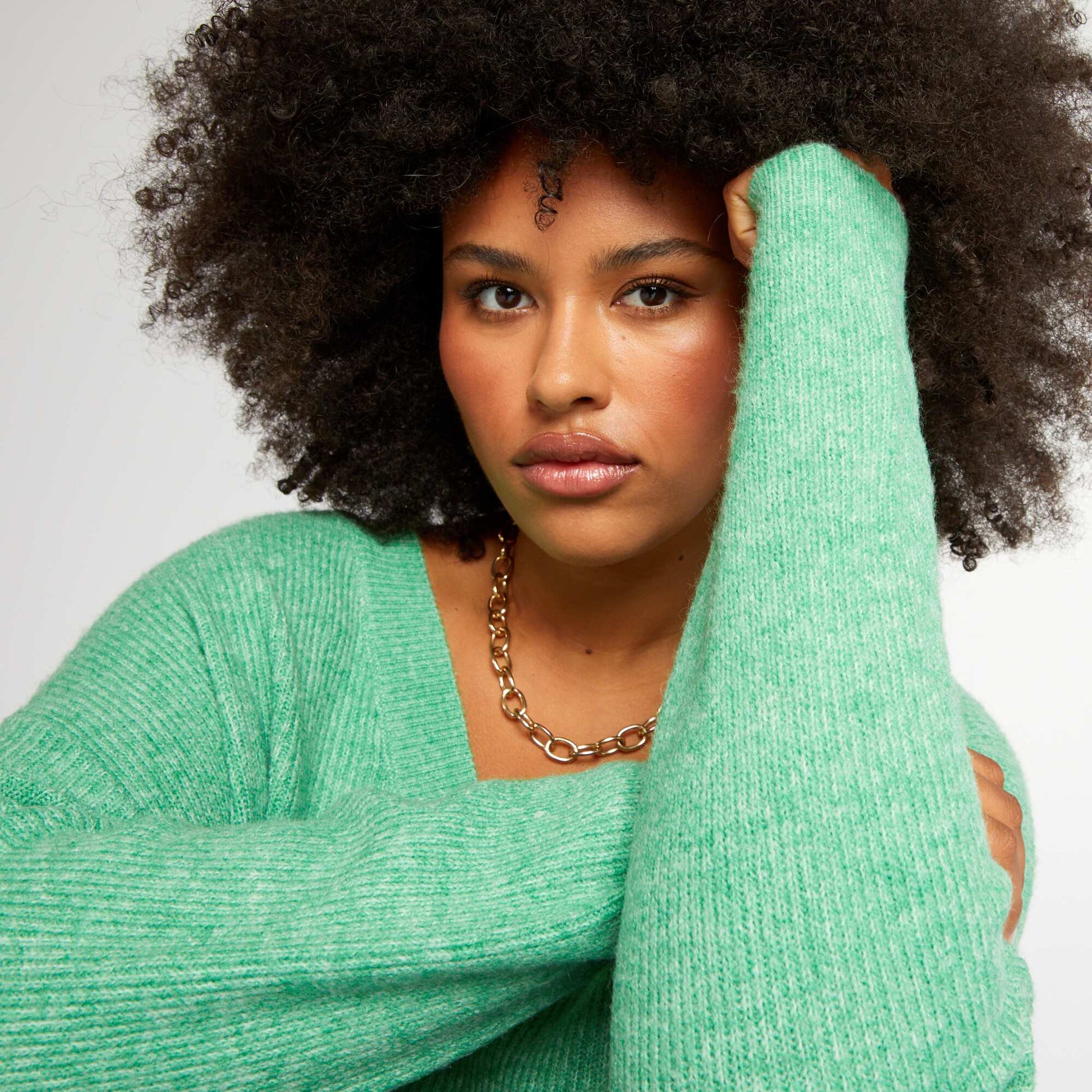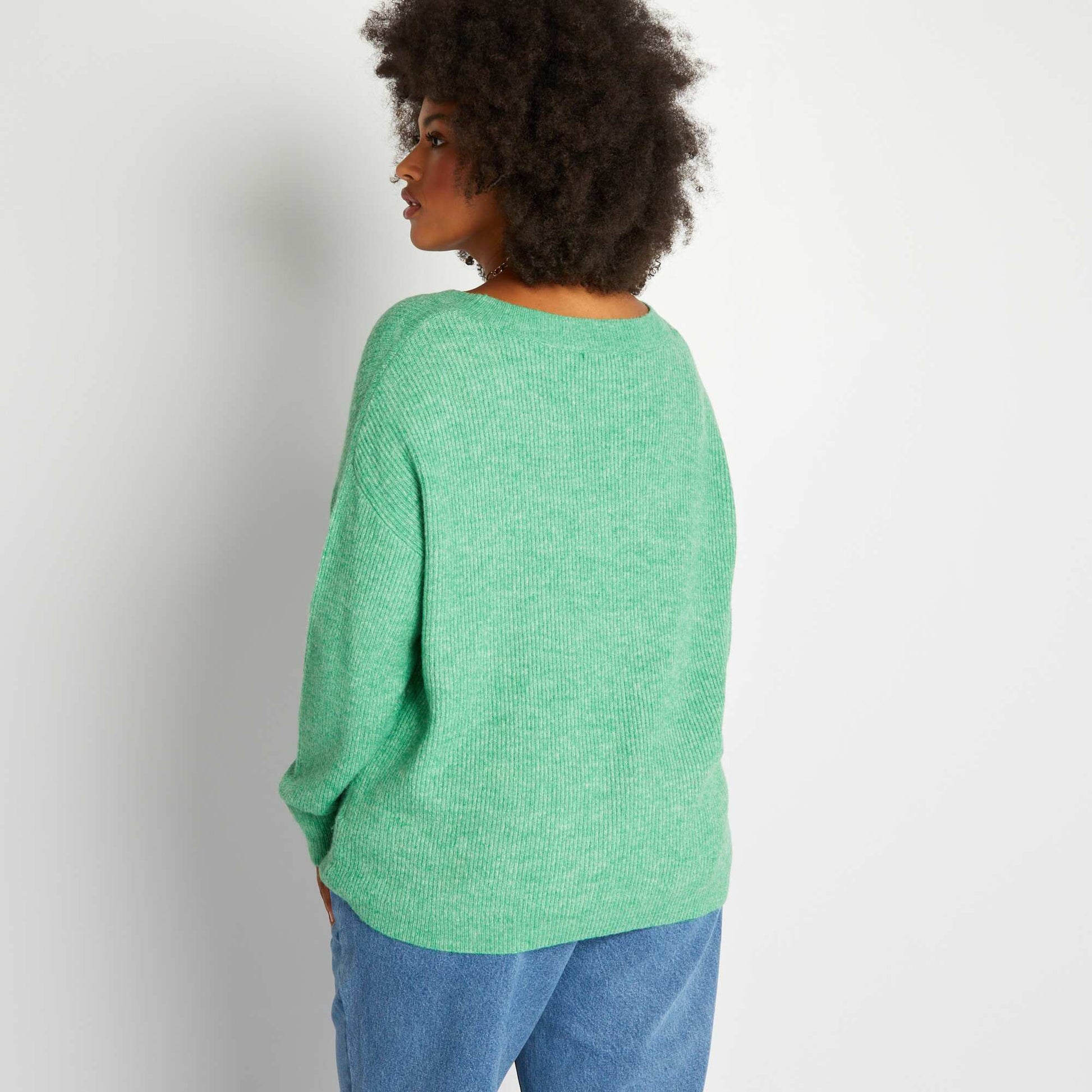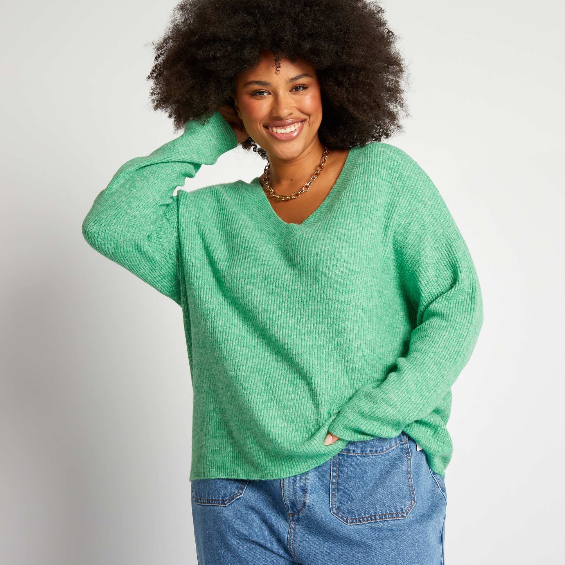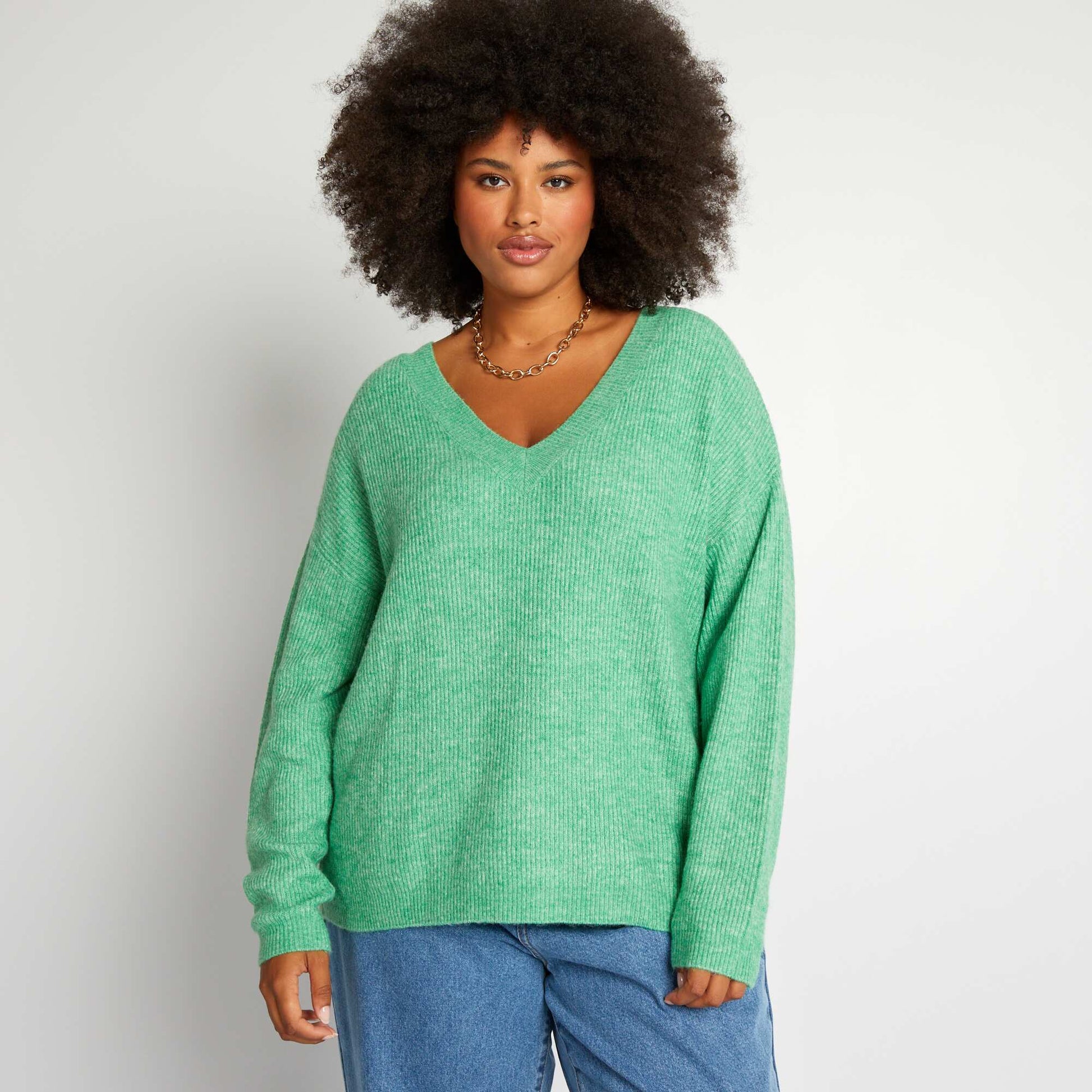 Un pull d'hiver simple et l gant avec un joli d collet . - Pull en maille - Encolure V - Manches longues - Longueur dos : 65 cm environ - Notre mannequin porte une taille XL et mesure 1m79