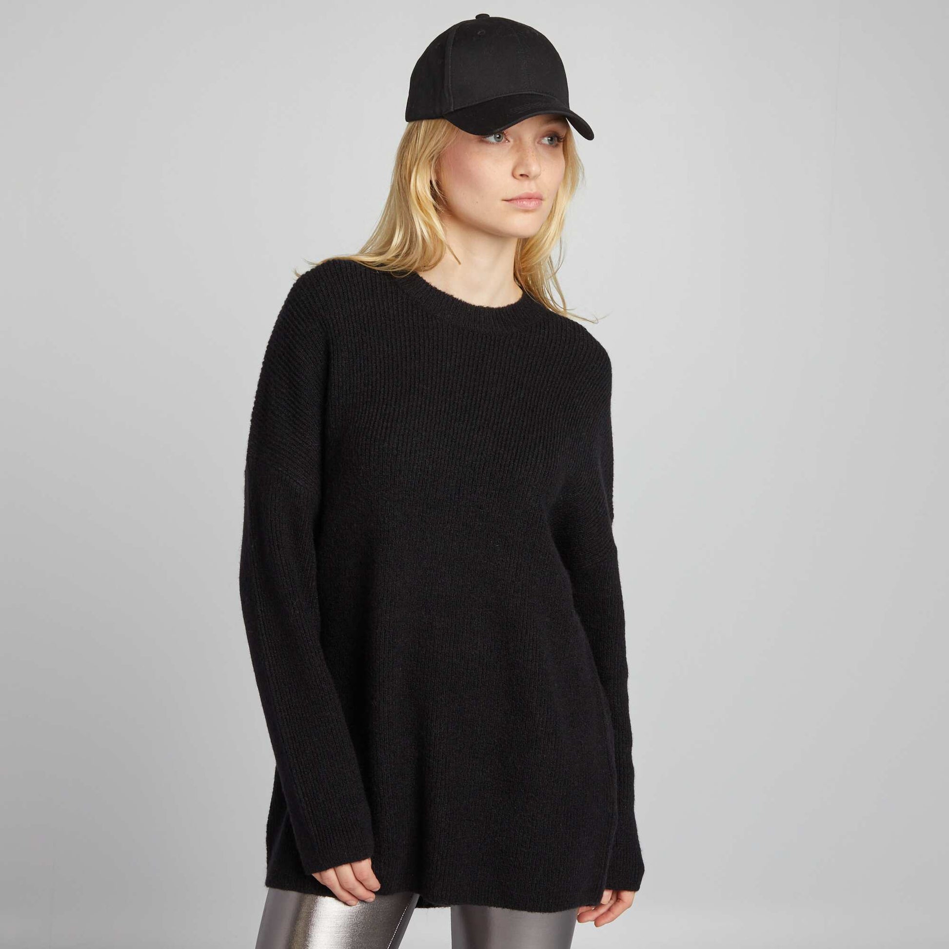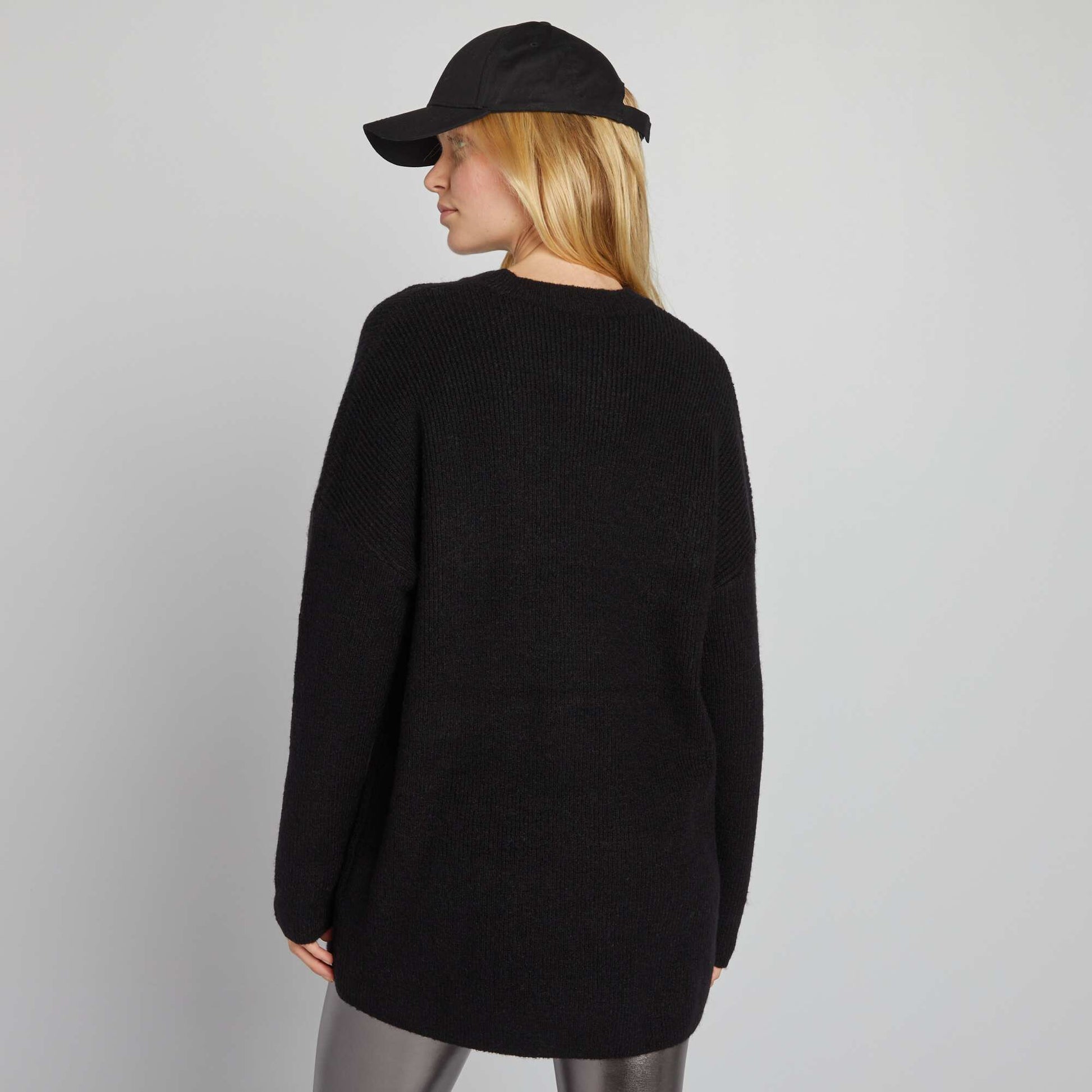 Pull long en maille c tel e noir