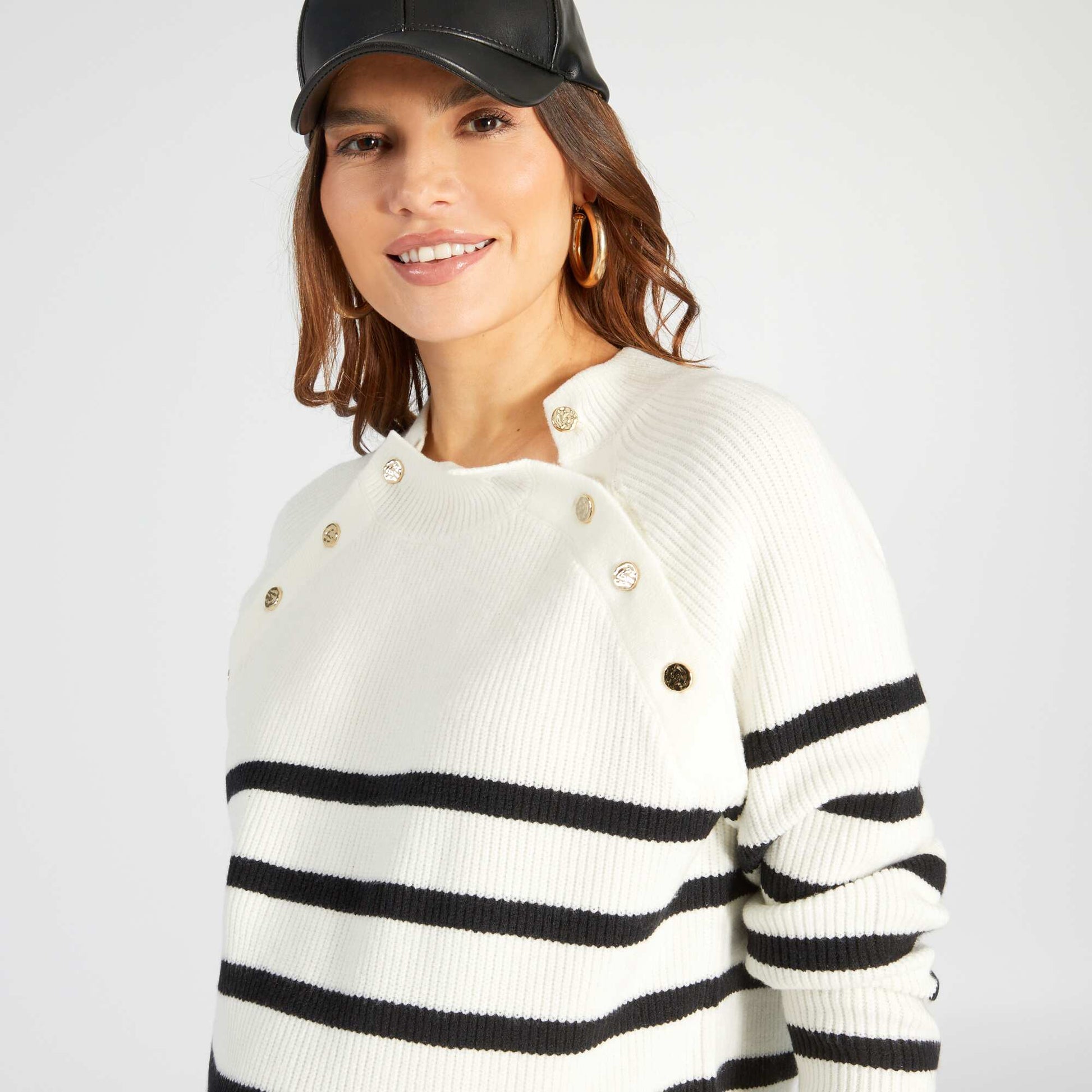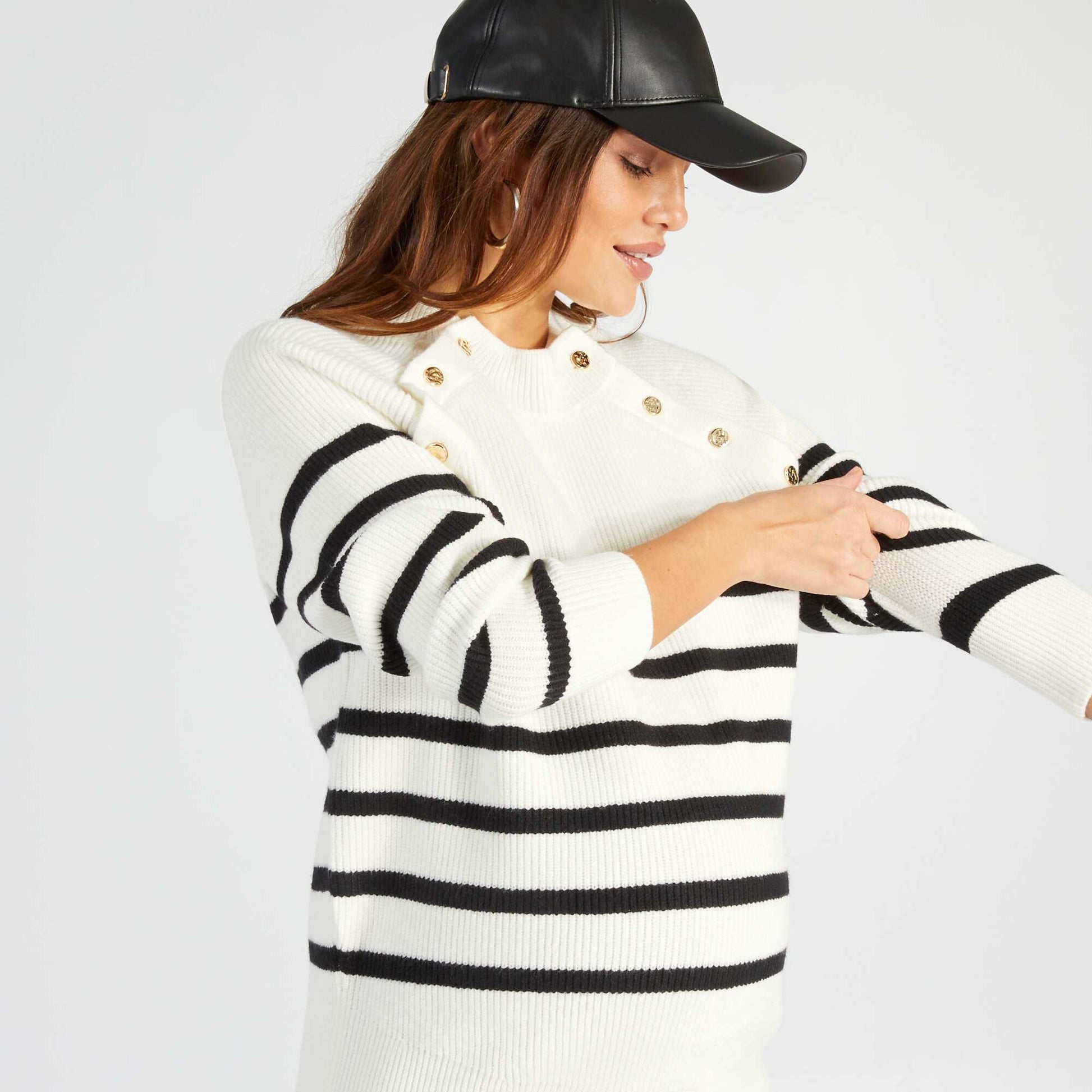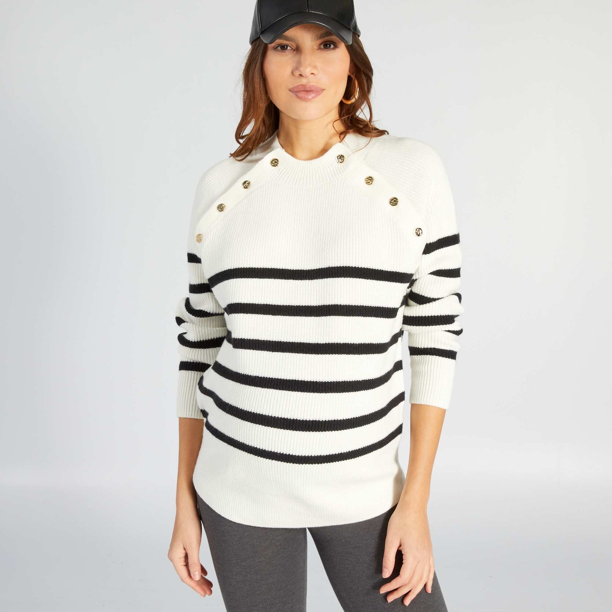 Avec ce joli pull marini re, vous alliez look et praticit pour nourrir b b ! - Pull d'allaitement - En maille c tel e - Col rond - Manches longues - Ouvertures pressionn es devant l'avant pour faciliter l'allaitement - Motif 'rayures' all-over - Notre mannequin porte une taille S et mesure 1m70