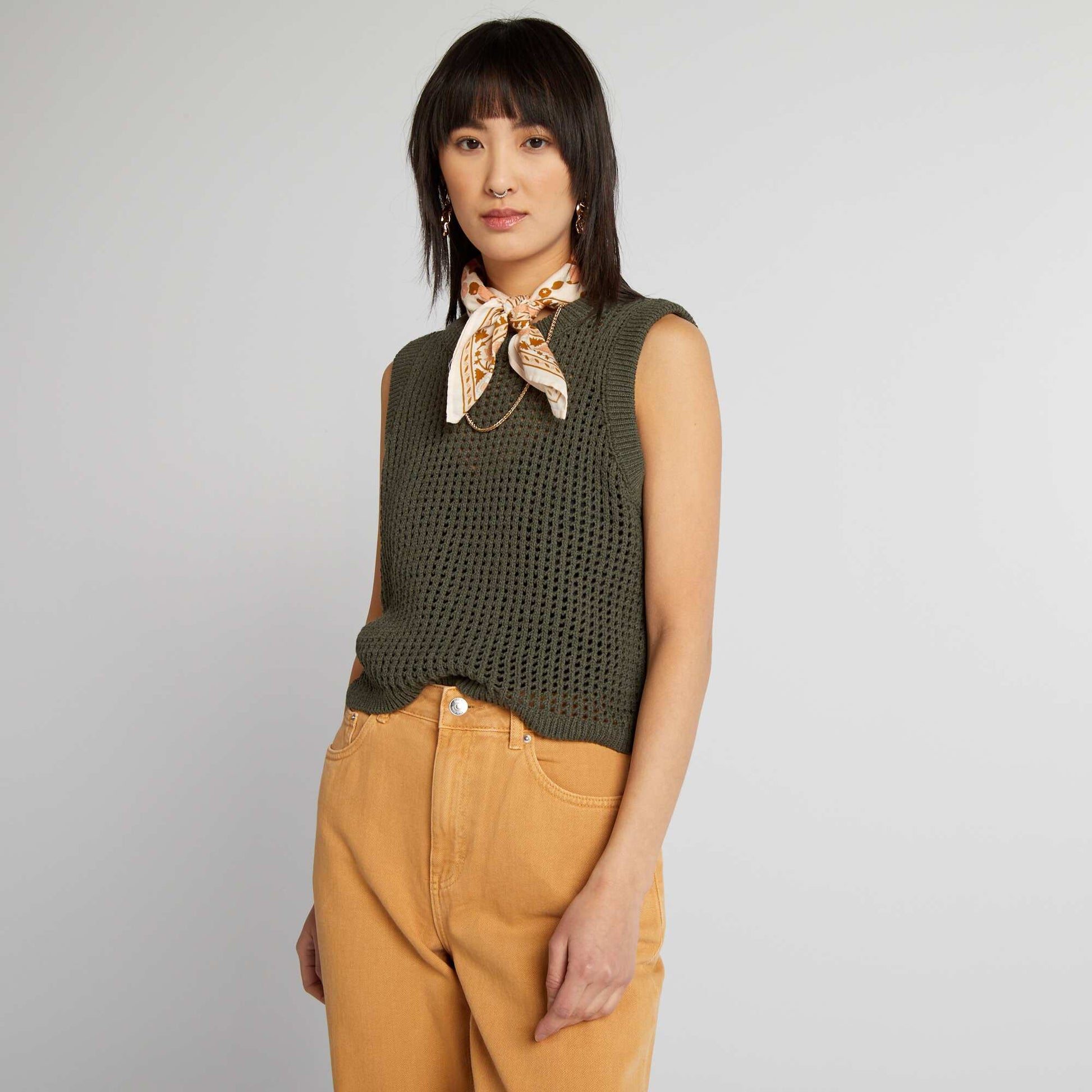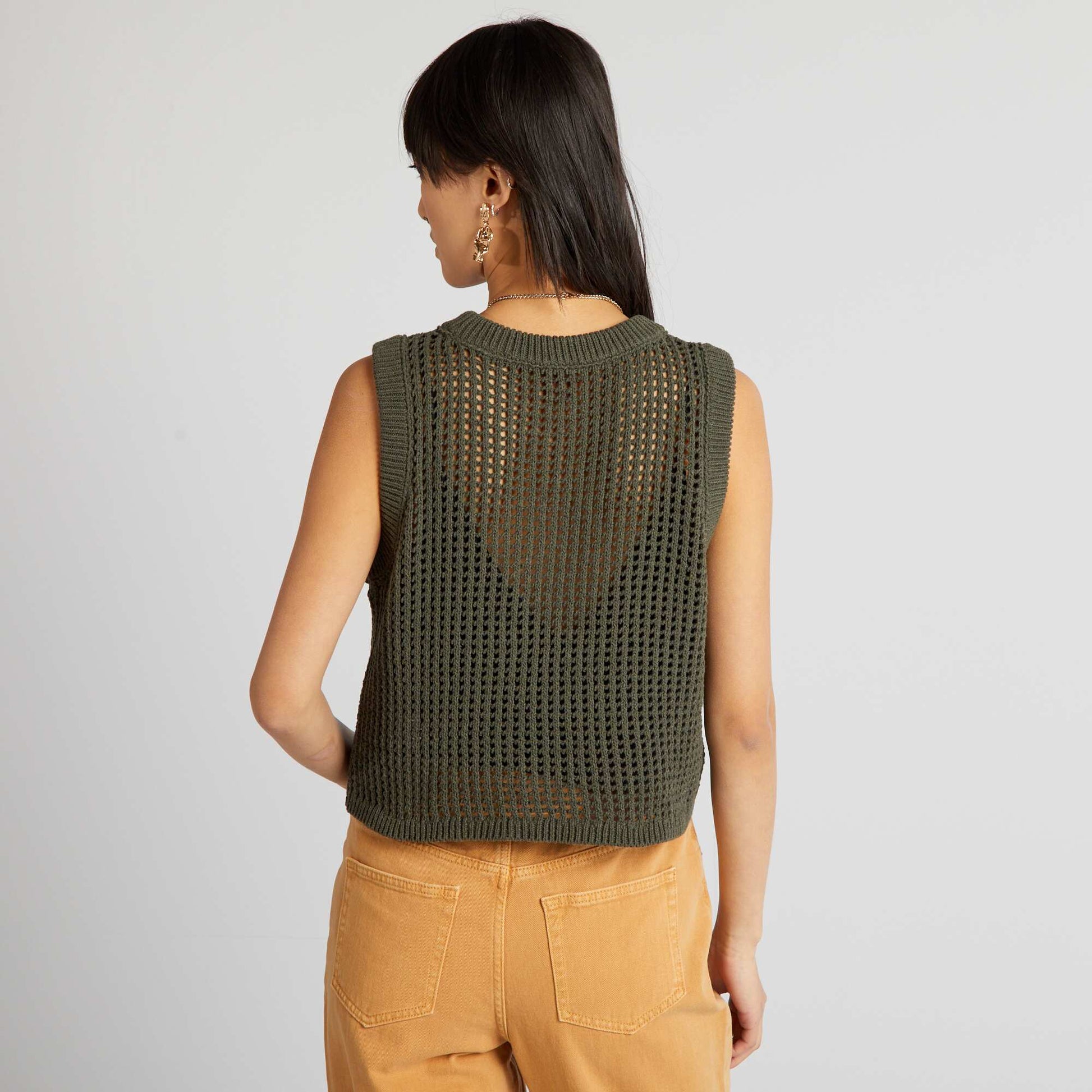 Un pull en maille ajour e pour compl ter votre tenue ! - Pull sans manches - En maille ajour e - Col rond - Sans manches - Finitions bords-c tes - Notre mannequin porte une taille M et mesure 1m75