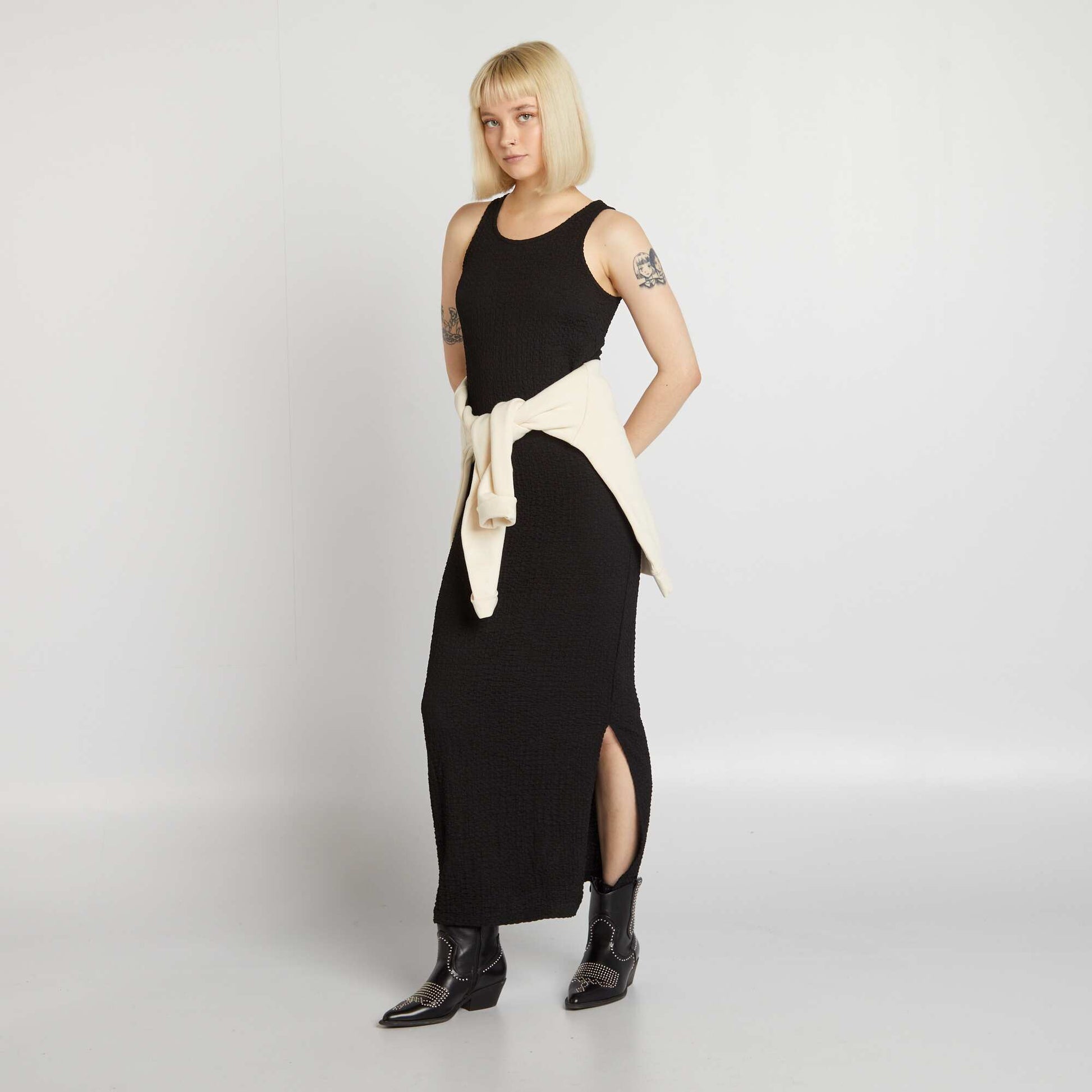 Une robe moulante, stretch, qui sera parfaite pour vous rendre encore + l gante que a n'est d j le cas ! - Robe longue - Maille pliss e - Mati re stretch et coupe moulante - Col rond - Larges bretelles - Couleur unie - Longueur dos : 123 cm environ - Notre mannequin porte une taille S et mesure 1m75