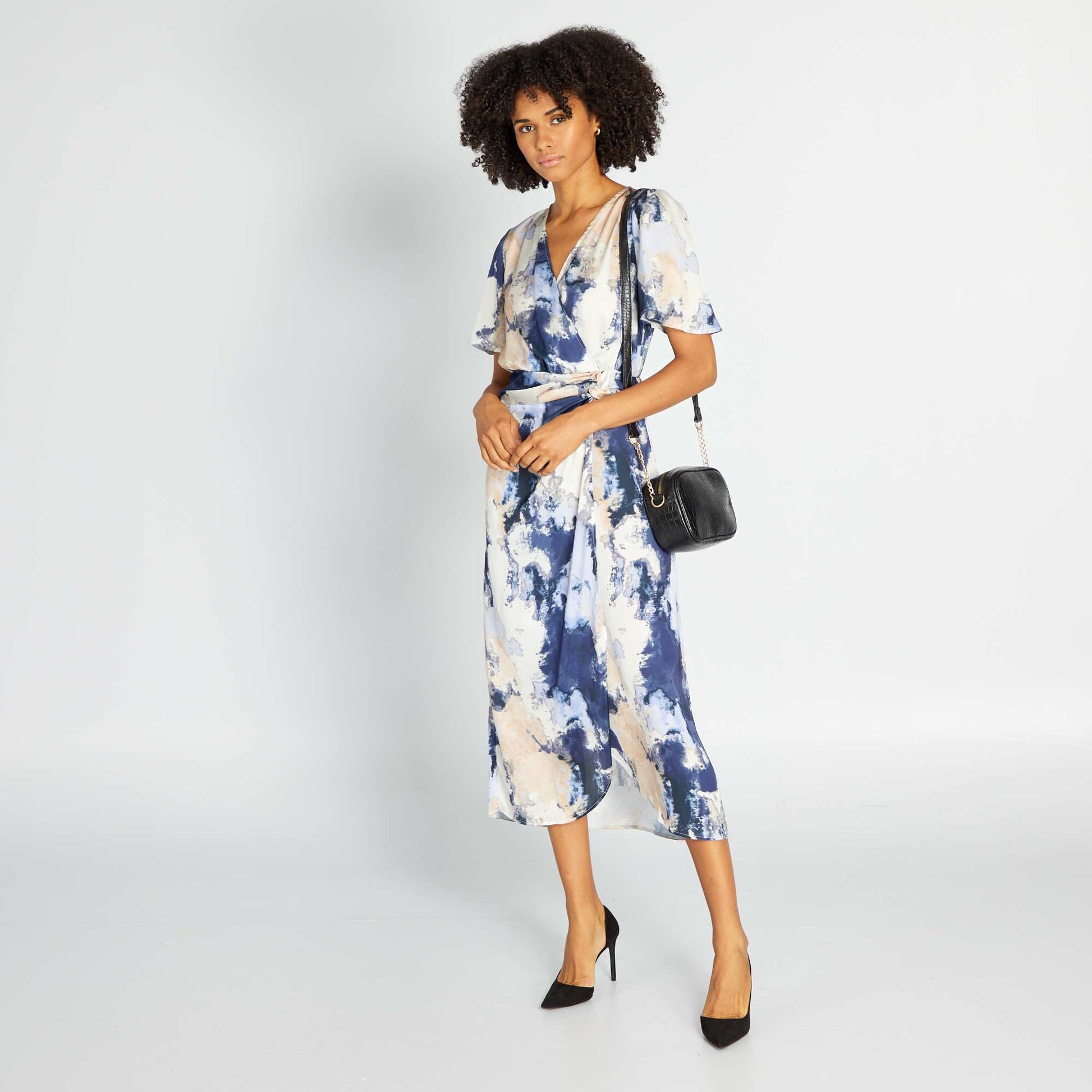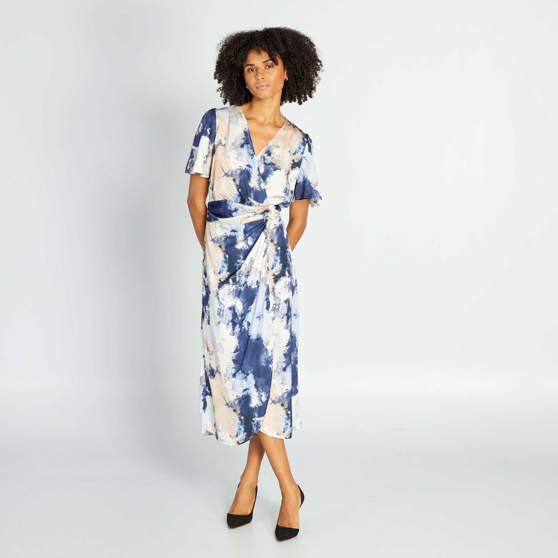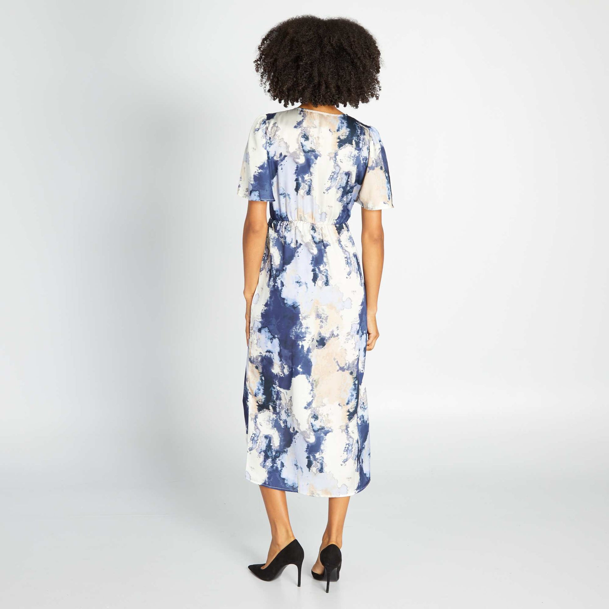 Cette robe est parfaite pour toutes les occasions - Robe midi - Mati re fluide et l g re - Col V - Manches courtes - Taille lastiqu e - Imprim 'tye and dye' all-over - Longueur dos : 127 cm environ - Notre mannequin porte une taille M et mesure 1m75