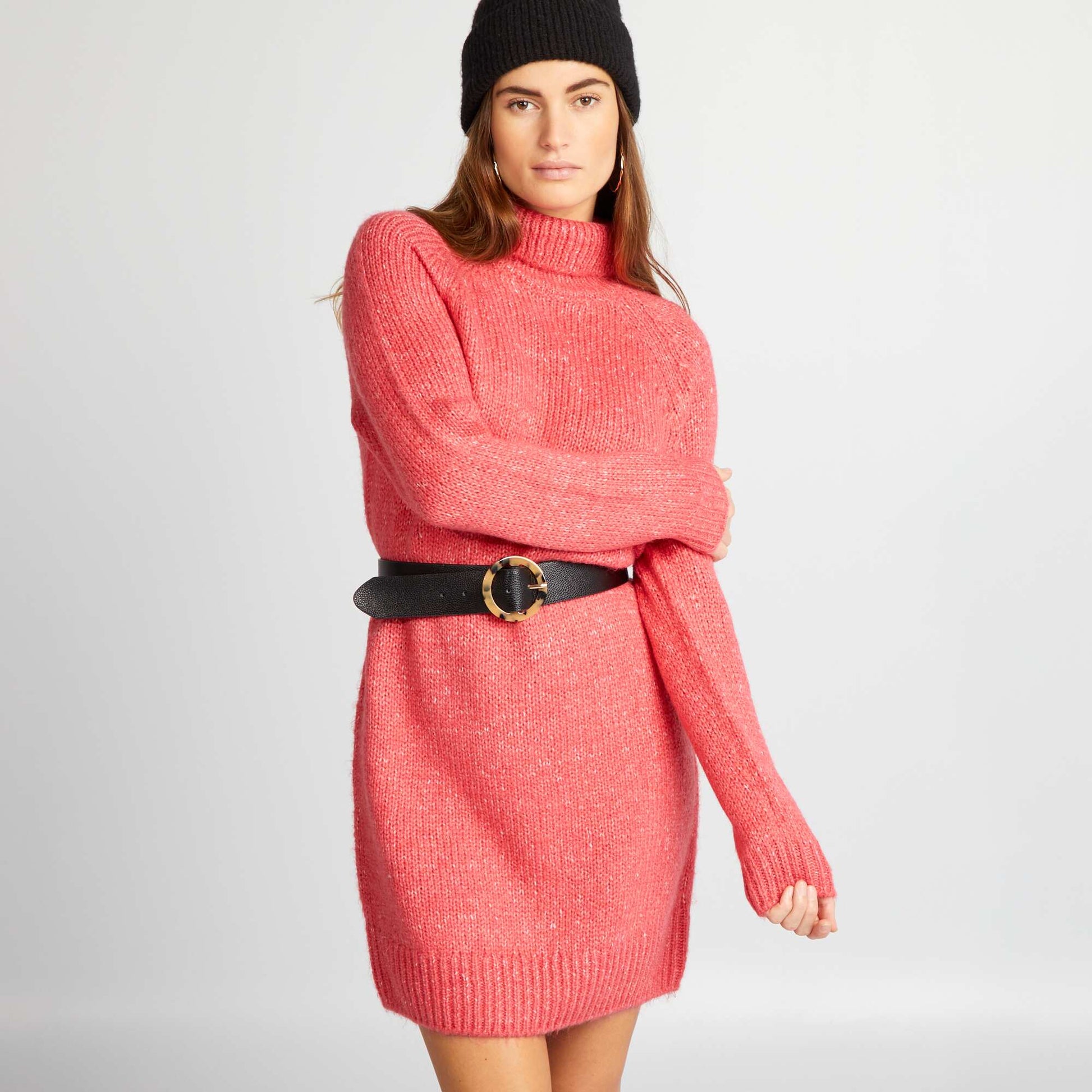 Associez cette robe en maille pour femme avec un accessoire habill afin de twister son style casual. Il sera galement parfait avec une paire de sneakers ! - Robe pull en maille - Contient du polyester recycl - Col montant - Manches longues - Couleur unie - Finitions bords-c tes - Longueur dos : 90 cm environ - Notre mannequin porte une taille M et mesure 1m75