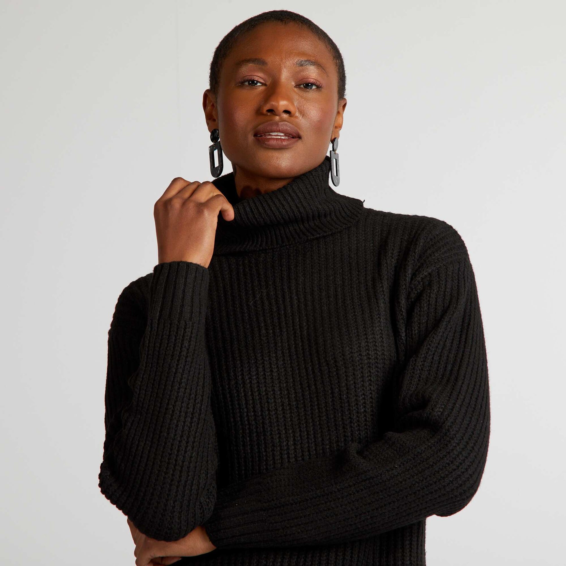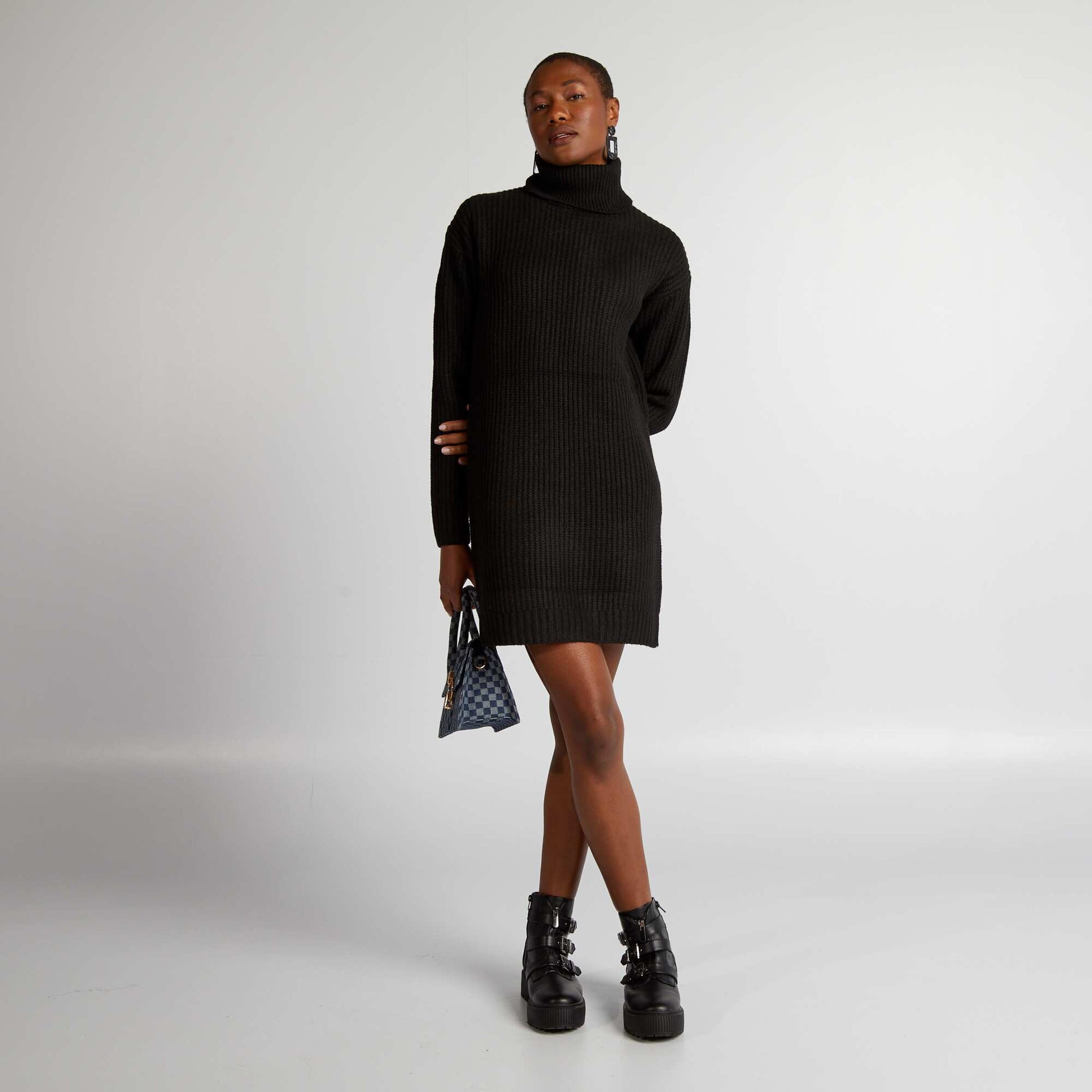 Robe pull en maille paisse noir