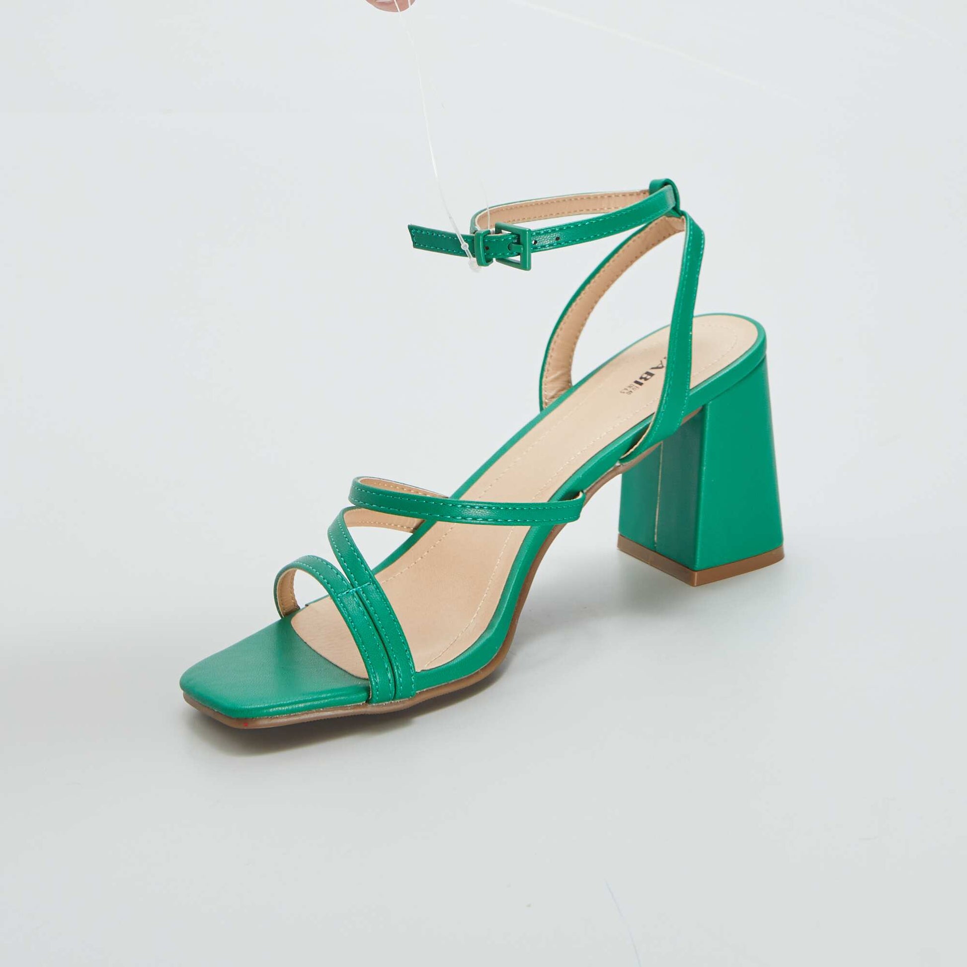 Affirmez votre allure avec ces sandales talon carr , des compagnons de style audacieux pour vos soir es (ou journ es). - Sandales en simili - Brides crois es - Ouverture boucle m tallique la cheville - Bout carr - Talon carr de 8 cm environ - Semelle d'usure antid rapante