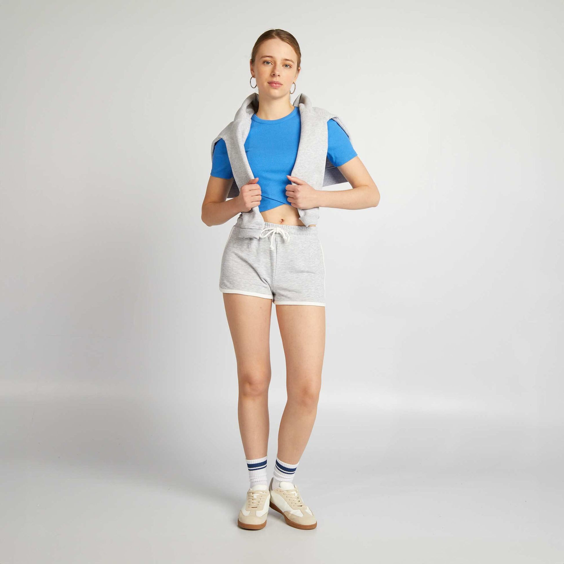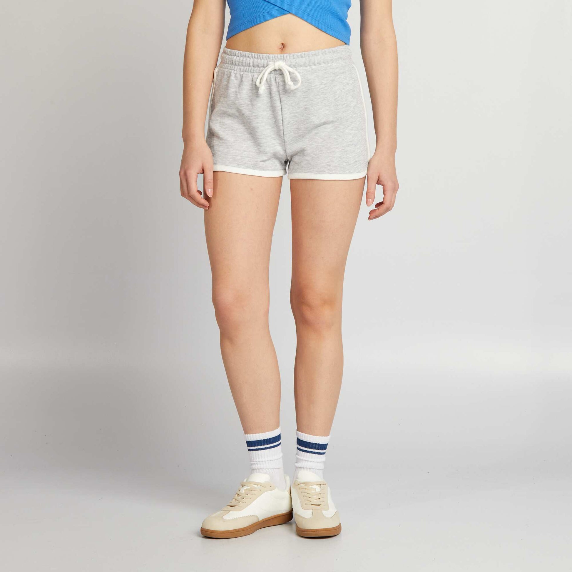 Pr te pour l'action ? Notre short sportswear est l pour te donner la libert de bouger et de performer avec style ! - Short court - Esprit sportswear - Taille smock e - Liens nouer la taille - Bords contrast s - Bords arrondis sur les c t s - Longueur entrejambe : 4 cm environ - Largeur bas de jambe : 32 cm environ - Notre mannequin porte une taille S et mesure 1m75