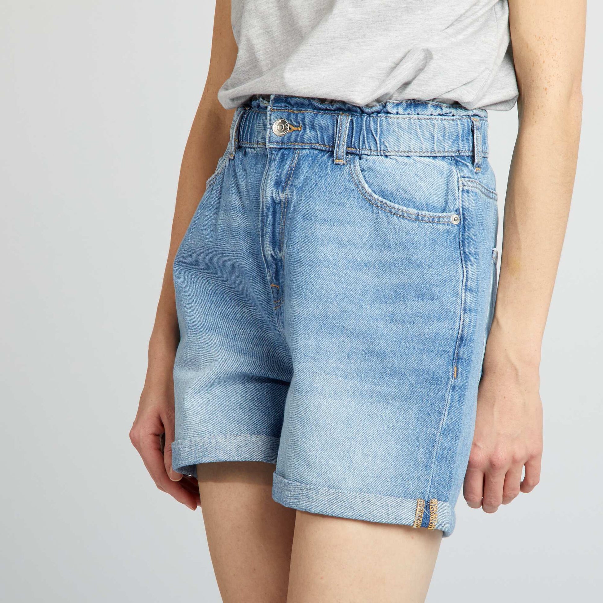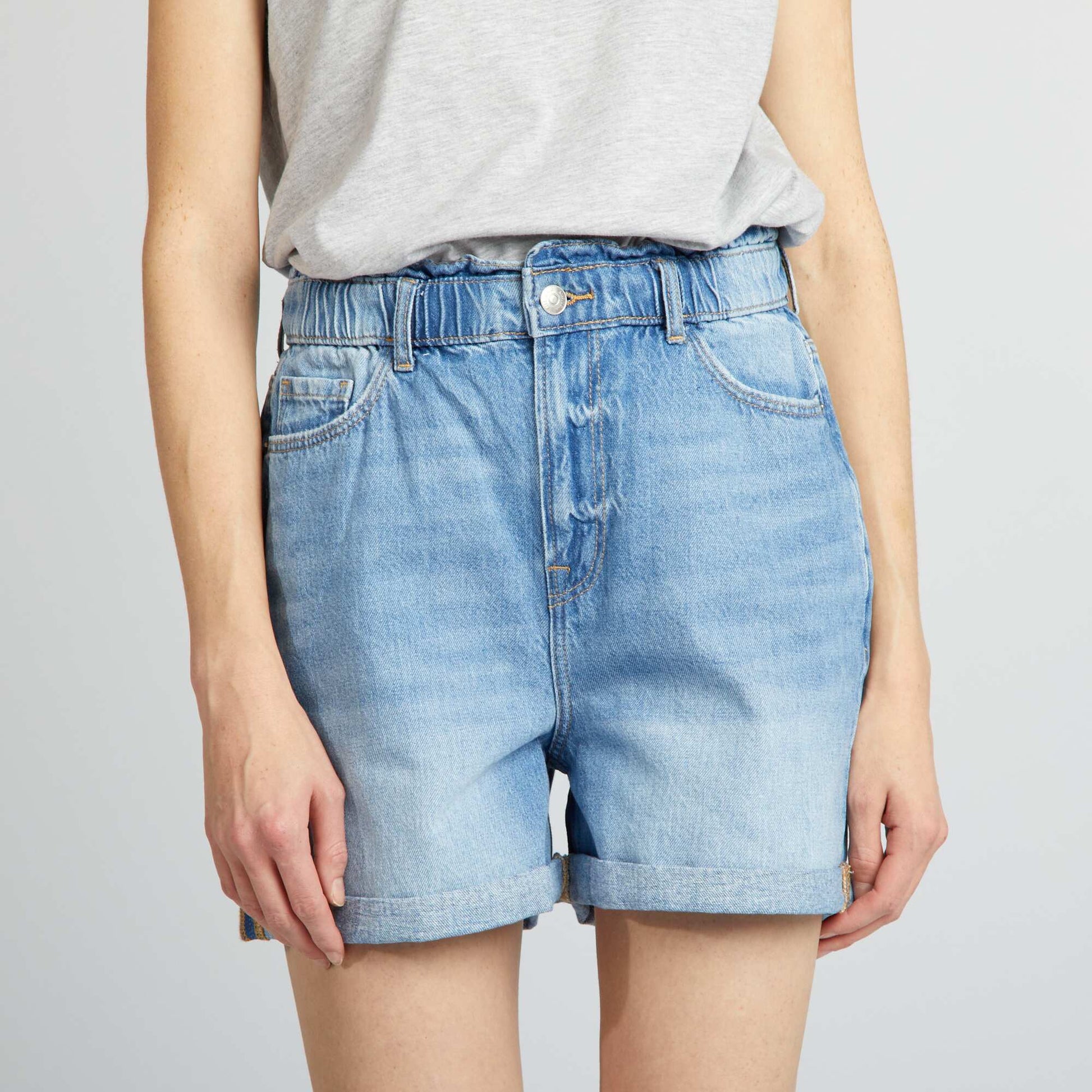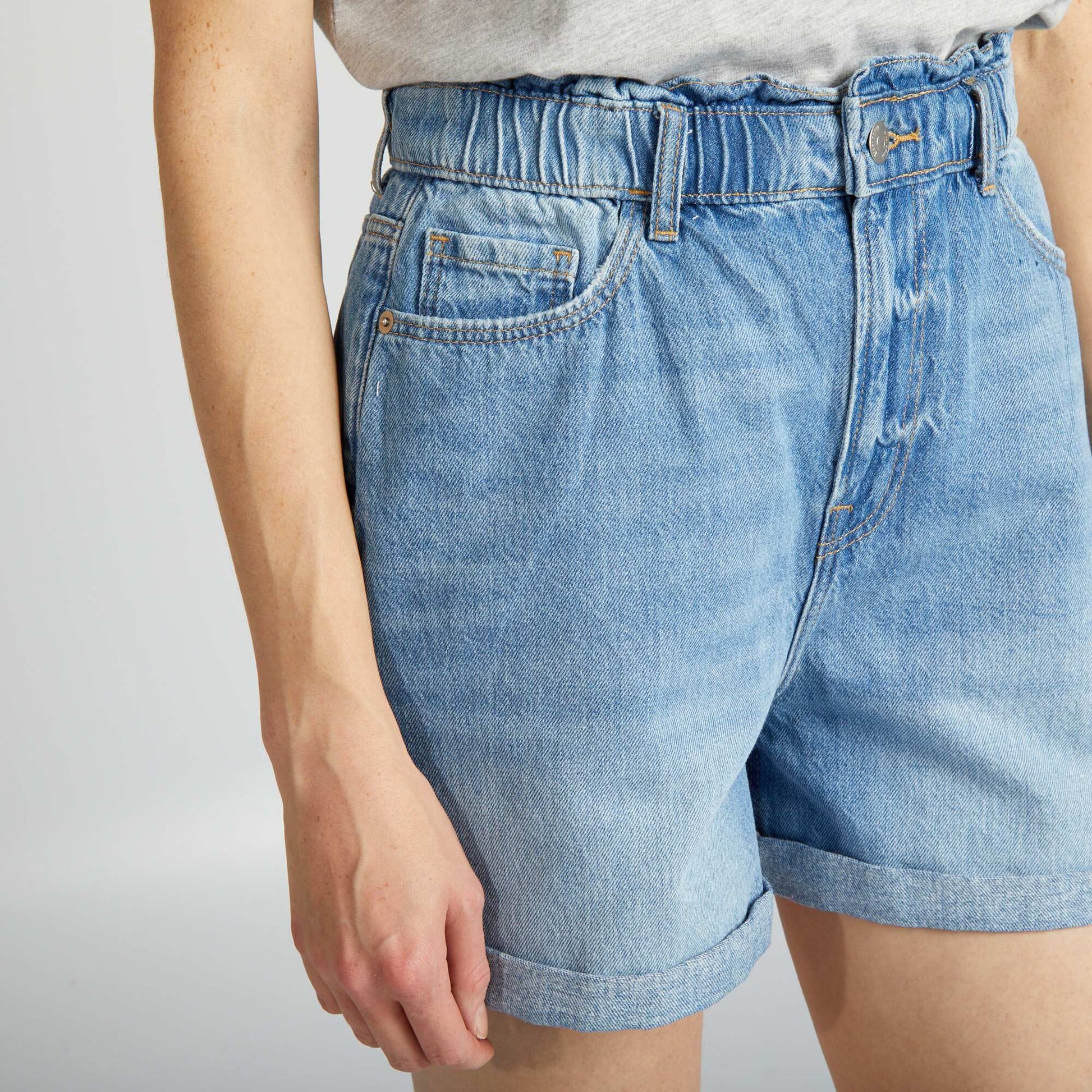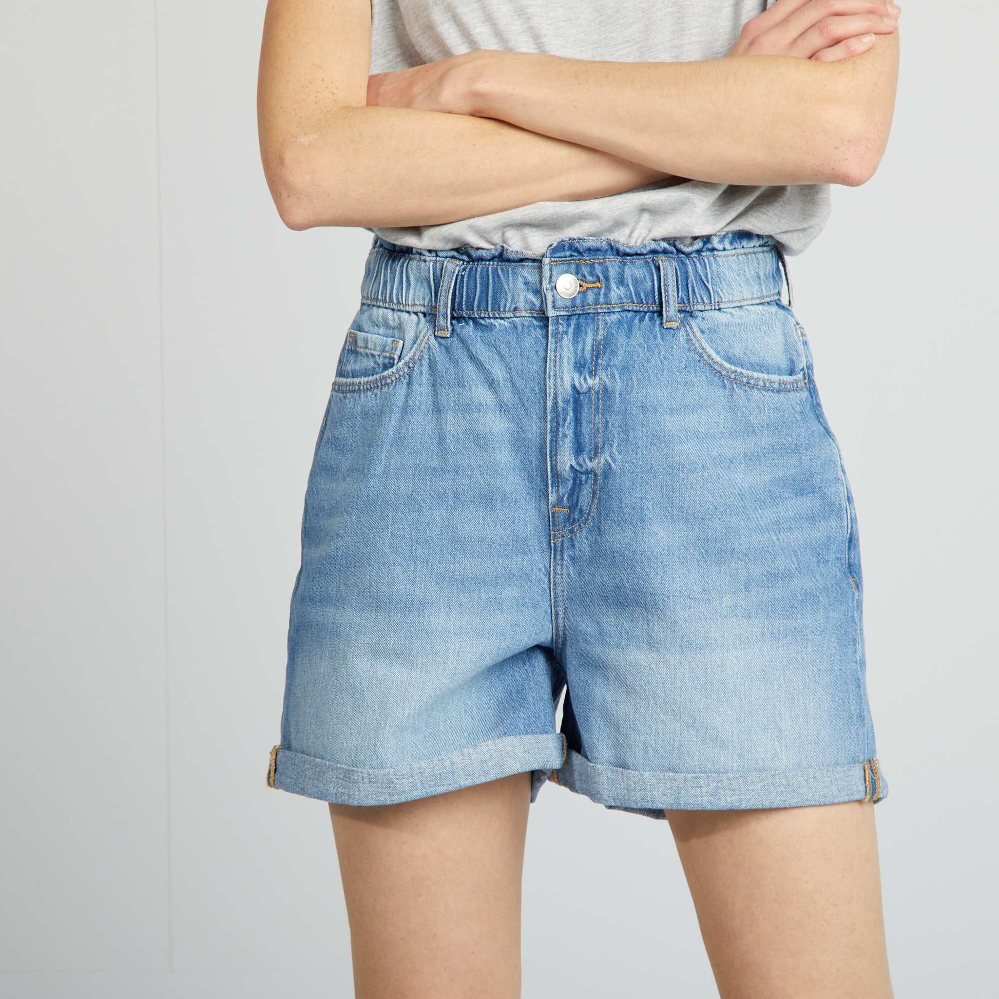 Un short classique ind modable qui va avec tout ! - Short en jean - Taille lastiqu e - Ouverture zipp e et boutonn e - Passants pour ceinture - Revers la base - 5 poches - Longueur entrejambe : 9 cm - Largeur bas de jambe : 31 cm - Notre mannequin porte une taille S et mesure 1m76