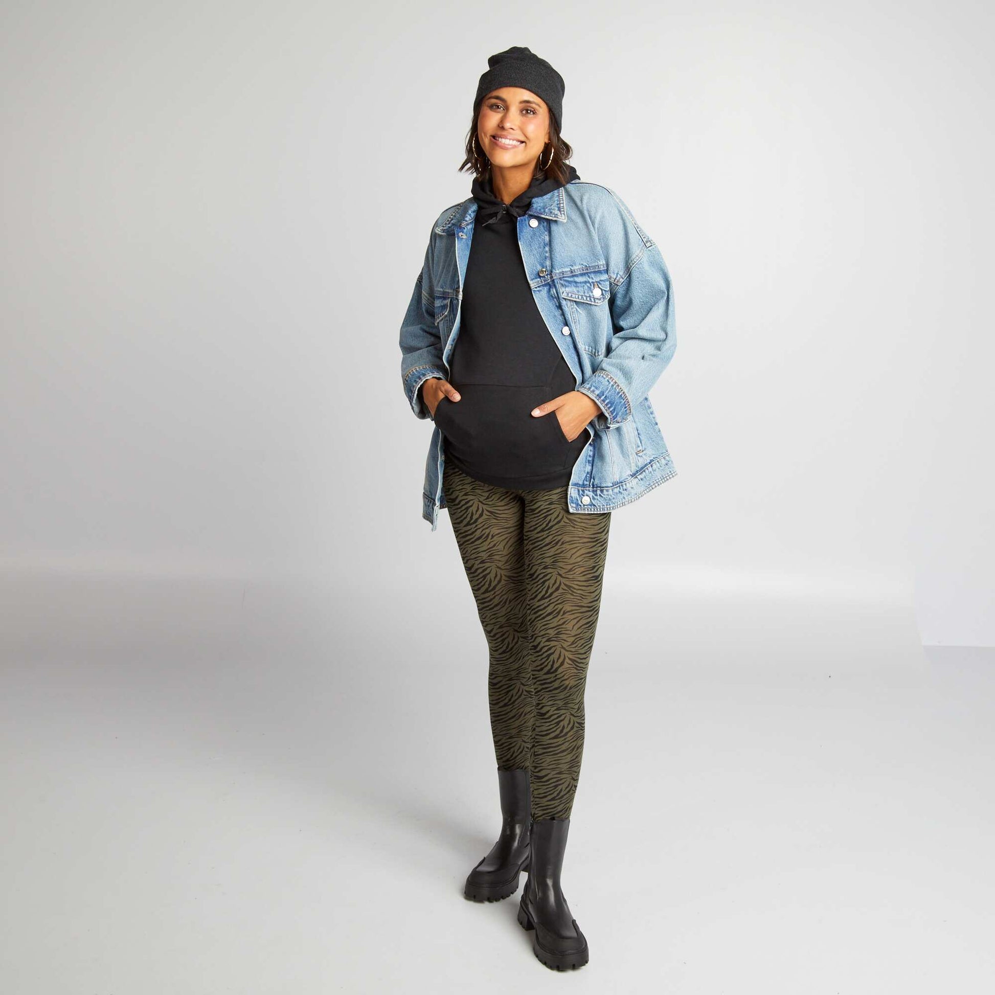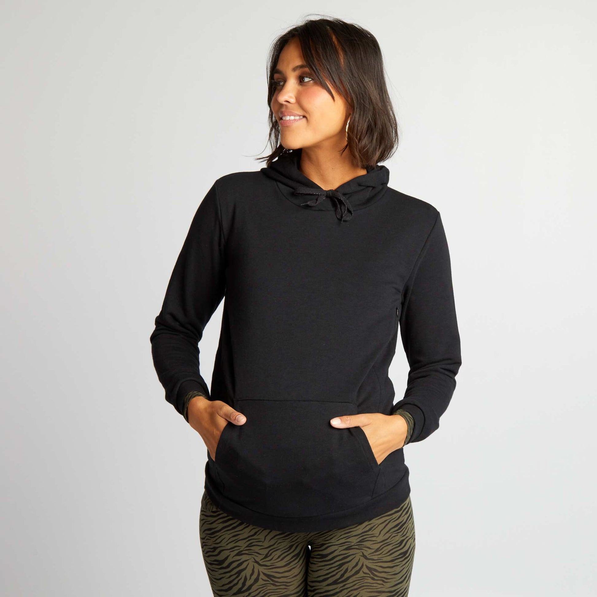 Un sweat uni au look streetwear pour garder un max de style et de confort durant la grossesse ! - Sweat grossesse et allaitement - Molleton l ger - Col capuche - Manches longues - Ouvertures zipp es devant pour faciliter l'allaitement - Imprim devant - Longueur dos : 68 cm environ - Notre mannequin porte une taille S et mesure 1m75