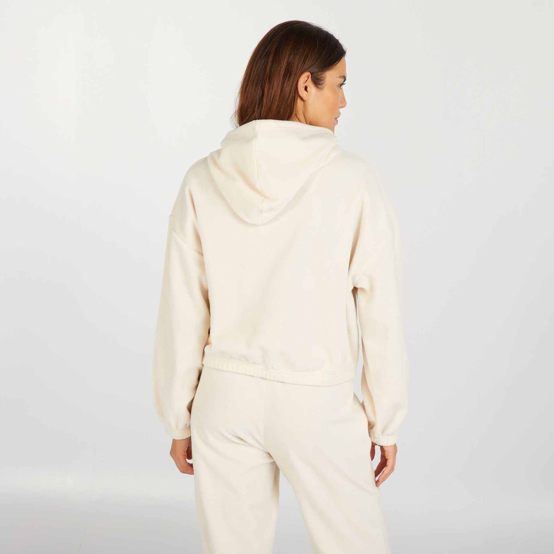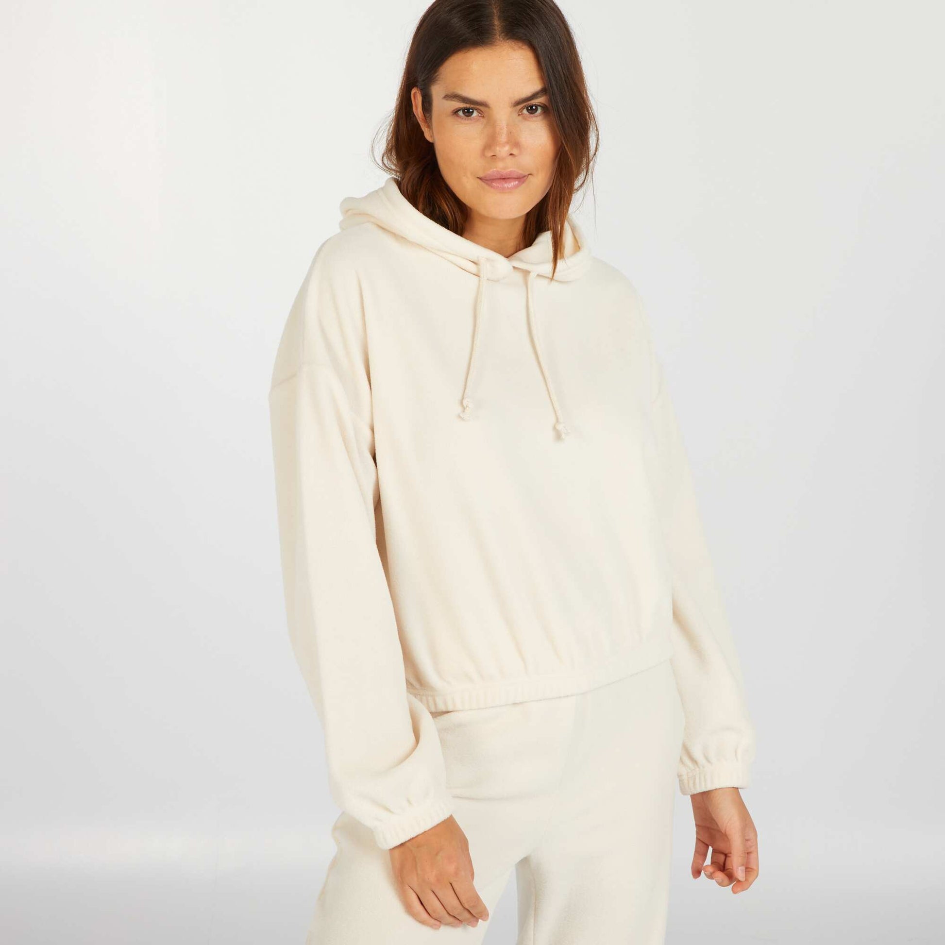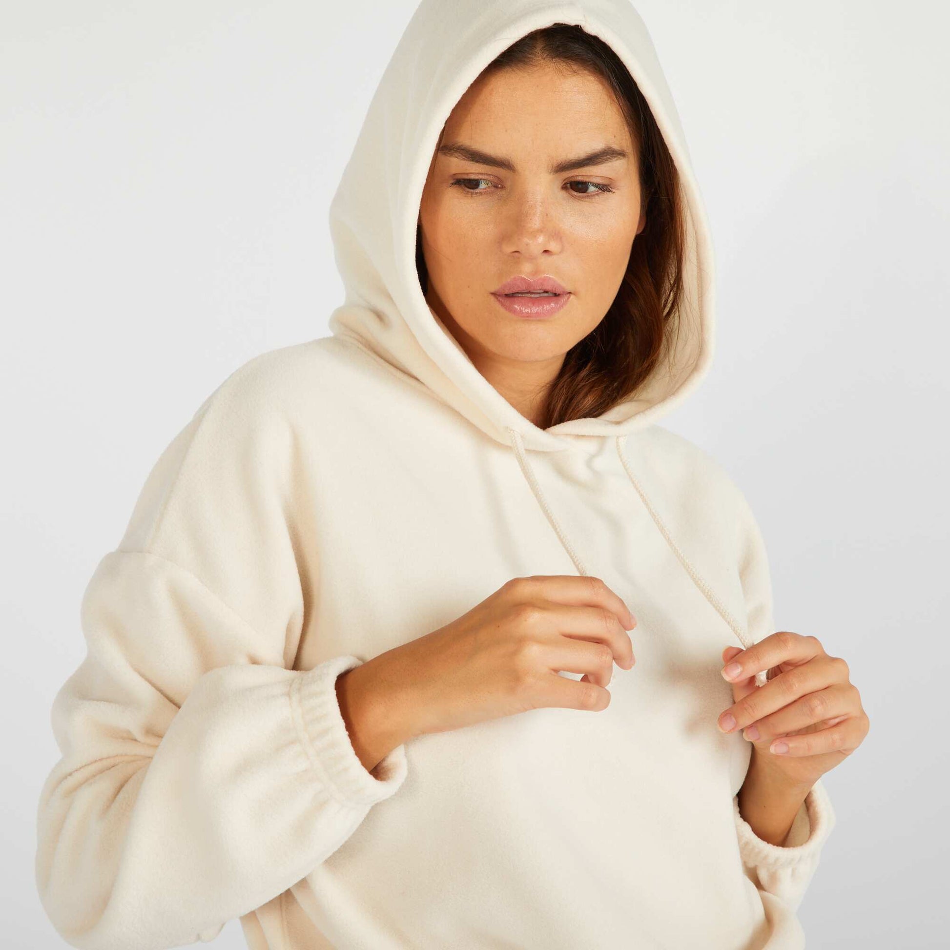 Un sweat en polaire pour ne jamais prendre froid ! - Sweat en polaire - Coupe courte - Col capuche + cordons de serrage - Manches longues poignets lastiqu s - Base lastiqu e - Longueur dos : 55 cm environ - Notre mannequin porte une taille M et mesure 1m75