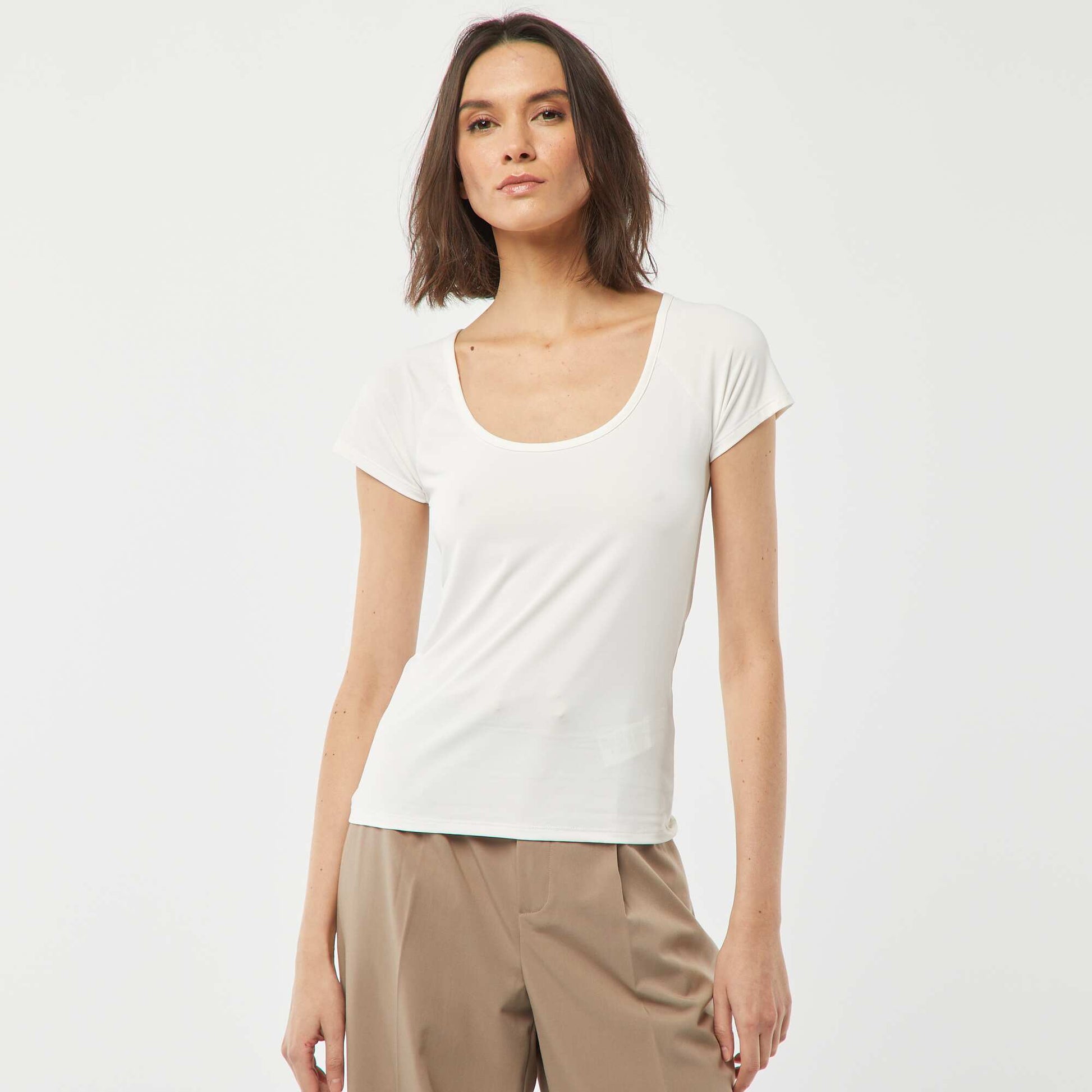 Vous allez adorer la douceur et la simplicité de ce t-shirt. - T-shirt à col rond dégagé - Manches courtes - Couleur unie - Longueur du dos : 56 cm - Notre mannequin porte une taille S et mesure 1m75