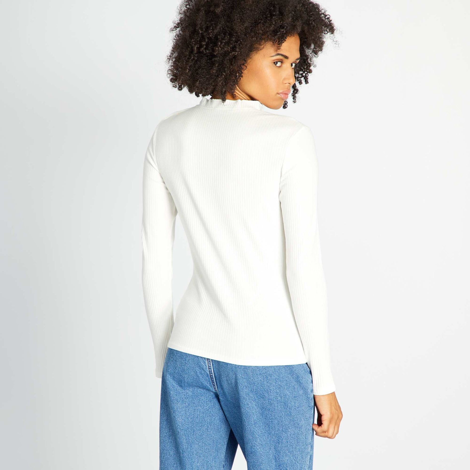 Ne manquez pas ce t-shirt pour femme manches longues ! - T-shirt en maille c tel e - Col montant - Manches longues - Ouverture par boutons l'emmanchure - Couleur unie - Longueur dos : 57 cm environ - Notre mannequin porte une taille M et mesure 1m75
