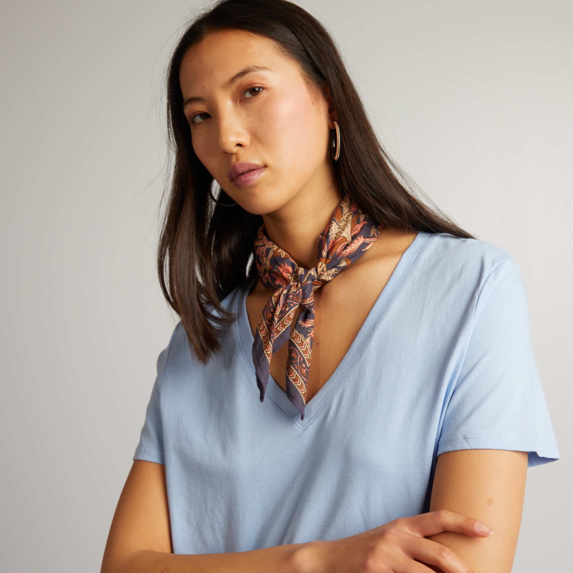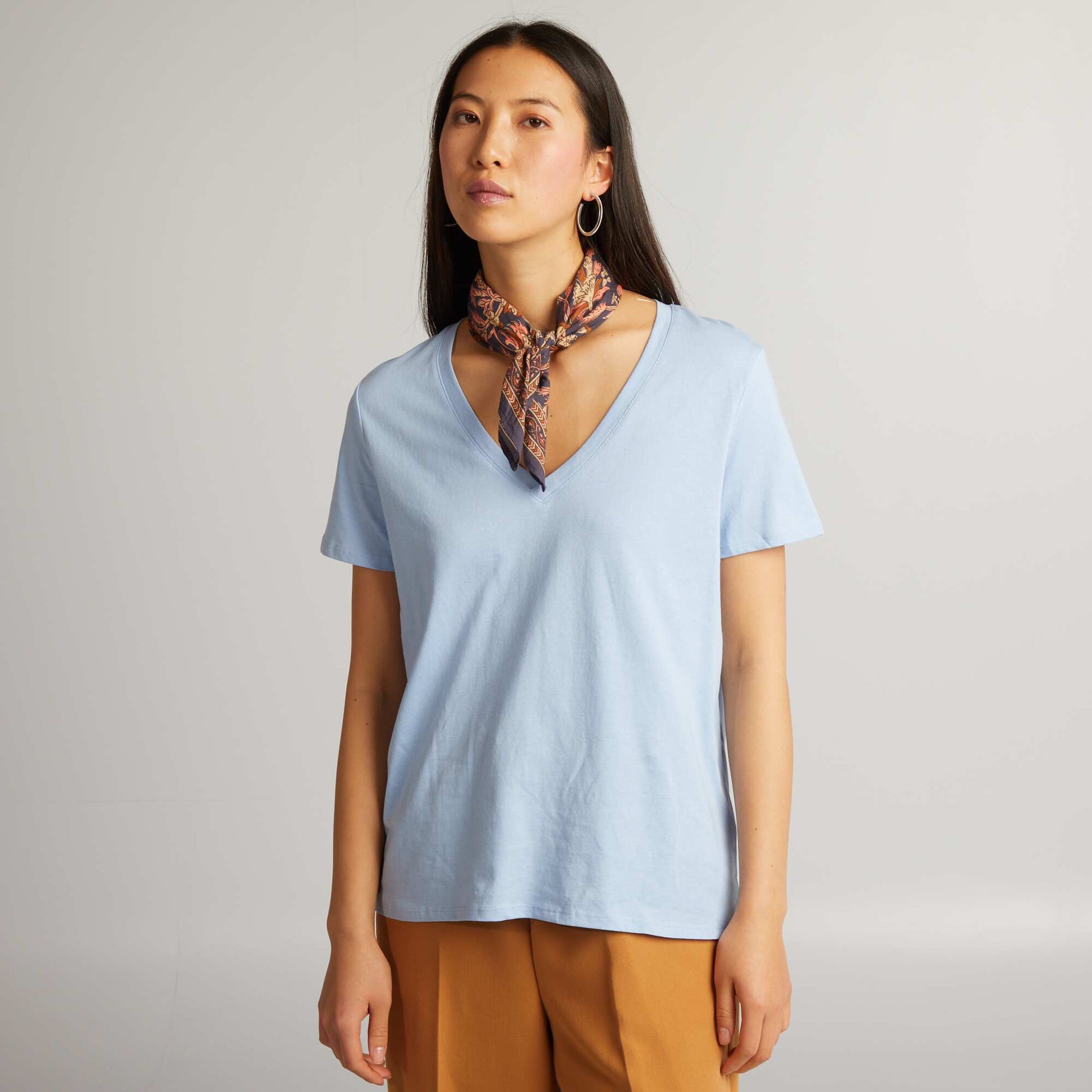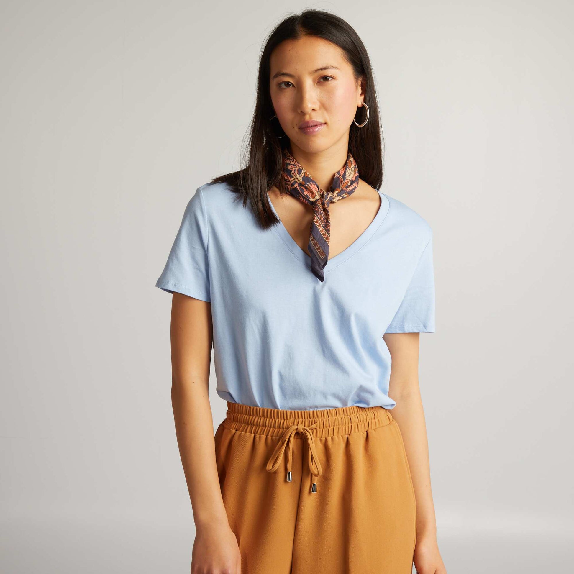 Parfois, la simplicit fait tout son effet ! - T-shirt basique - En coton - Col V - Manches courtes - Longueur du dos : 58 cm - Notre mannequin porte une taille M et mesure 1m75.