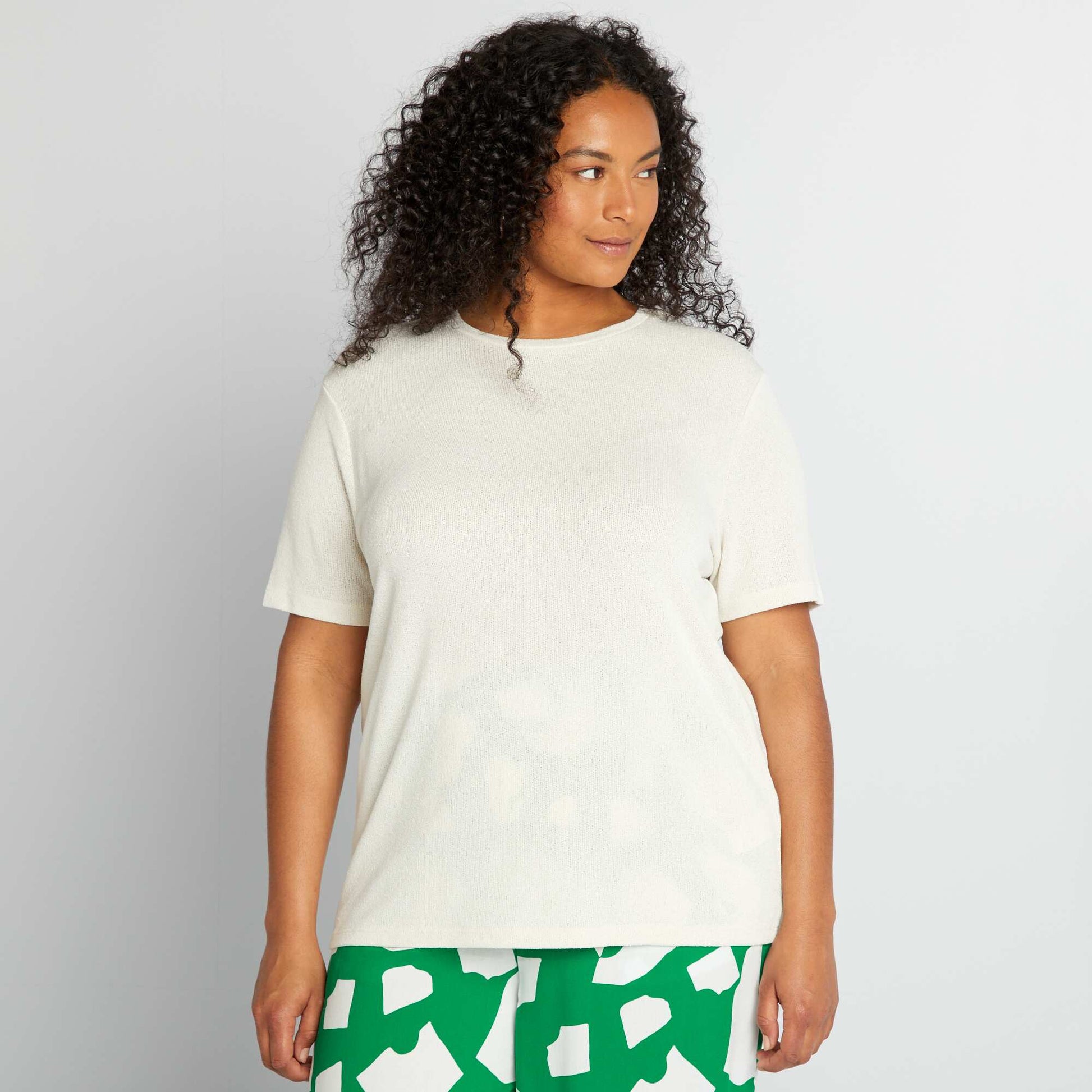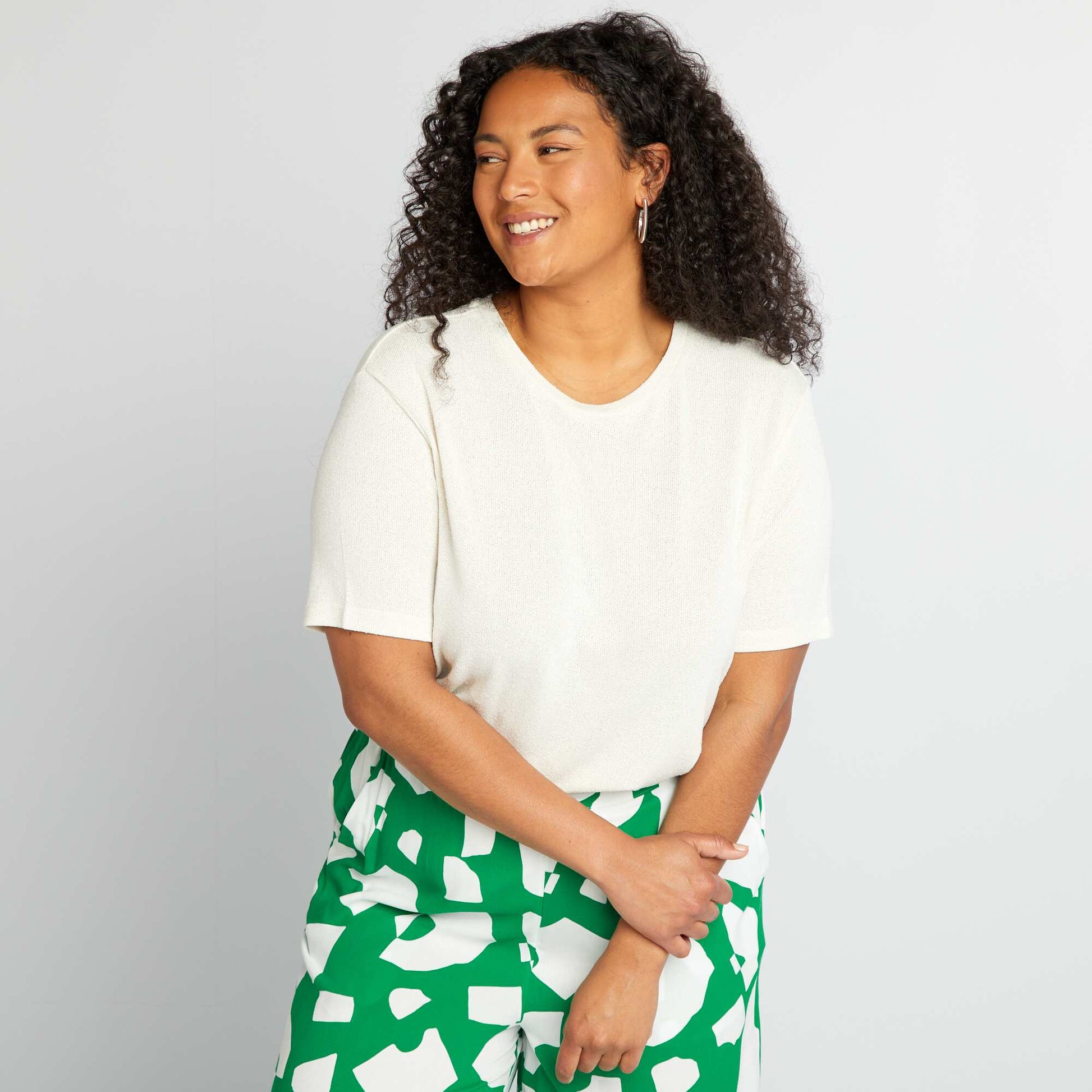 C'est le style de t-shirt qu'on aime rentrer l g rement dans un pantalon. - T-shirt classique fluide - Coupe ample - Col rond - Manches courtes - Couleur unie - Longueur du dos : 69 cm - Notre mannequin porte une taille XL et mesure 1m80