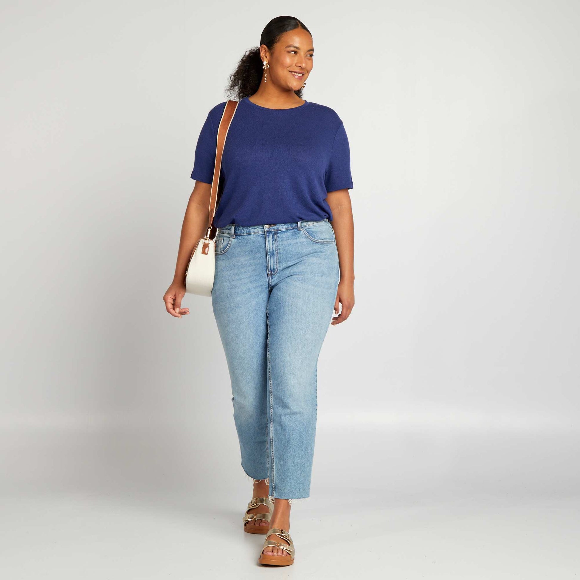 C'est le style de t-shirt qu'on aime rentrer légèrement dans un pantalon. - T-shirt classique fluide - Coupe ample - Col rond - Manches courtes - Couleur unie - Longueur du dos : 69 cm - Notre mannequin porte une taille XL et mesure 1m80