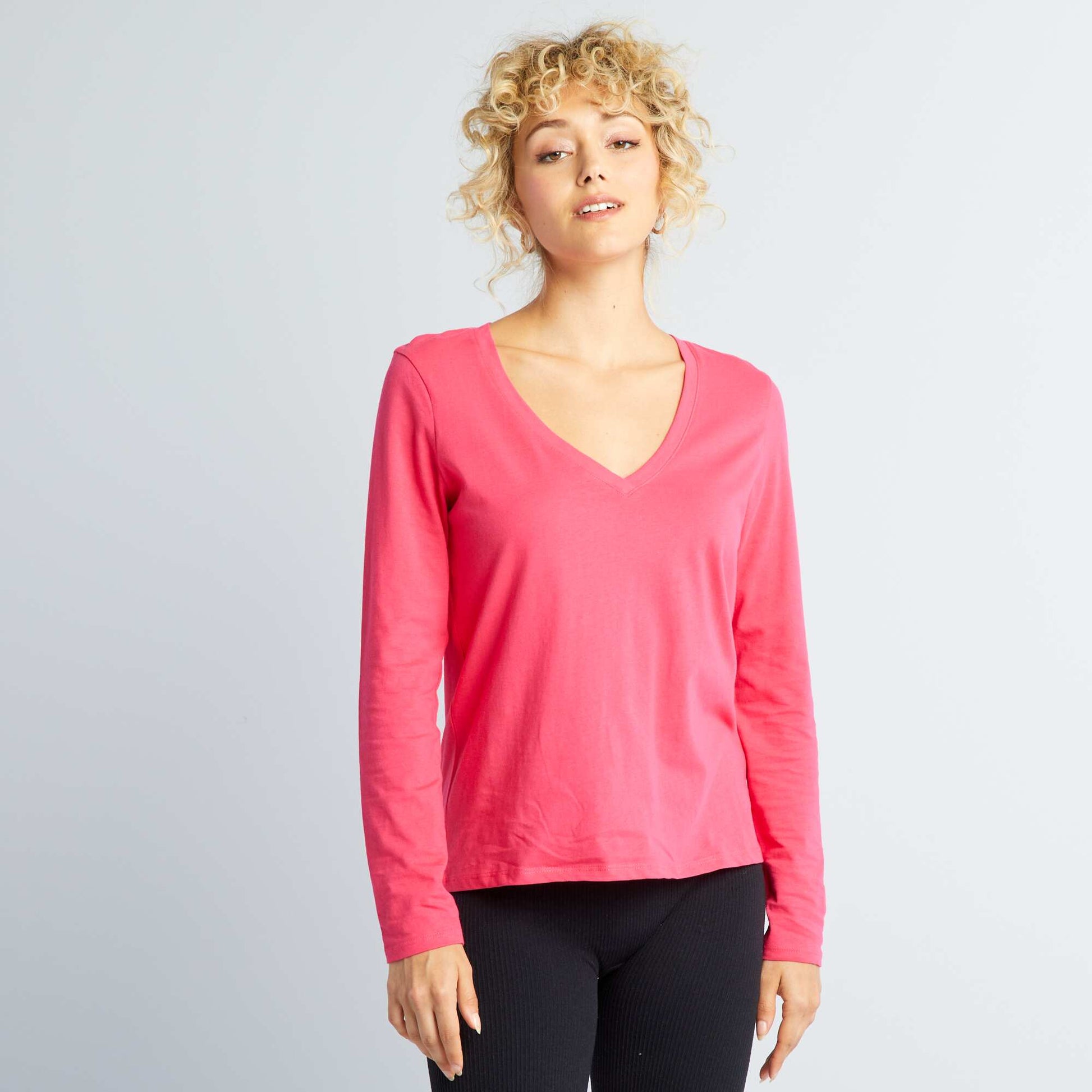 Un basique tr s confortable ! - Tee-shirt co-con u - 100% coton issu de l'agriculture biologique - Col V - Manches longues - Uni - Longueur dos : 60 cm environ - Notre mannequin porte une taille M et mesure 1m70