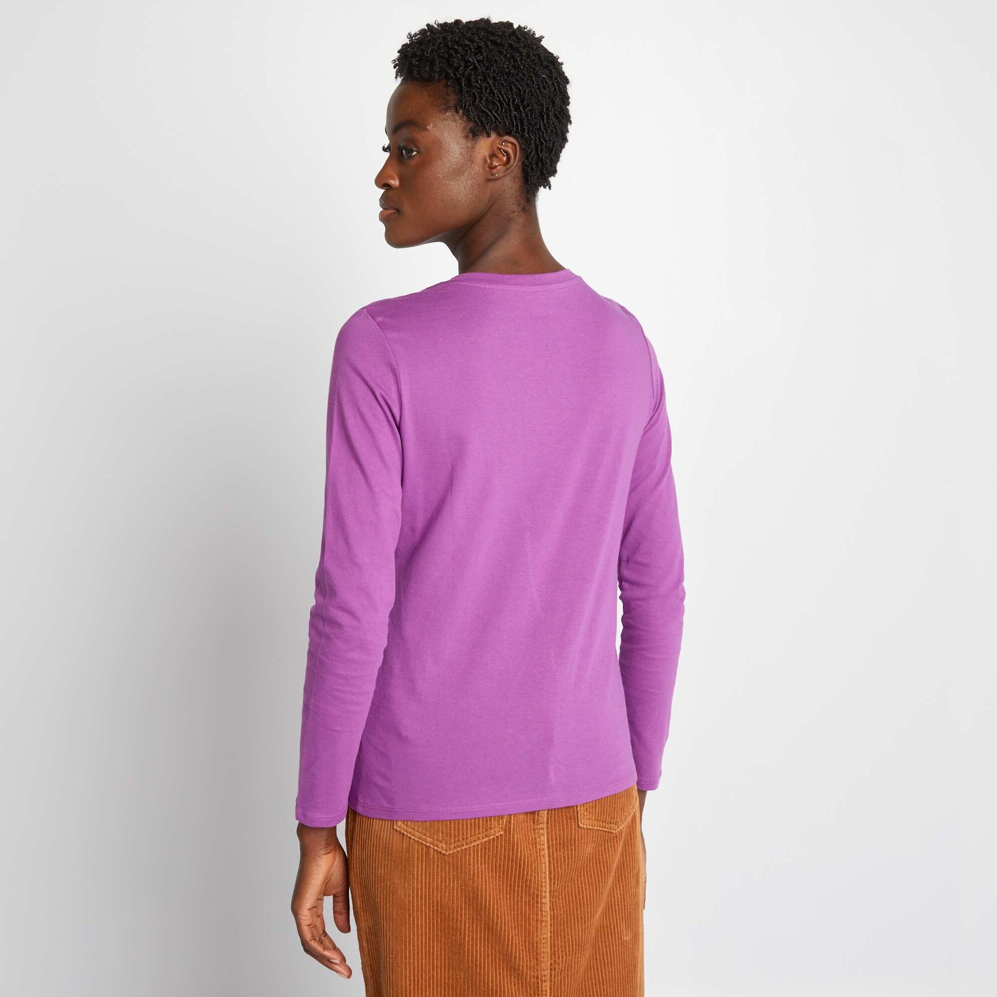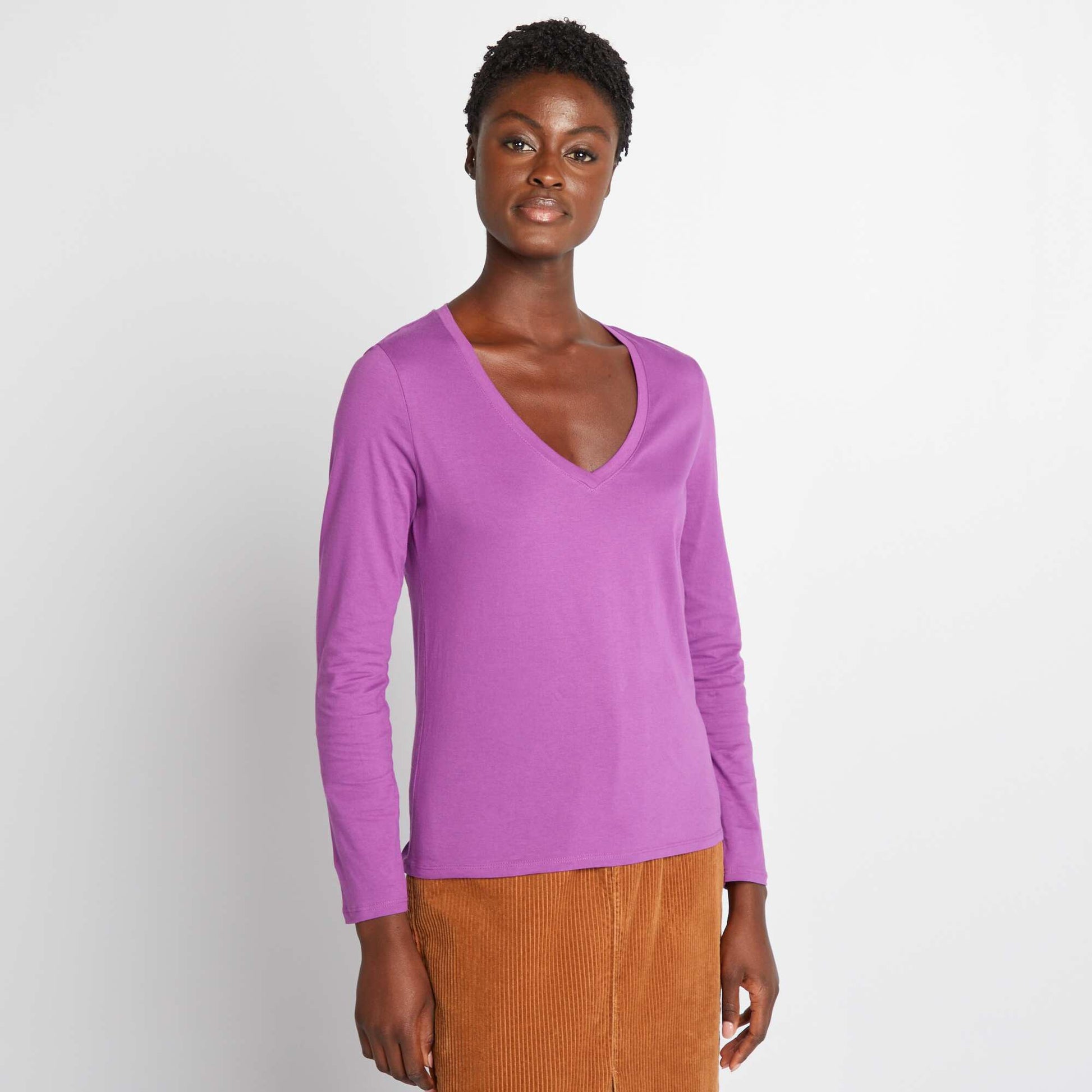 Un basique tr s confortable ! - Tee-shirt - Col V - Manches longues - Uni - Longueur dos : 60 cm environ - Notre mannequin porte une taille M et mesure 1m74.