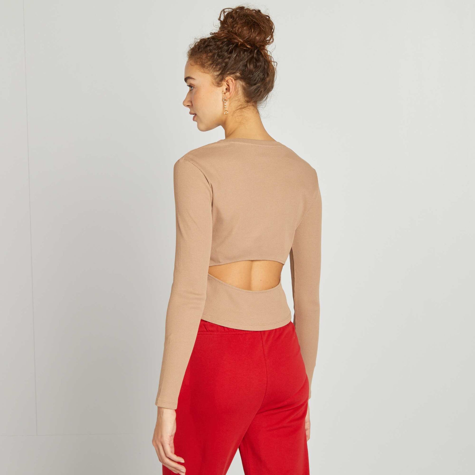 Pour un look élégant au quotidien ! - T-shirt côtelé manches longues - En coton - Col rond - Dos ouvert - Longueur du dos : 48 cm - Notre mannequin porte une taille S et mesure 1m75