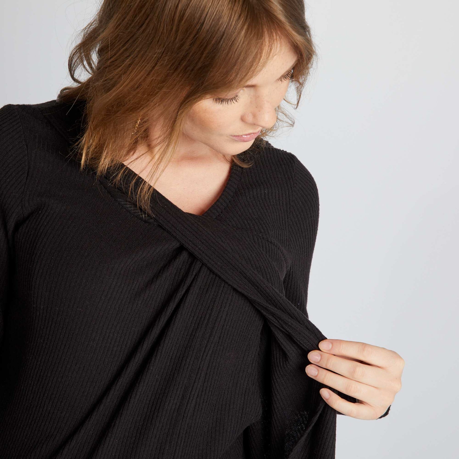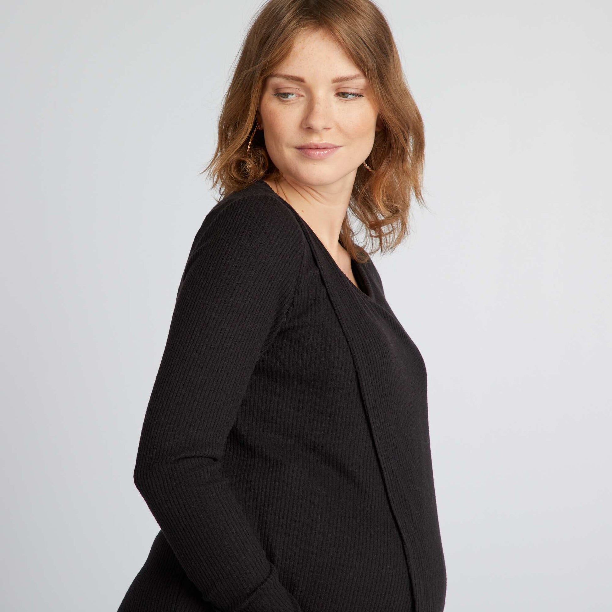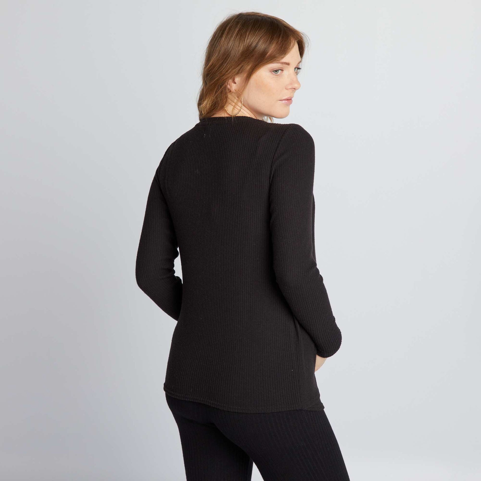 Un t-shirt d'allaitement agr able porter qui facilite l'allaitement ! - T-shirt de grossesse et d'allaitement - En mati re stretch c tel - Encolure ronde - Manches longues - Plastron pour faciliter l'allaitement - Base vas e - Couleur unie - Longueur dos : 60 cm environ - Notre mannequin porte une taille S et mesure 1m75