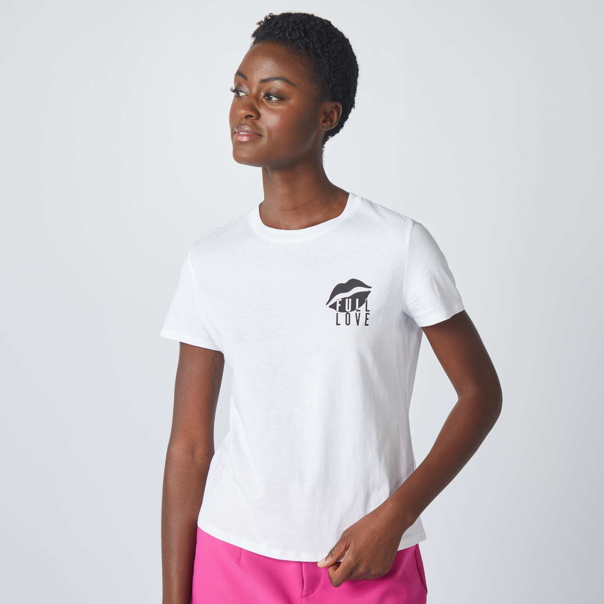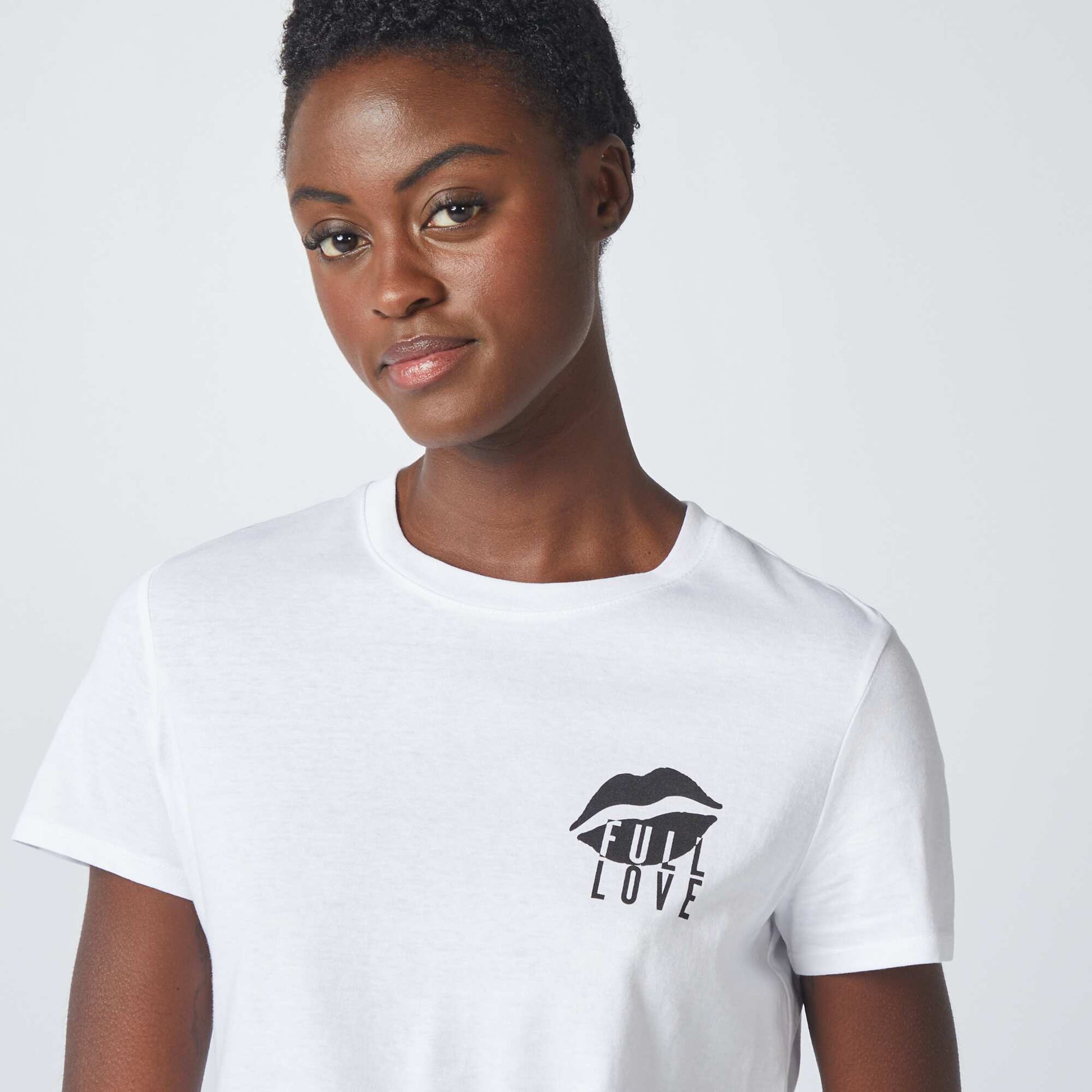 Le choix des couleurs et imprim s petits prix ! - Tee-shirt maille jersey - 100% coton issu de l agriculture biologique - Manches courtes - Col rond - Impression visage femme fleuri devant - Longueur dos : 64 cm environ - Notre mannequin porte une taille M et mesure 1m70