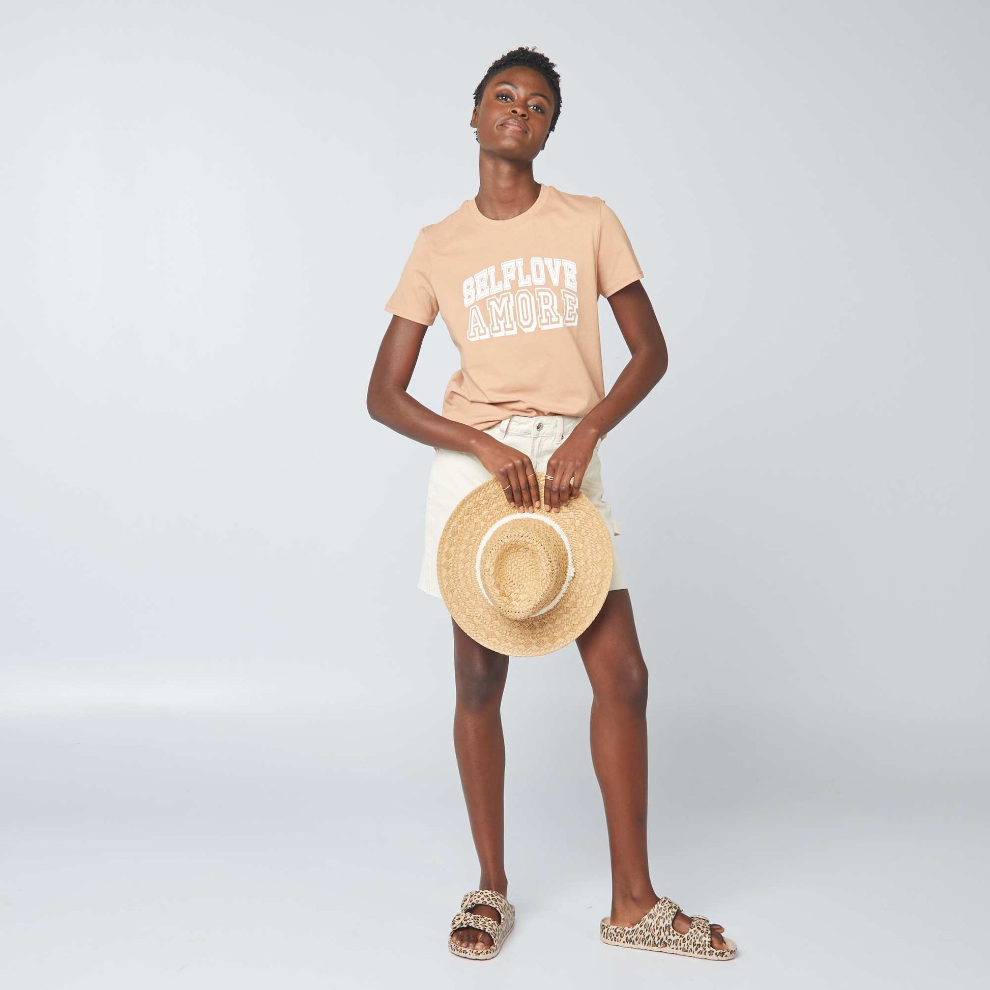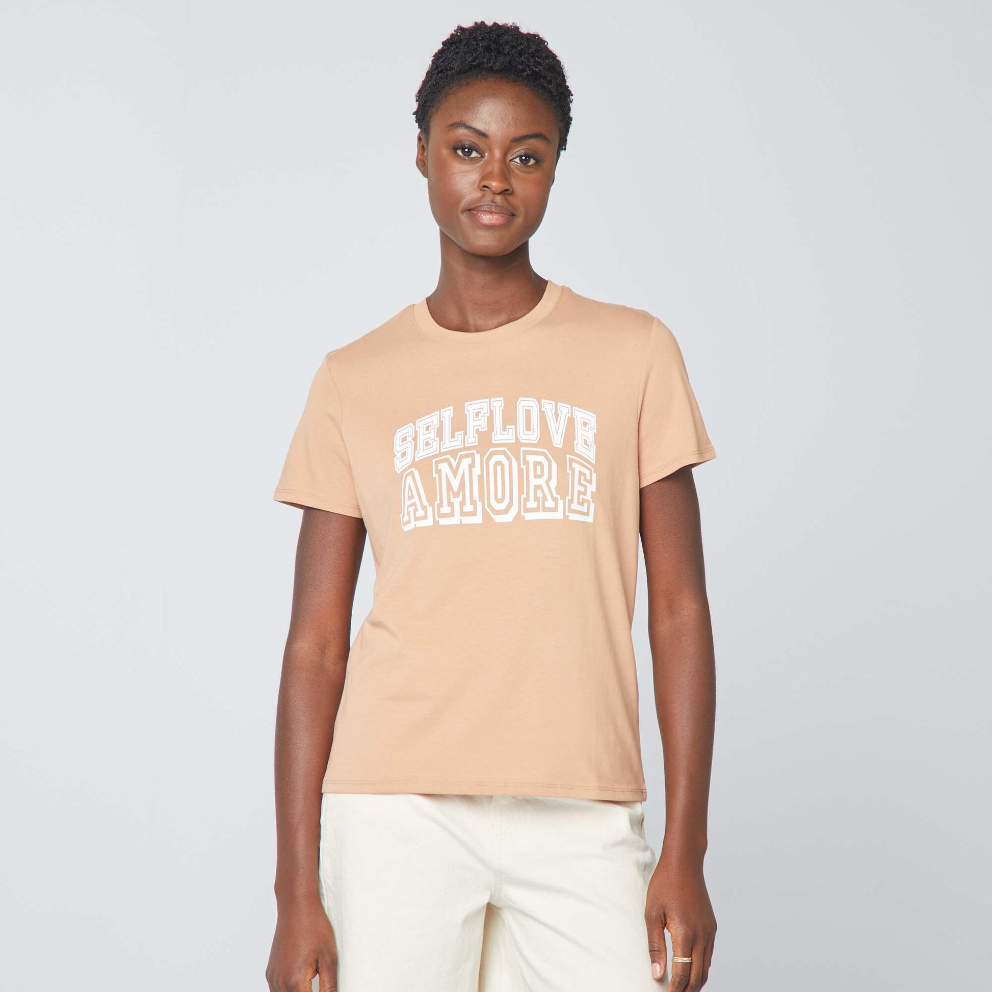 Le choix des couleurs et imprim s petits prix ! - Tee-shirt maille jersey - 100% coton issu de l agriculture biologique - Manches courtes - Col rond - Impression visage femme fleuri devant - Longueur dos : 64 cm environ - Notre mannequin porte une taille M et mesure 1m70