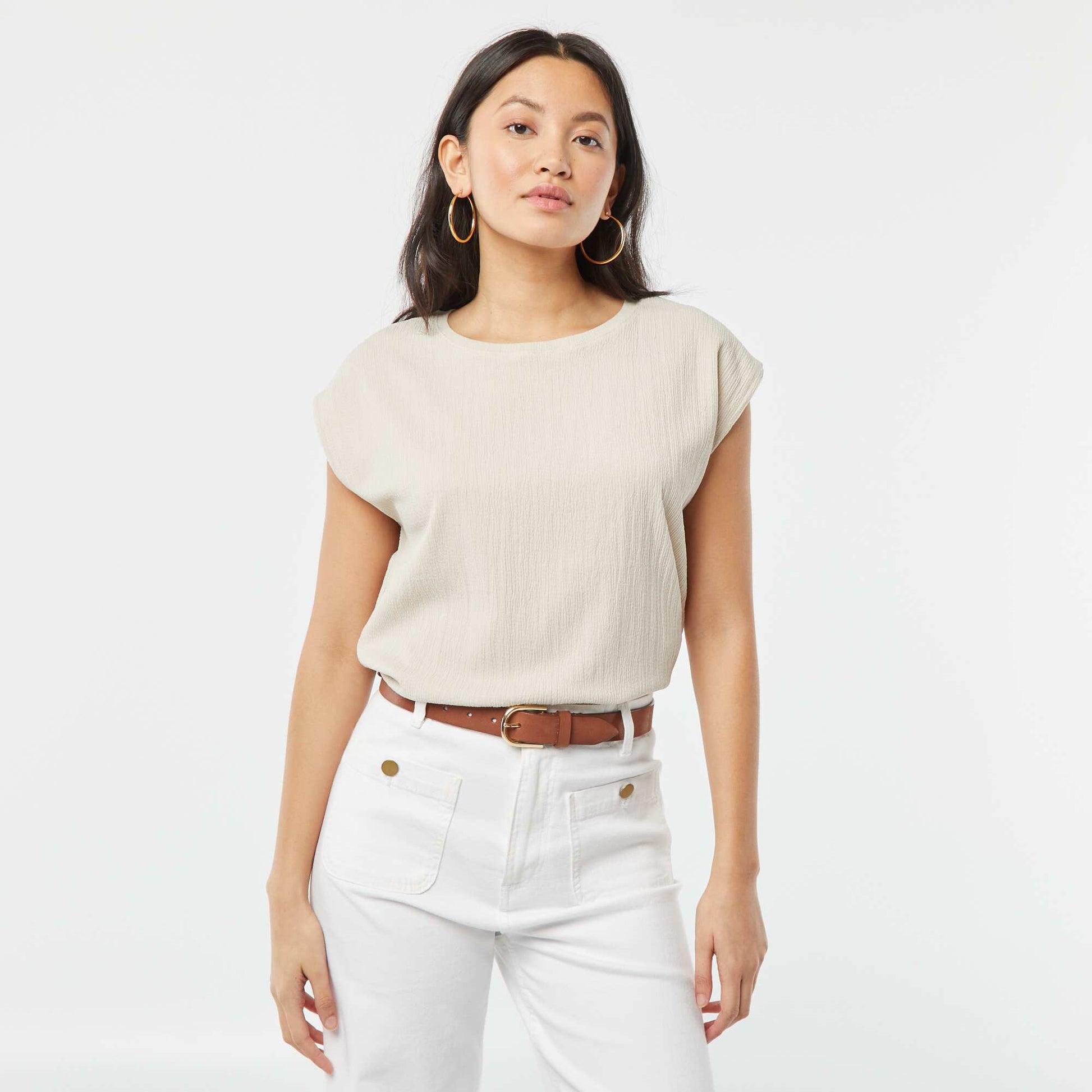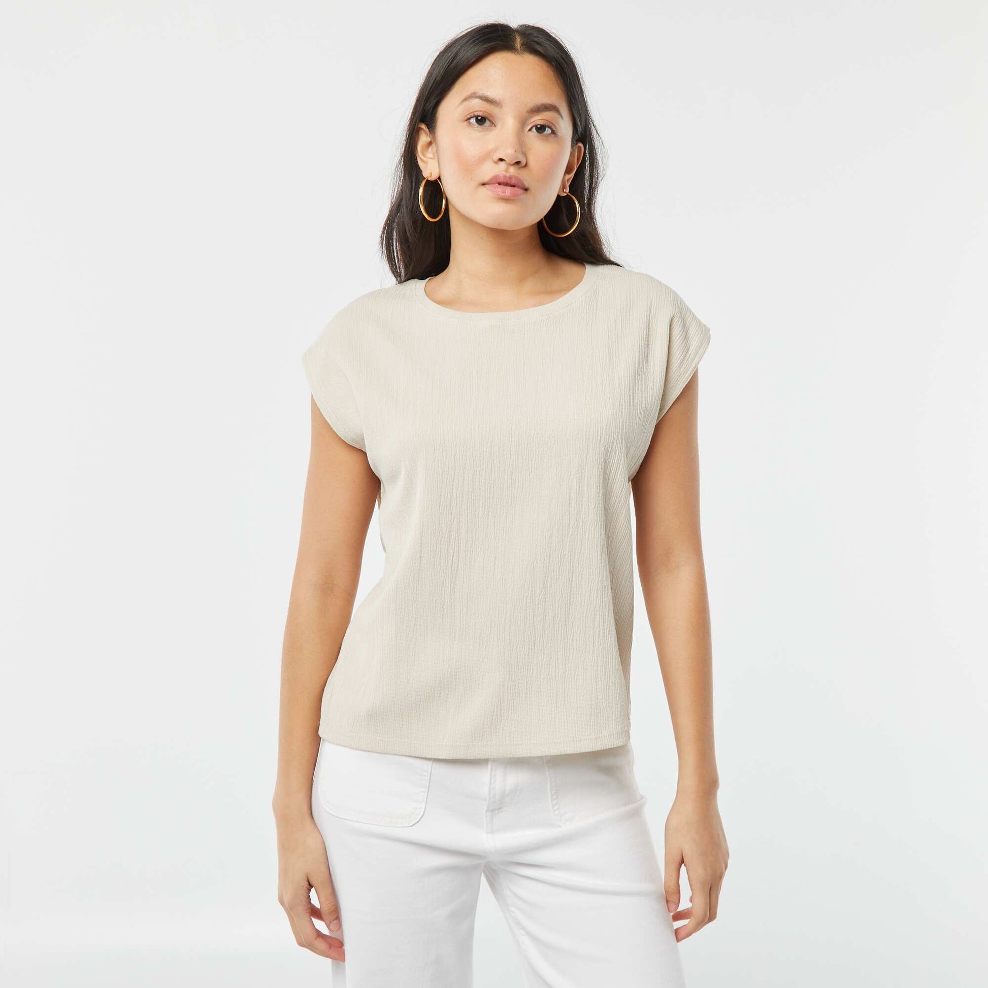 Le basique incontournable ! - T-shirt - Matière fantaisie - Col rond - Manches chauve-souris - Couleur unie - Longueur dos : 55 cm environ - Notre mannequin porte une taille M et mesure 1m75