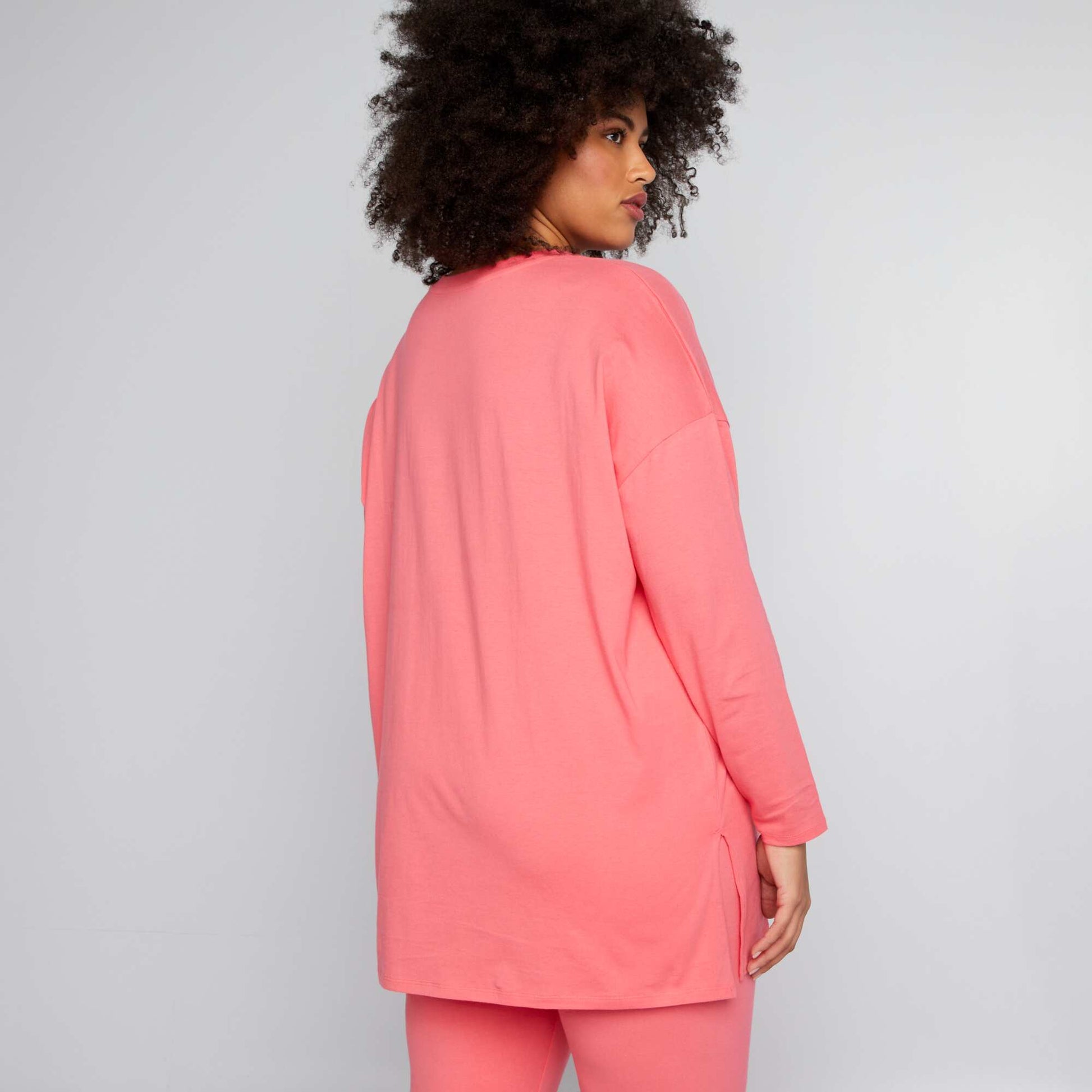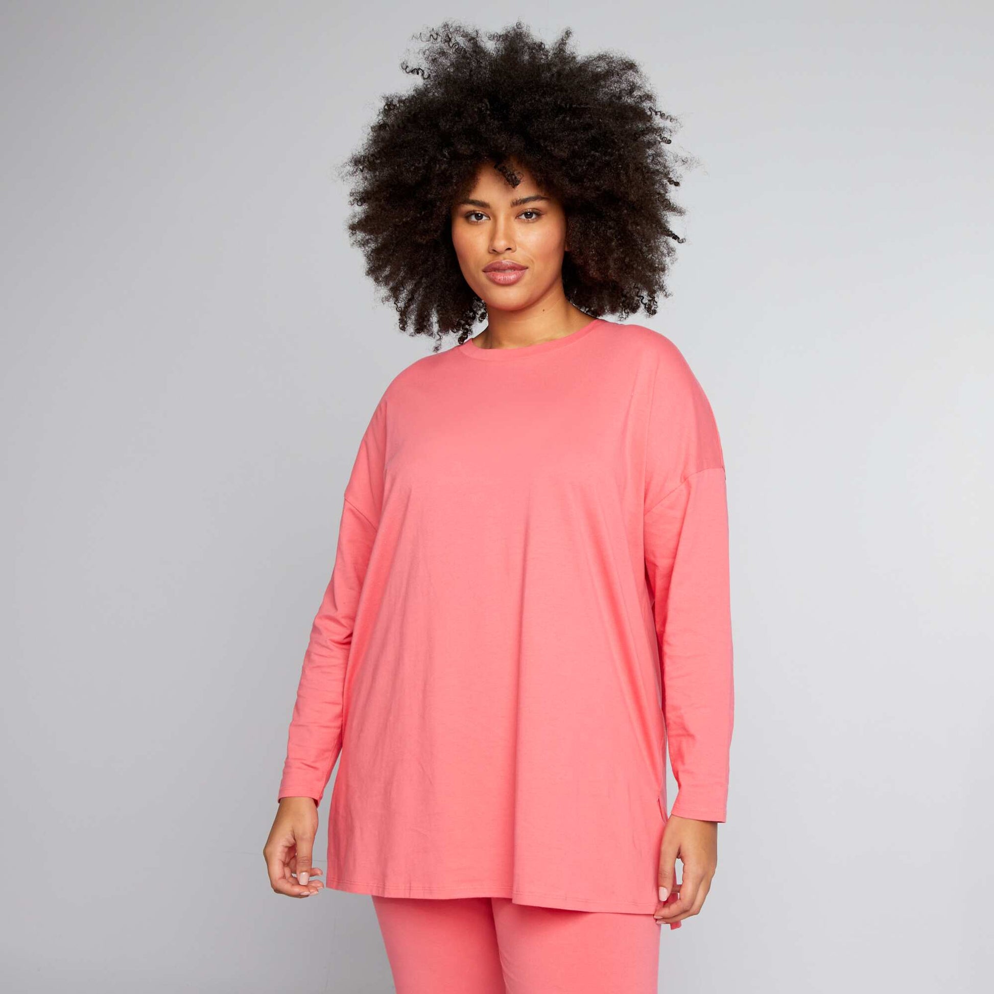 Un tee-shirt uni, rallong , parfait pour un look ample ,-) - T-shirt en maille jersey - Coupe longue - Col rond - Manches longues - Couleur unie - Notre mannequin porte une taille XXL et mesure 1m77