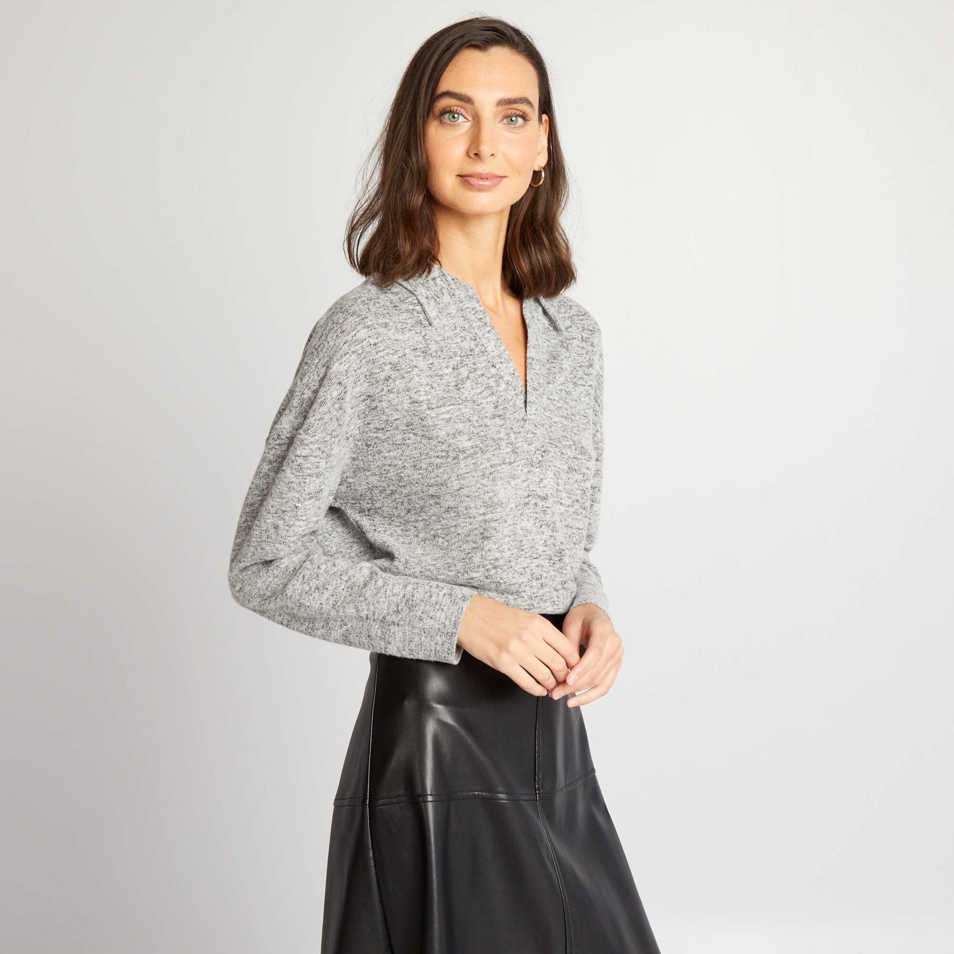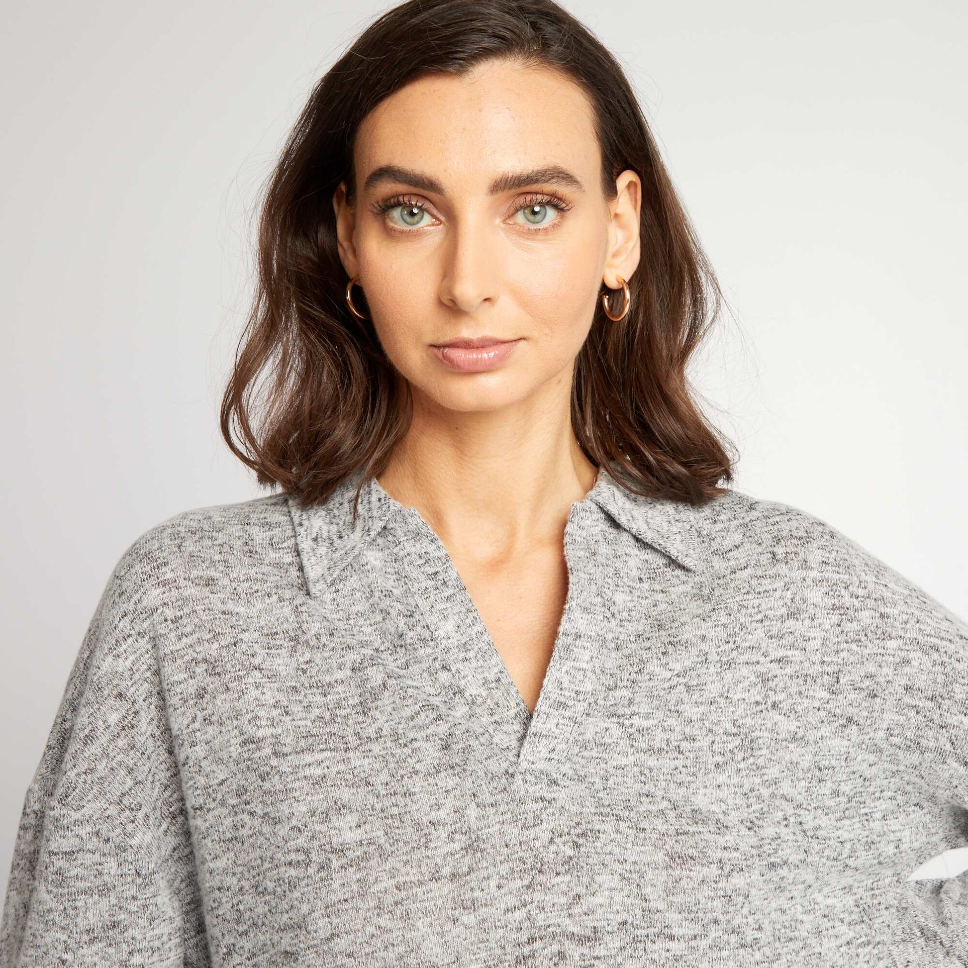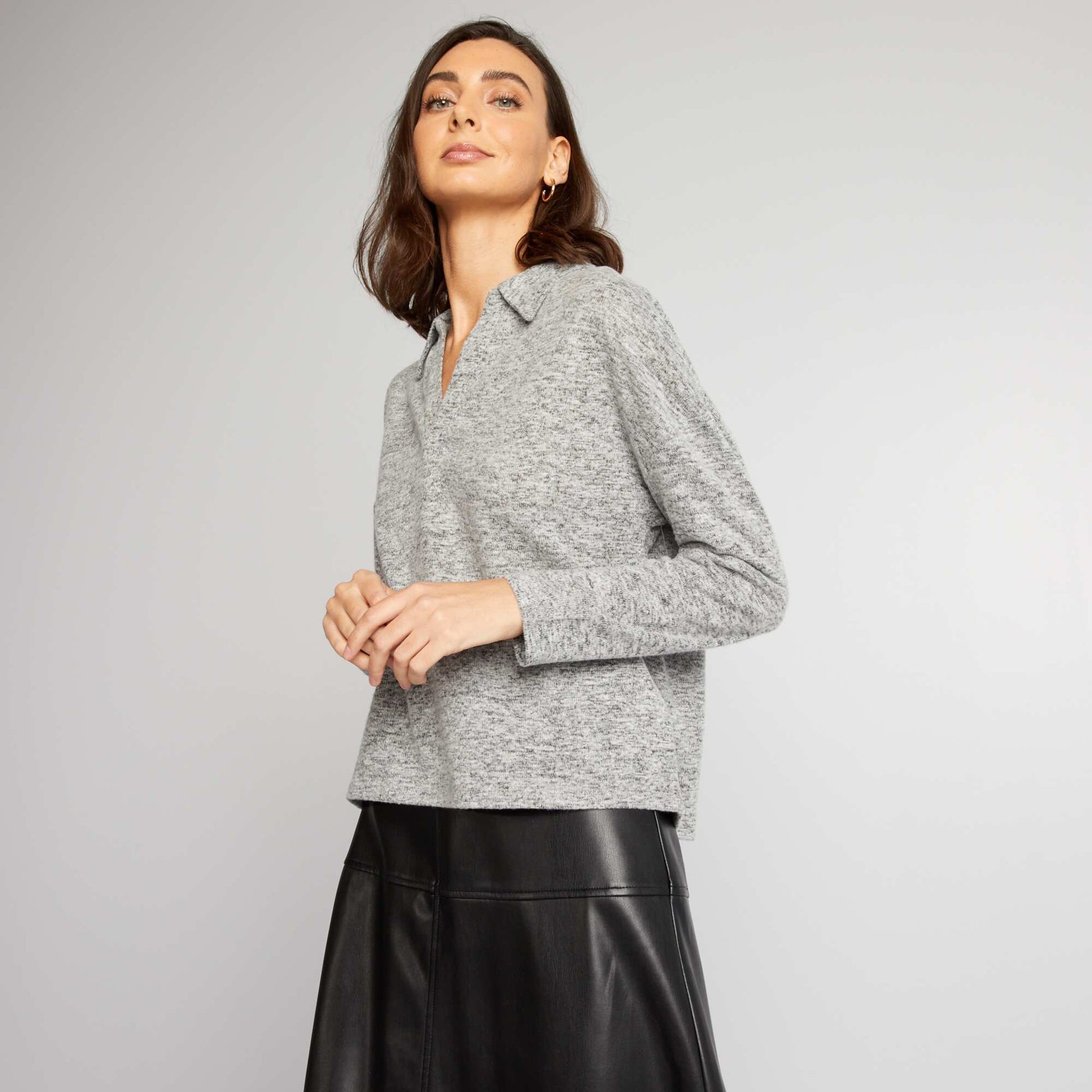 Inutile de chercher plus longtemps, ce t-shirt pour femme manches longues a tout pour plaire. - T-shirt polo - En maille doudou - Col polo - Manches longues - Uni - Longueur dos : 62 cm environ - Notre mannequin porte une taille M et mesure 1m75
