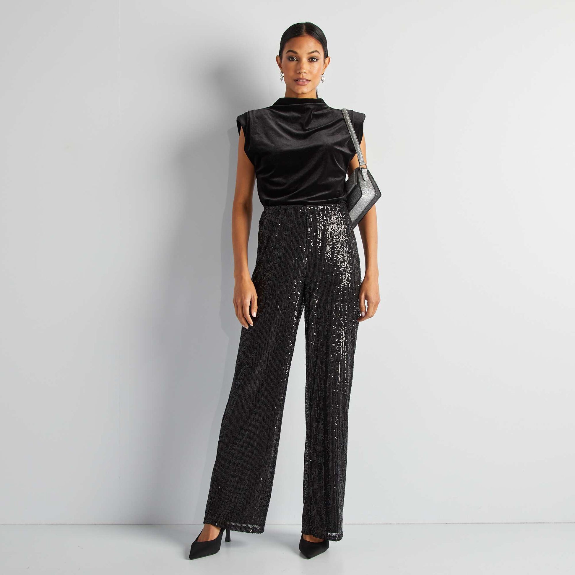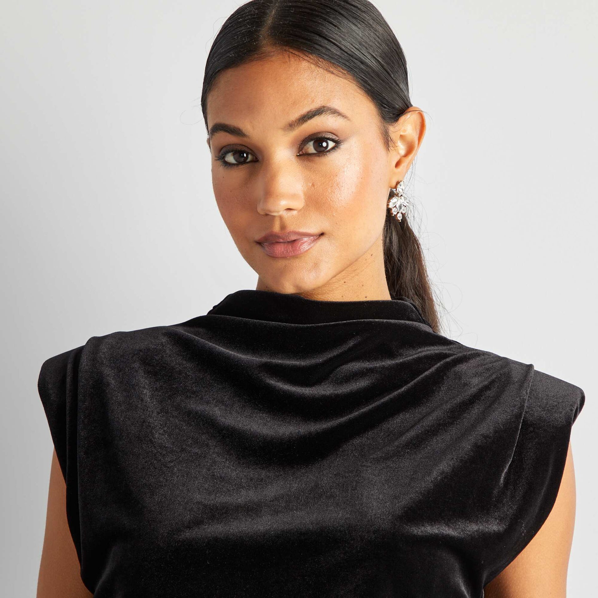 Affirmez votre style avec ce top d'une l gance unique ! - T-shirt - En velours - Sans manches - Avec paulettes - Col montant - Longueur du dos : 58 cm environ - Notre mannequin porte une taille S et mesure 1m75