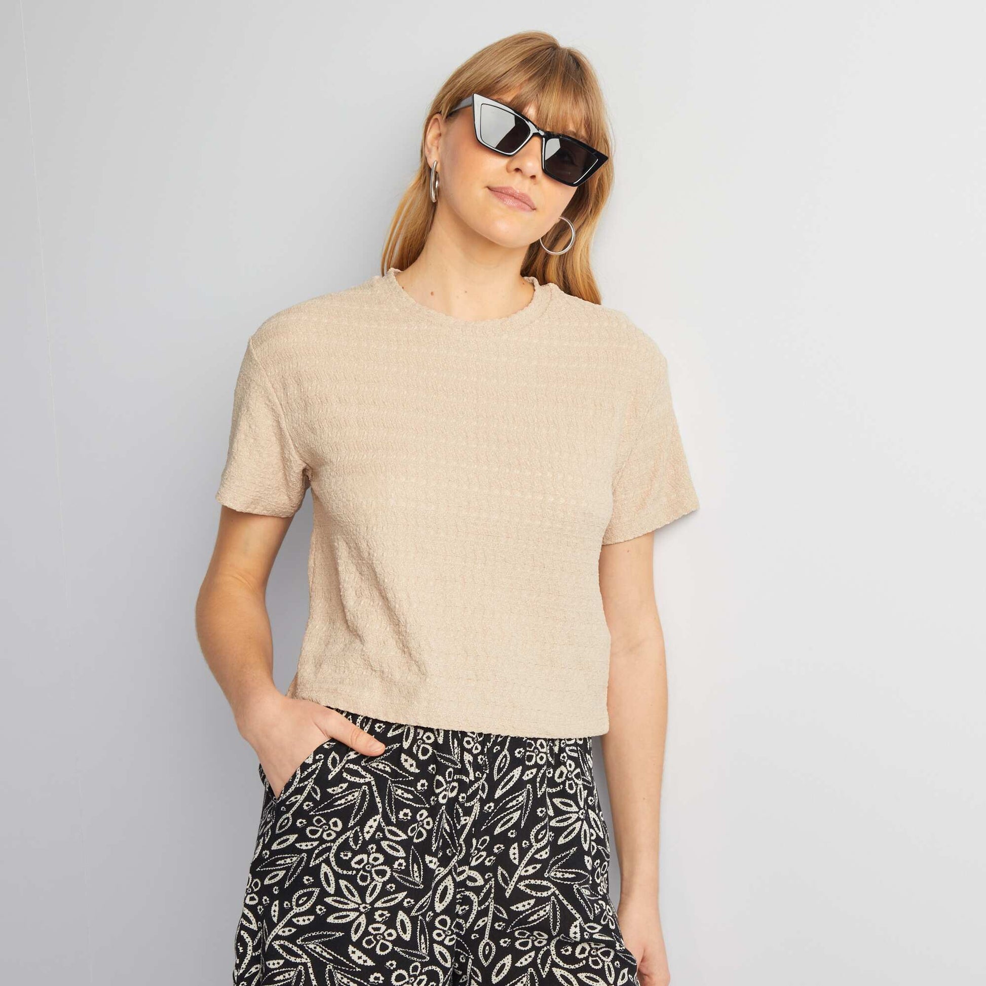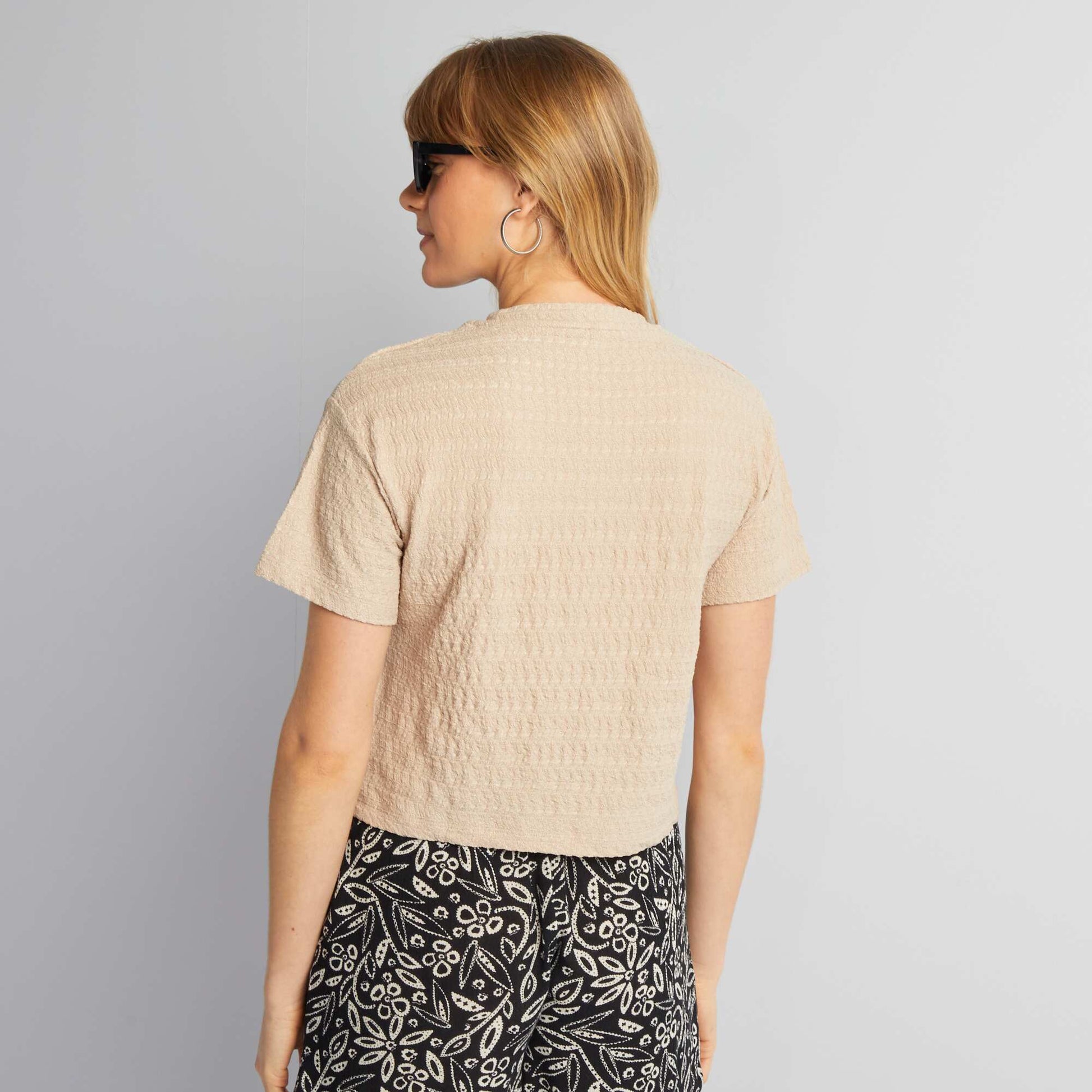 T-shirt stretch en mailel gaufrée Beige
