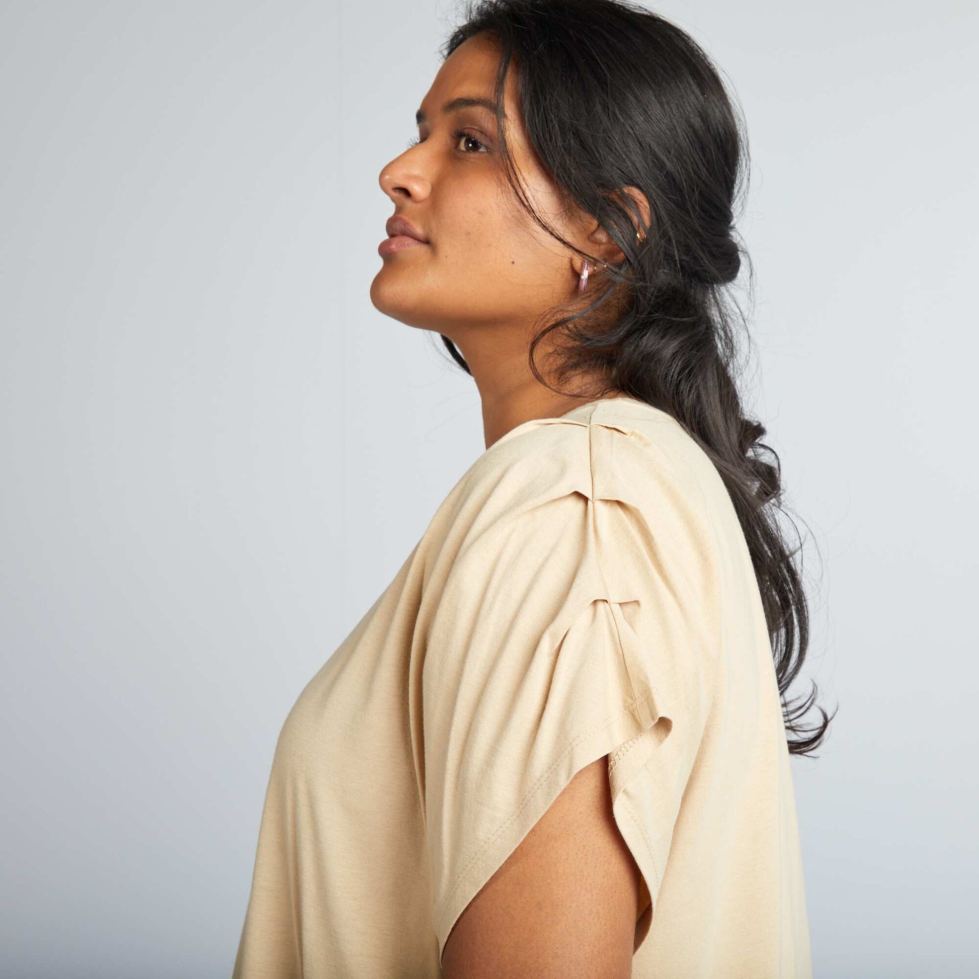 Un t-shirt uni avec des fronces aux paules ! - Tee-shirt en jersey - Col rond - Manches courtes - Fronces au niveau des paules - Couleur unie - Longueur dos : 65 cm environ - Notre mannequin porte une taille XL et mesure 1m76