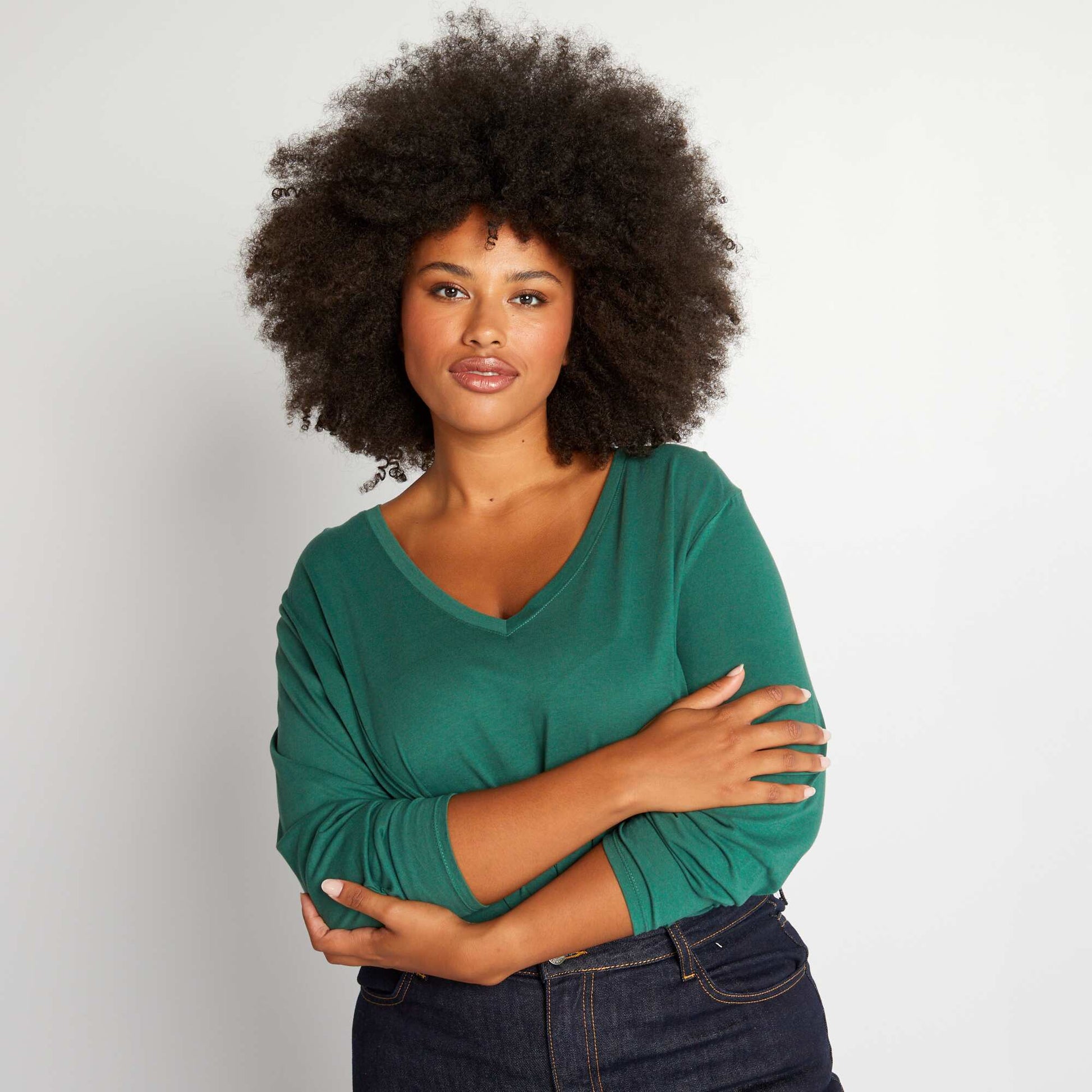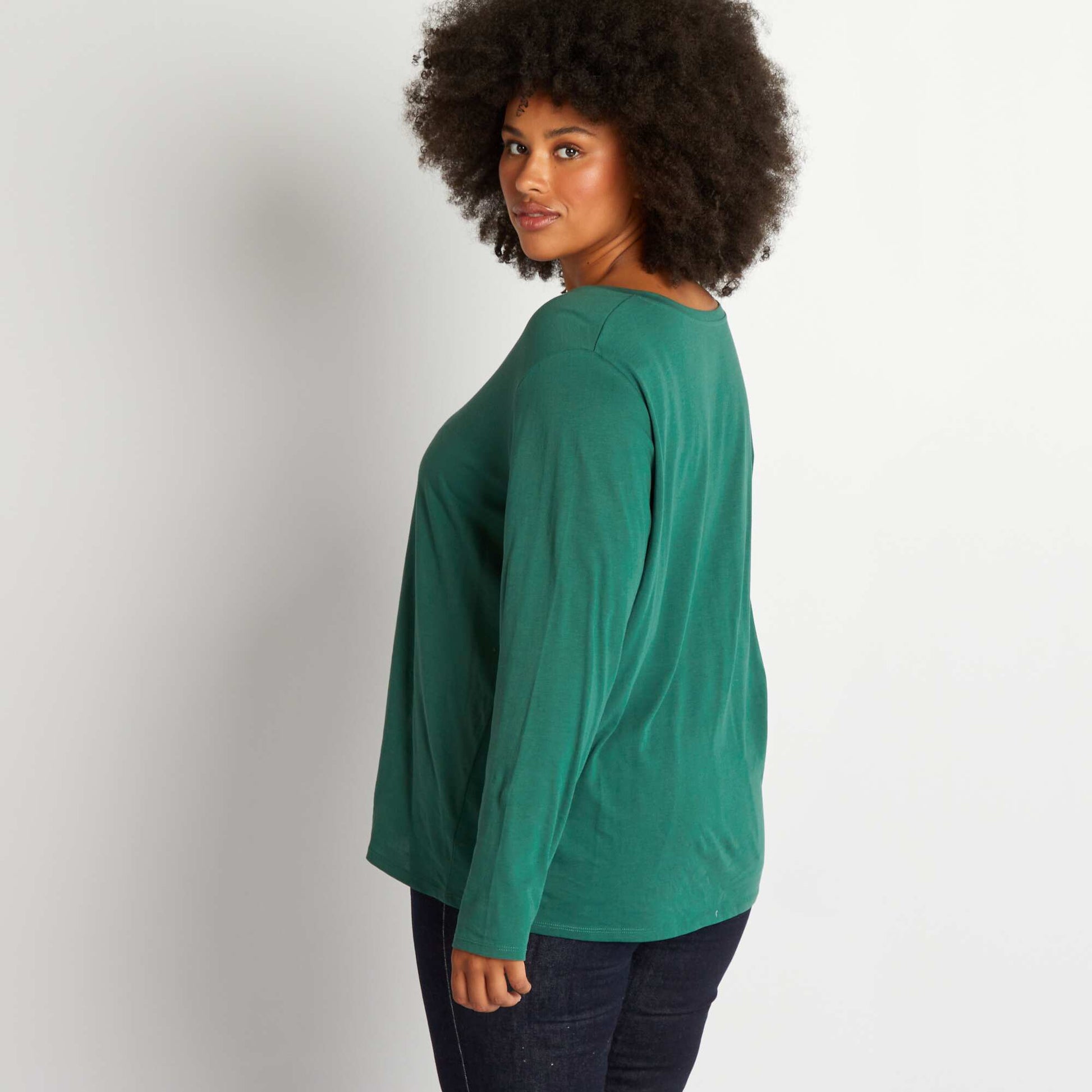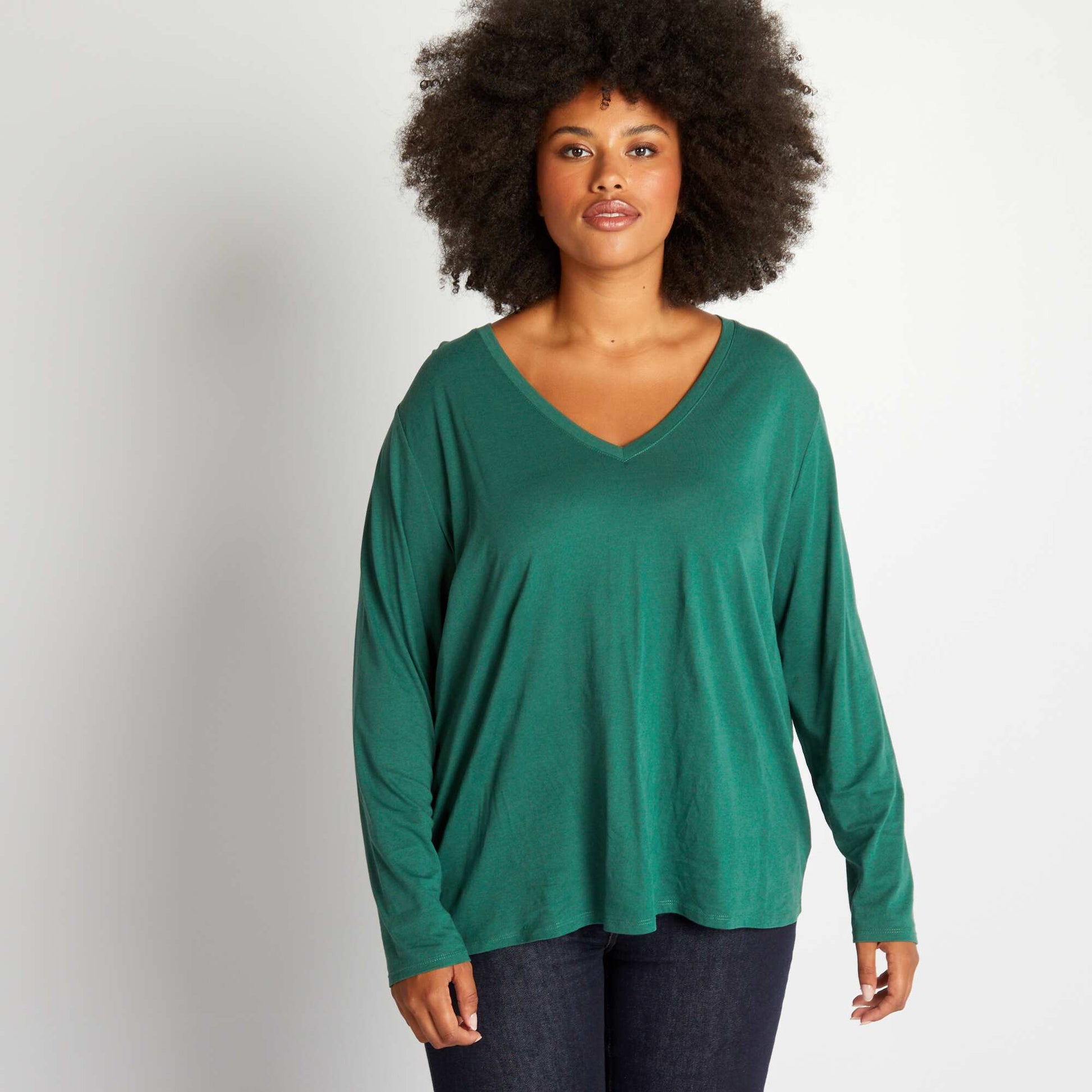 Tee-shirt basique manches longues et col V Vert