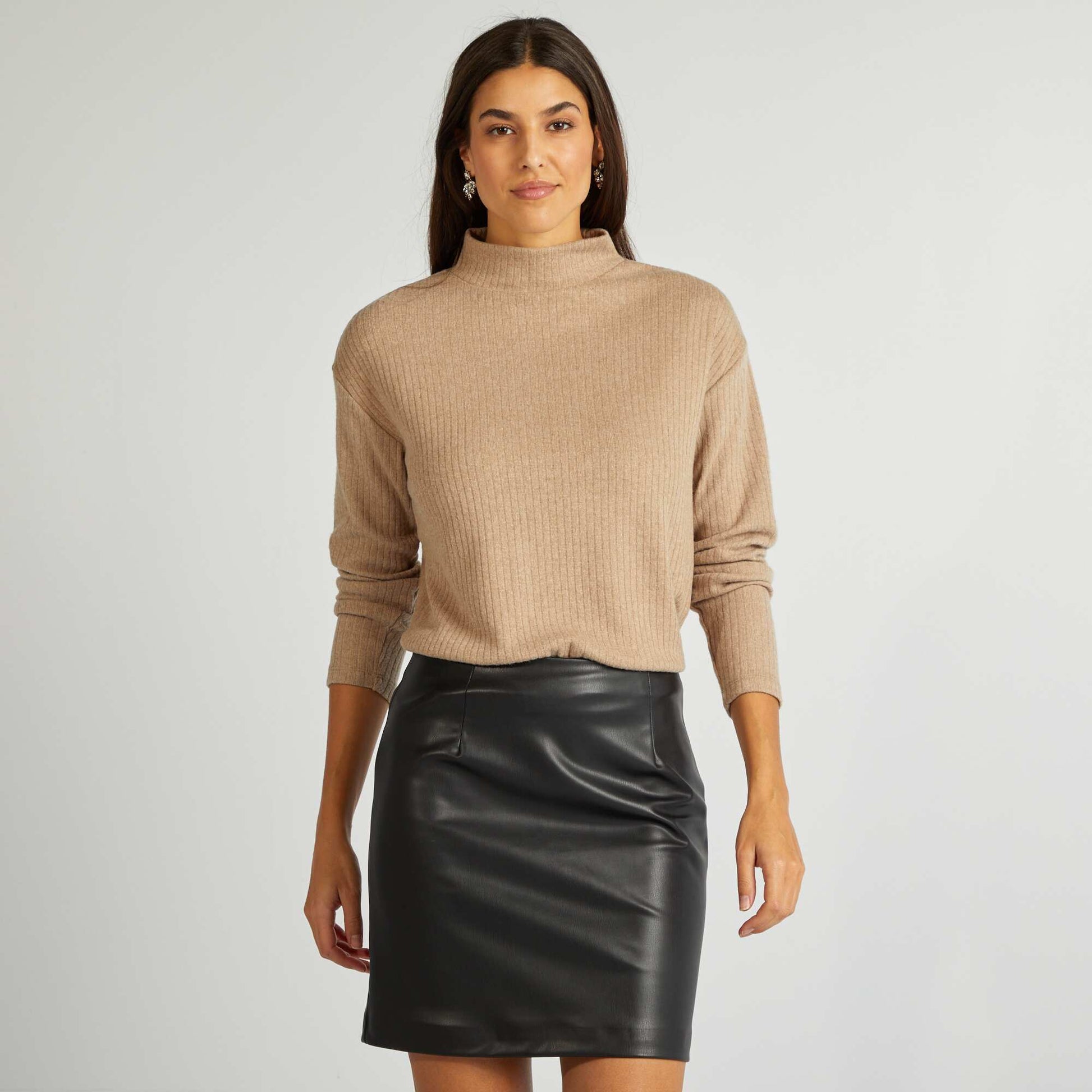 Ce tee-shirt col montant est parfait pour ajouter une touche de chaleur tout en restant styl e. Une pi ce essentielle porter du matin au soir ! - Tee-shirt chaud - Esprit pull - Col montant - Manches longues - Maille fluide c tel e - Longueur dos : 65 cm environ - Notre mannequin porte une taille M et mesure 1m75