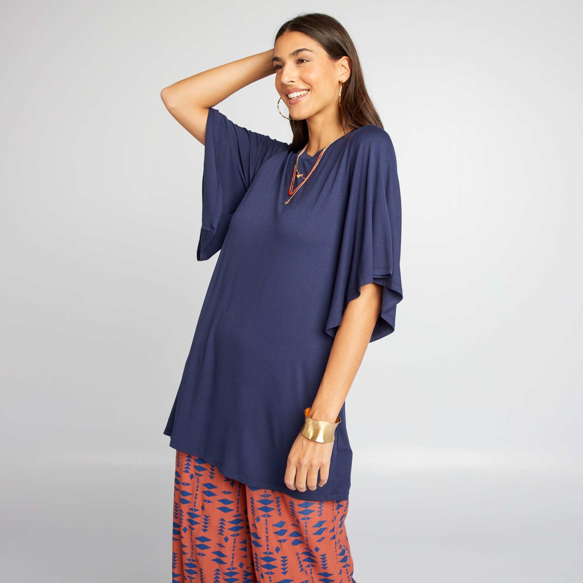 D couvrez le summum du confort et du style avec notre tee-shirt fluide aux manches chauve-souris. - Tee-shirt uni - Mati re ultra-fluide - Manches courtes chauve-souris - Encolure ronde - Longueur dos : 75 cm environ - Notre mannequin porte une taille M et mesure 1m75