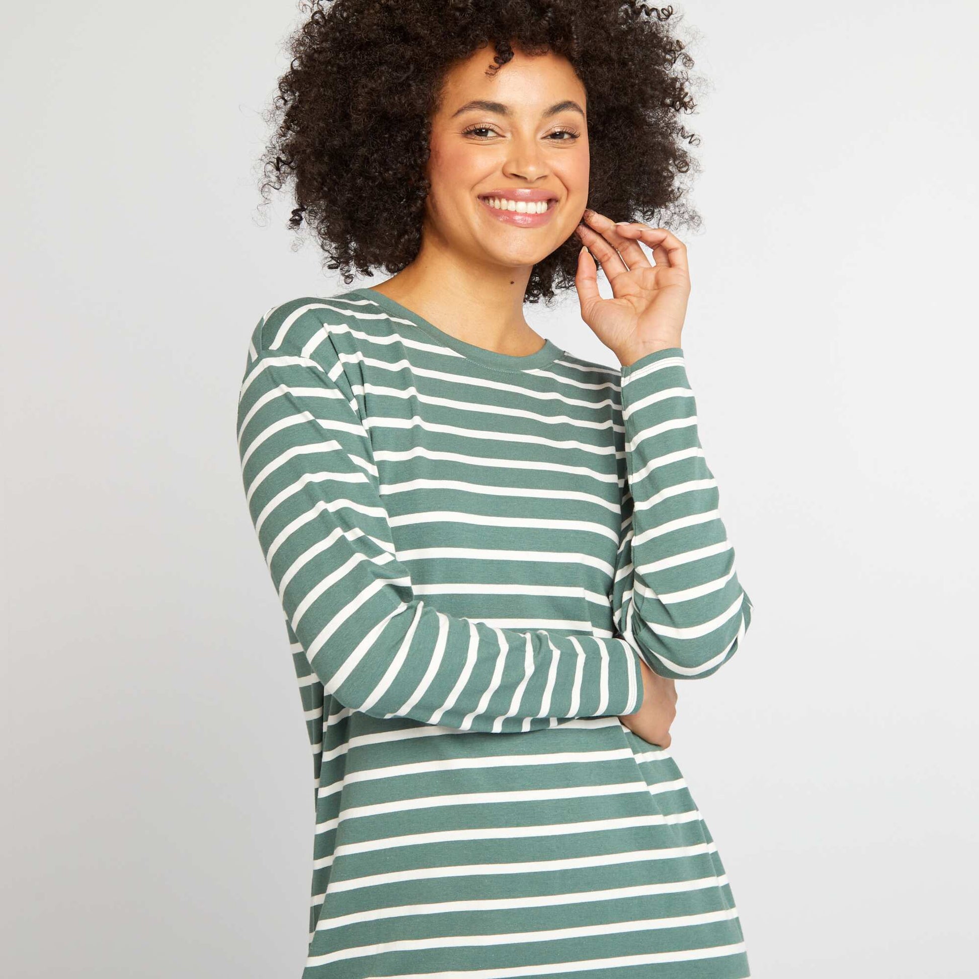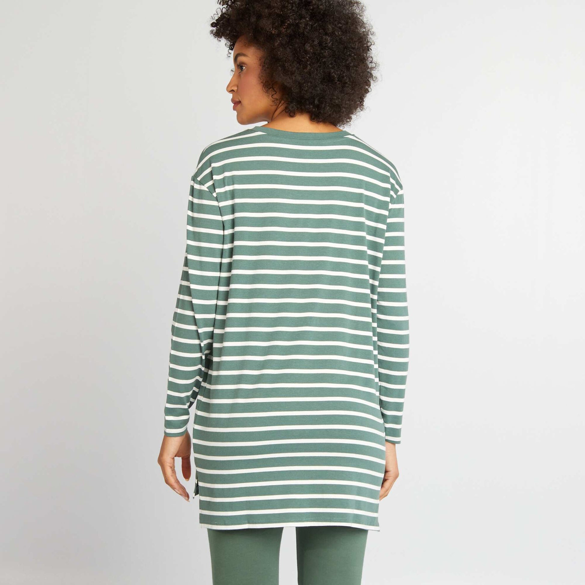 Optez pour un confort ultime avec notre tee-shirt long fluide. - Tee-shirt long - Mati re fluide - Manches longues - Encolure ronde - L g rement + long au dos - Longueur dos : 79 cm environ - Notre mannequin porte une taille S et mesure 1m74