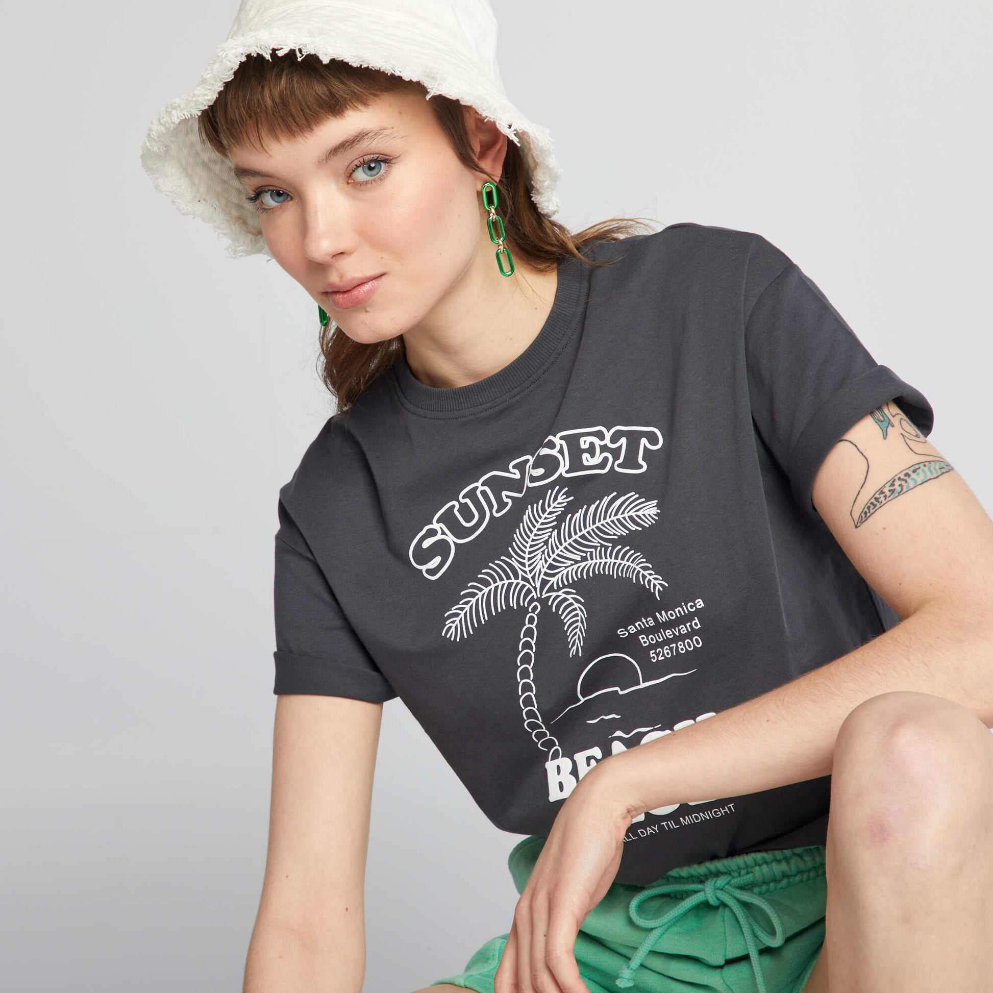 Opte pour le confort et le style avec notre tee-shirt oversize imprim ! - Tee-shirt oversize - En coton - Manches courtes - Col rond c tel - Imprim message sunset devant - Longueur dos : 54 cm environ - Notre mannequin porte une taille S et mesure 1m76