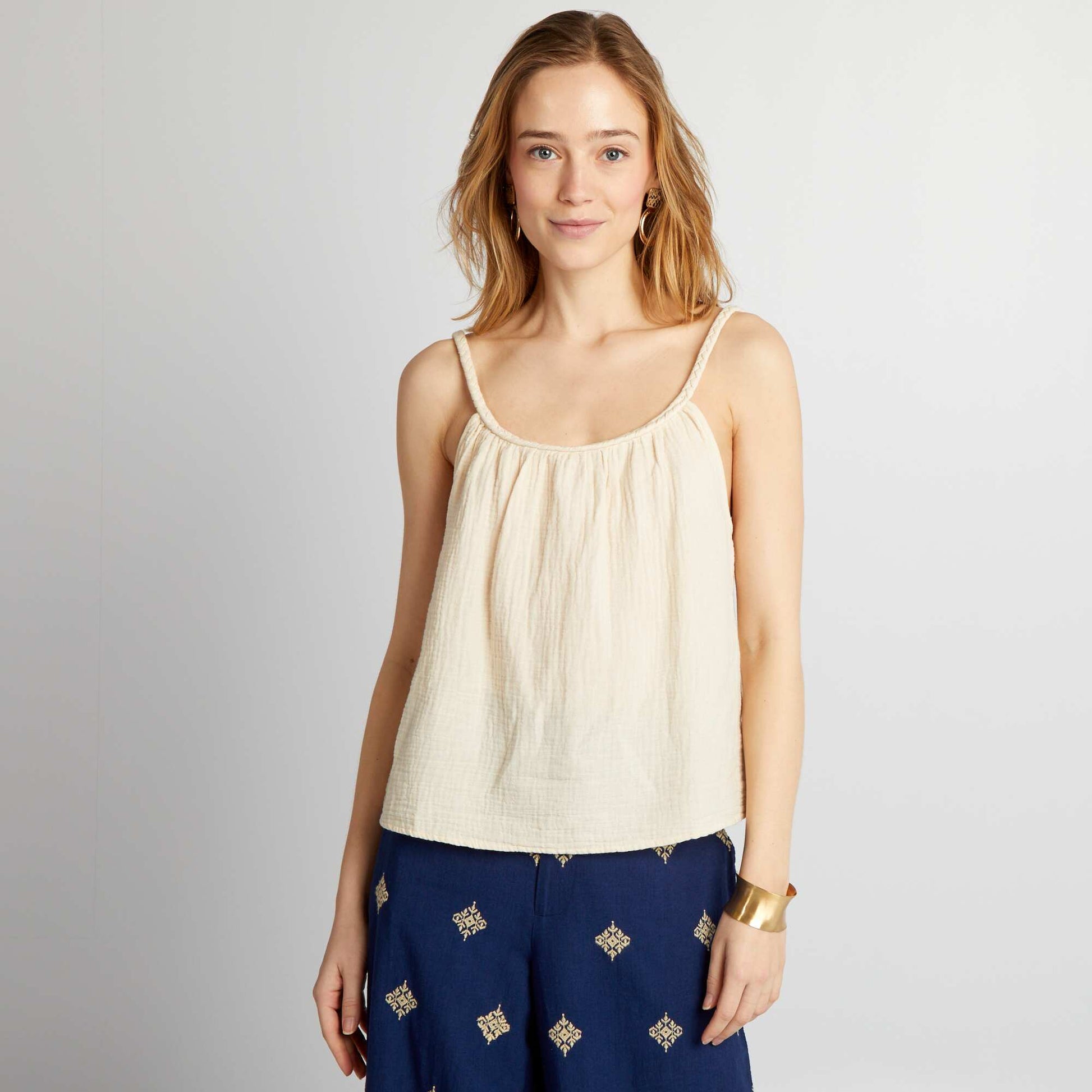 Un joli top l ger, avec ses bretelles tress es pour une touche d'originalit ! - Top - En double gaze de coton - Col droit - Bretelles tress es - Coupe vas e - Couleur unie - Notre mannequin porte une taille M et mesure 1m76