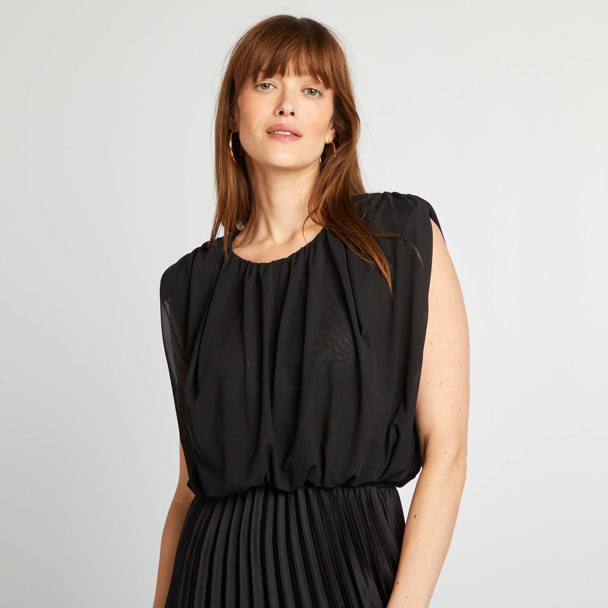 Un top sans manches super orignal ! - Top - En voile plissé - Col rond élastiqué - Sans manches - Uni - Longueur dos : 42 cm environ - Notre mannequin porte une taille S et mesure 1m75.