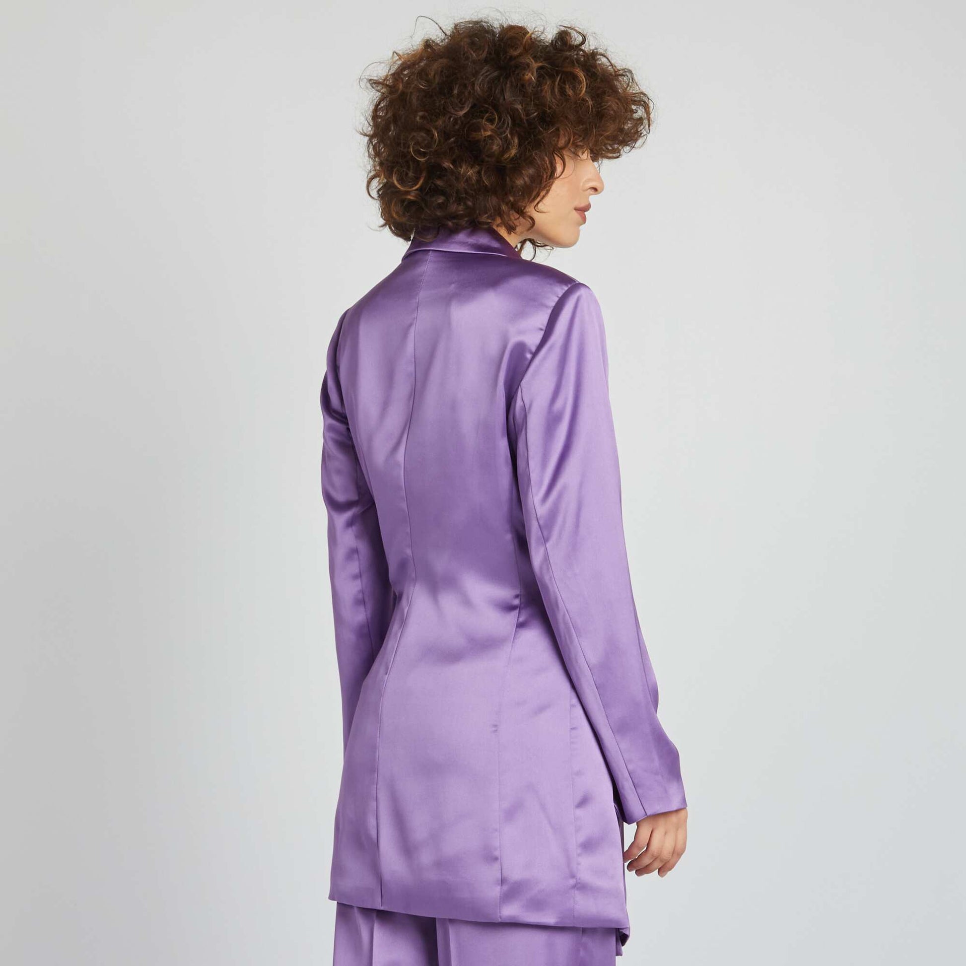 Ajoutez un peu de nouveaut votre garde robe et osez le total look satin ! - Veste longue en satin - Col tailleur - Manches longues - Ceinture nouer sur le c t - Liens nouer l'int rieur - Longueur du dos : 91 cm - Notre mannequin porte une taille M et mesure 1m75 - Conseil mode : Pensez associer cette sublime veste avec le pantalon assorti (r f : AZT88, sous r serve de disponibilit )