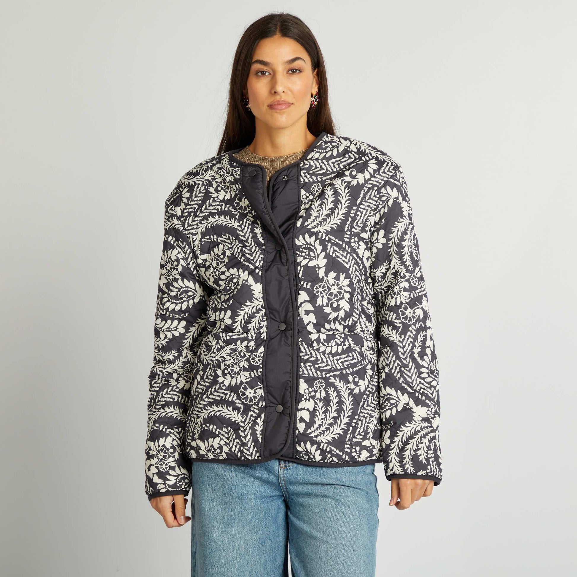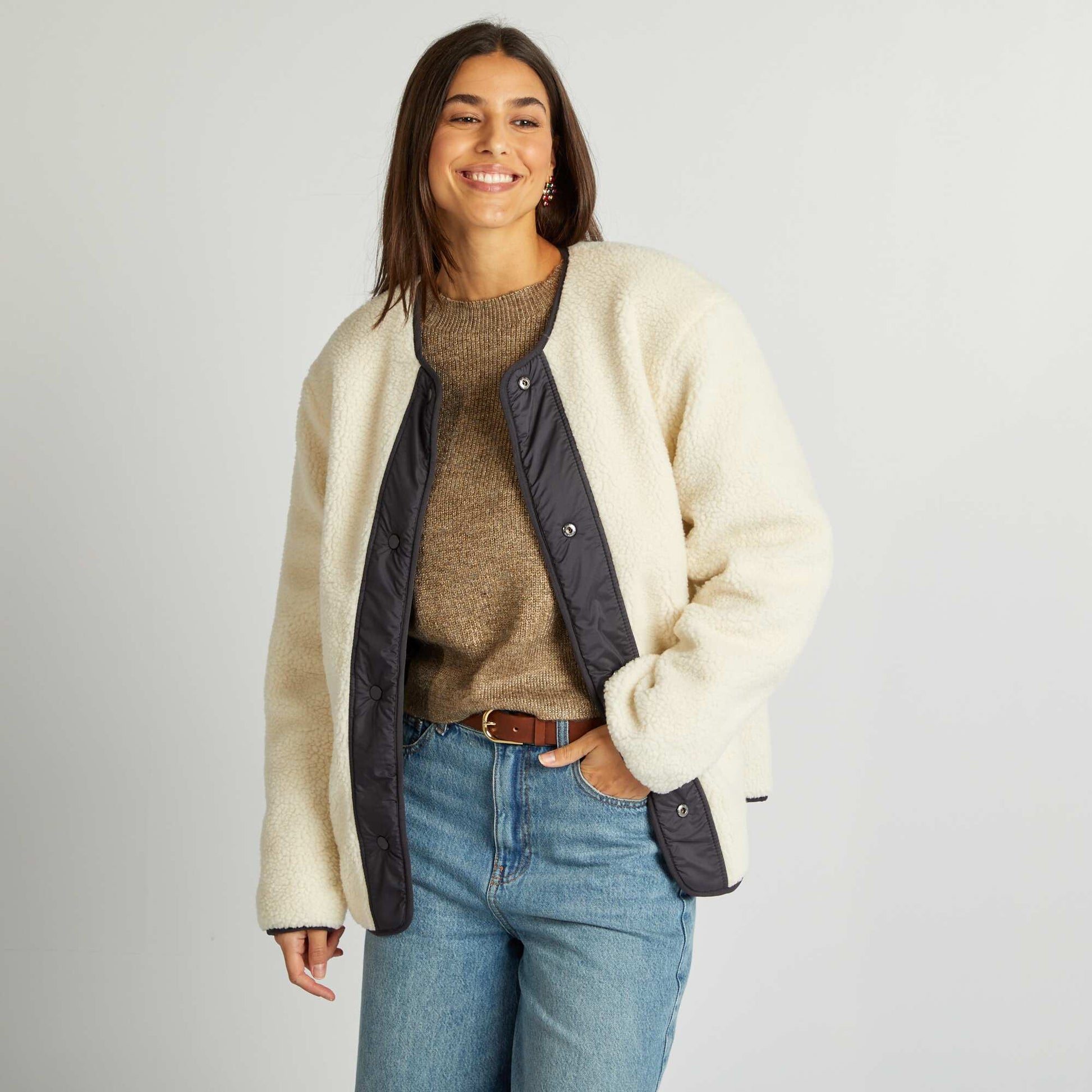 Doublez votre style avec notre veste réversible, une pièce polyvalente qui offre des looks distincts pour s'adapter à toutes vos envies. - Veste réversible - Coupe oversize - Ouverture par pressions - Col rond - Manches longues - 2 poches à l'avant - Une face matelassée imprimé all over - Une face effet moutonné - Longueur dos : 65 cm environ - Notre mannequin porte une taille S et mesure 1m75