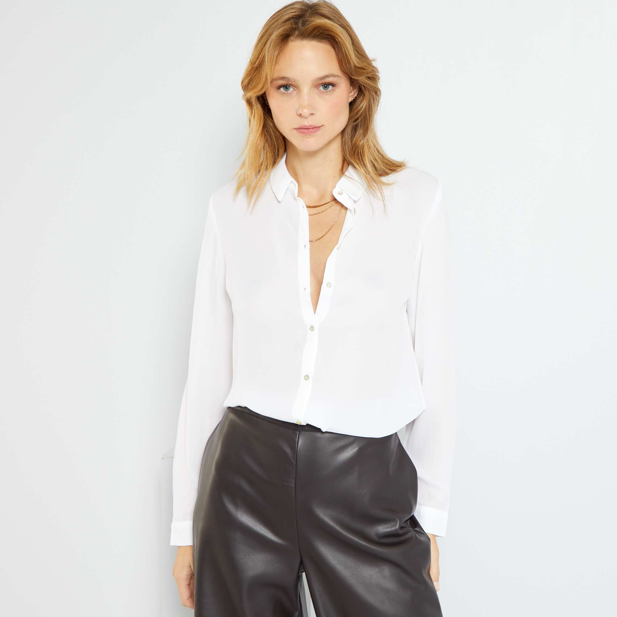 NouveautéExclu WebAjouter au panierBlouse maille crêpe avec bord ajouré MARRON