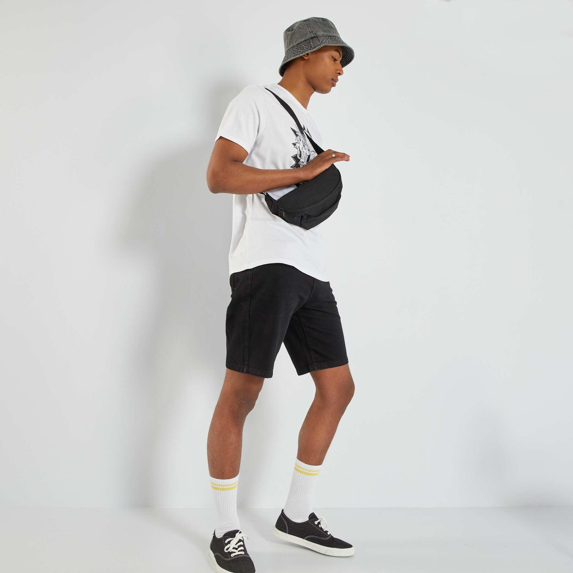 Un bermuda en jean tendance, parfait pour votre été ! - Bermuda en jean - Regular fit / coupe droite - Ouverture boutonnée et zippée - 2 poches devant + 1 ticket - 2 poches derrières - Couleur unie - Longueur entrejambe : 23 cm environ - Largeur bas de jambe : 27 cm environ - Notre mannequin porte une taille M et mesure 1m87