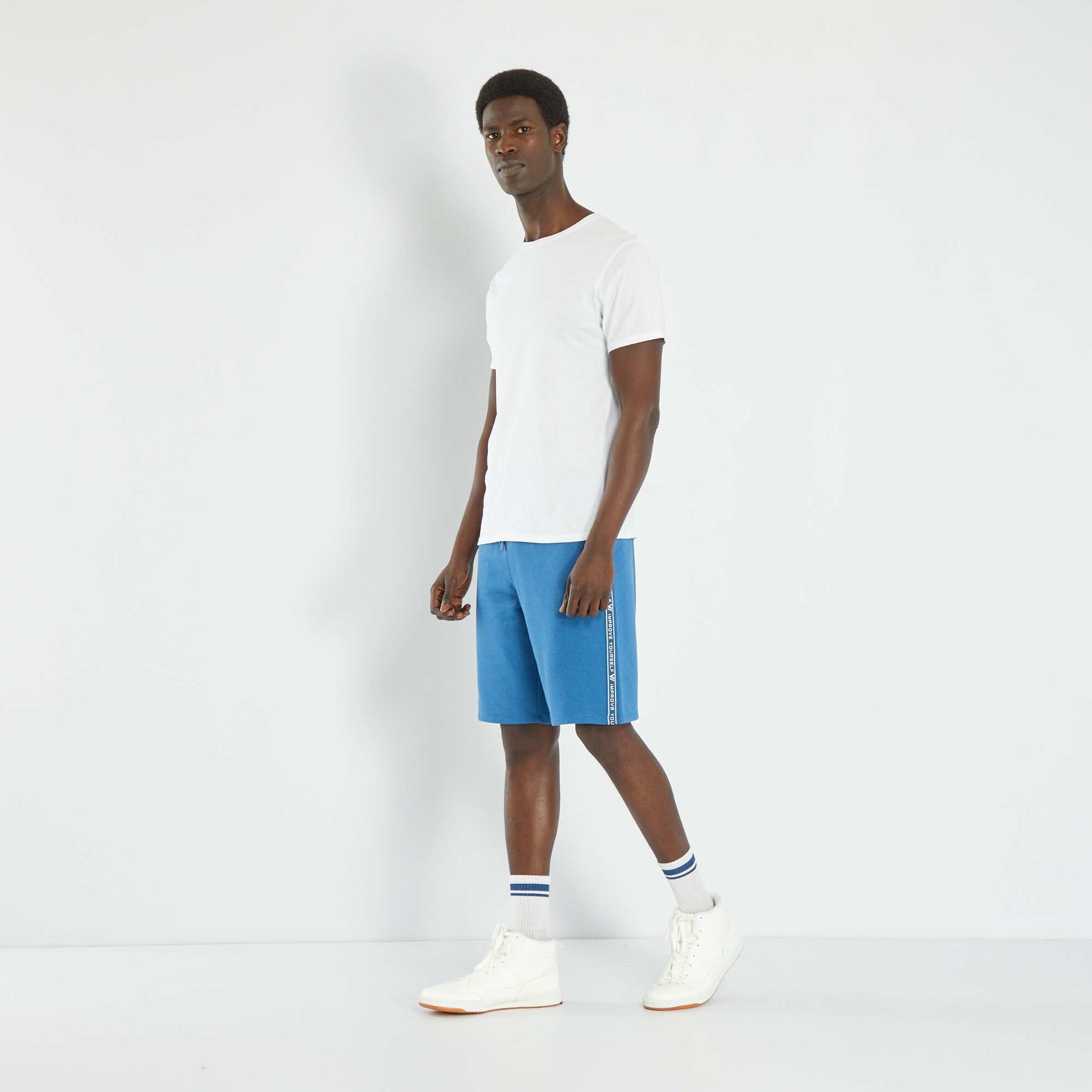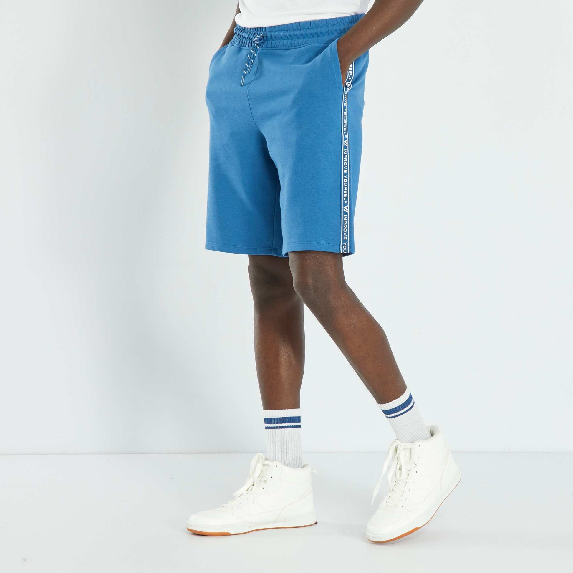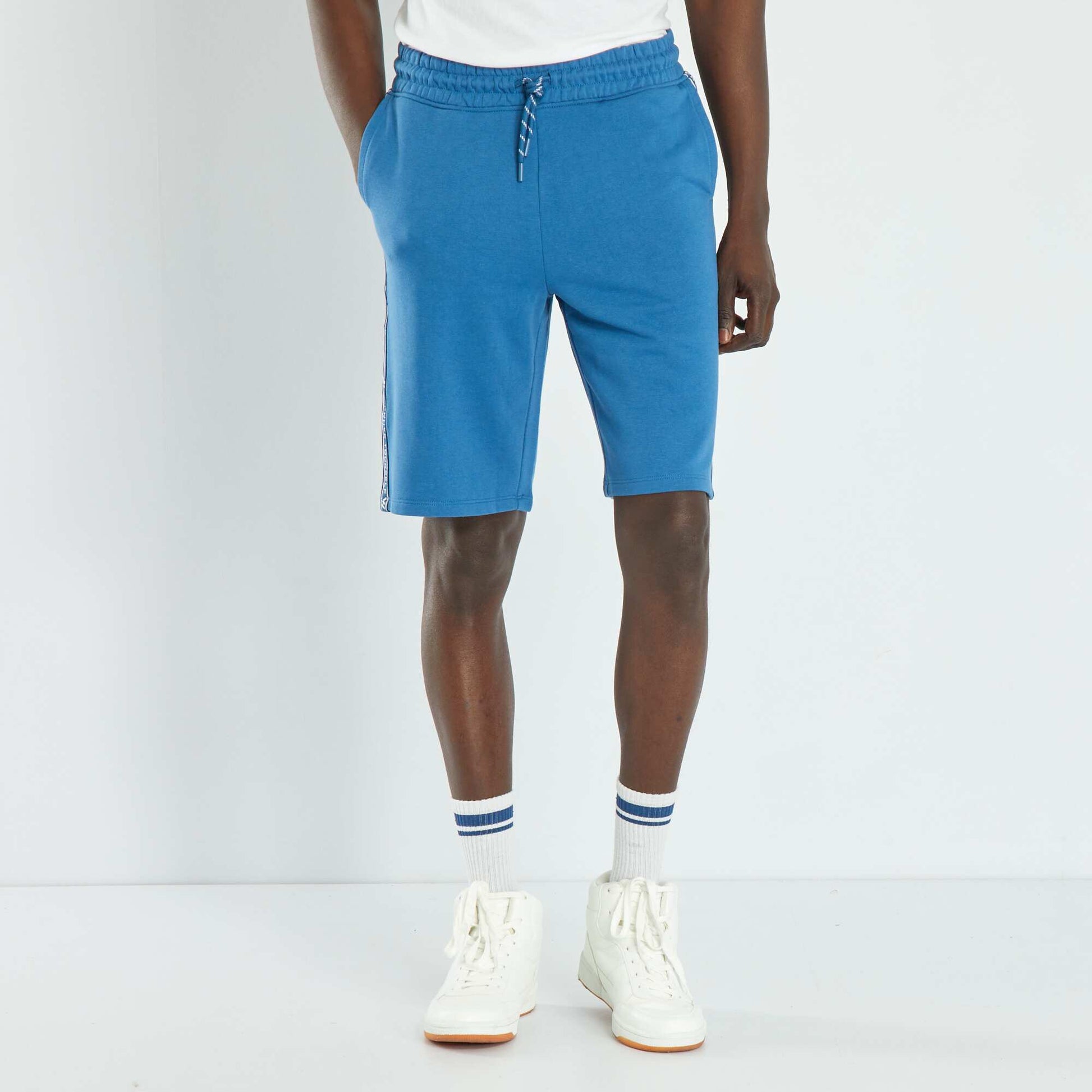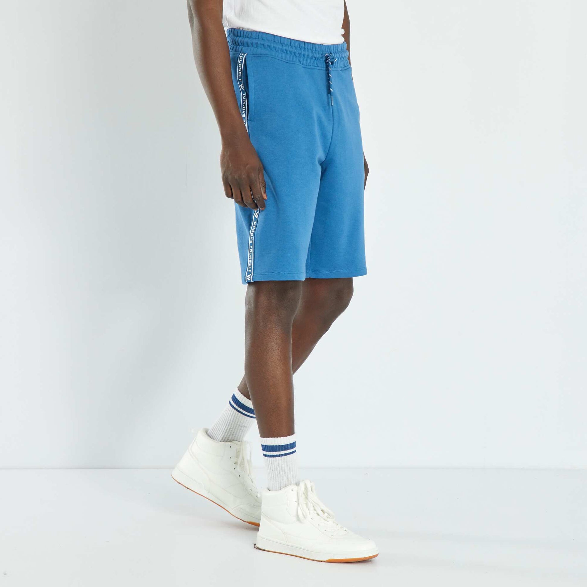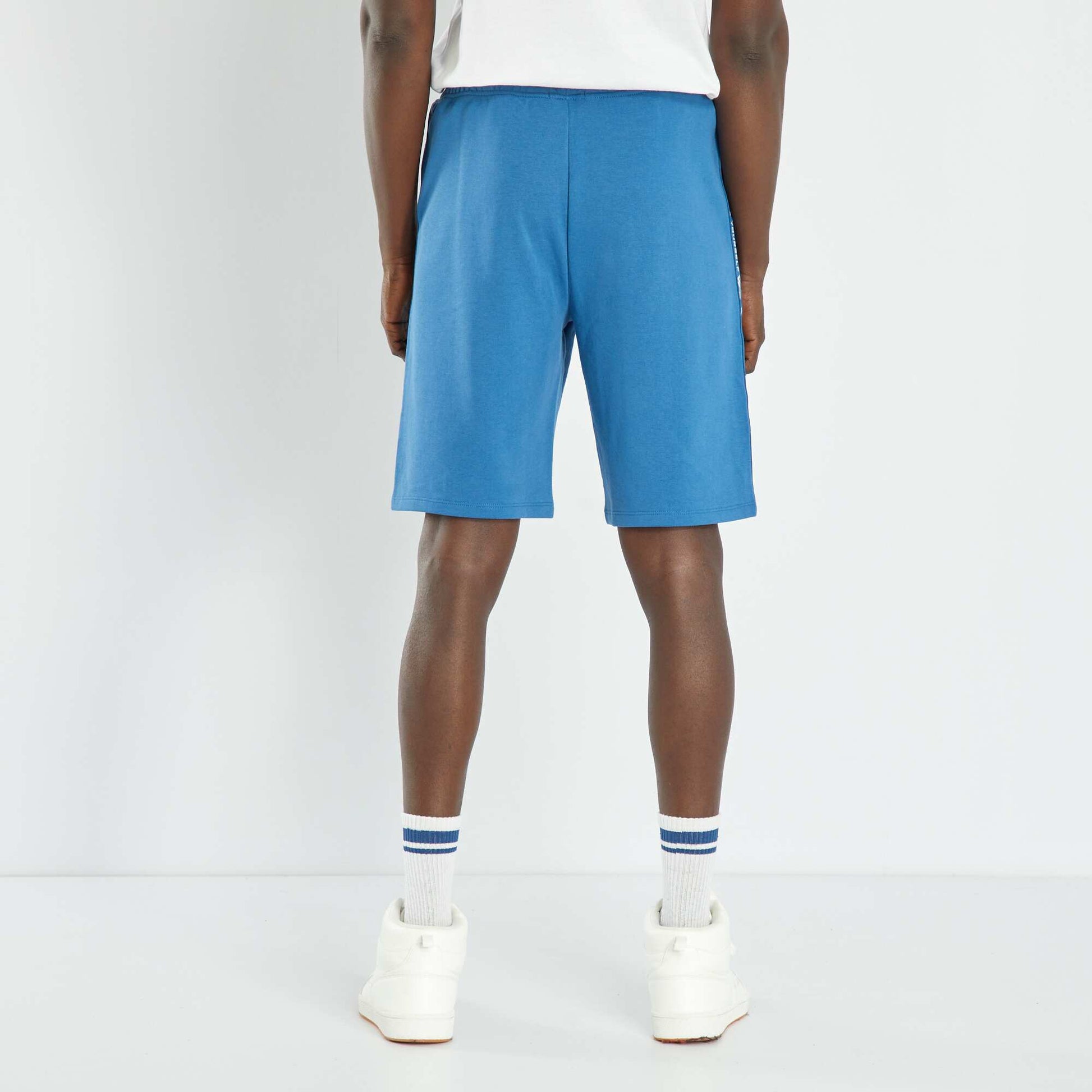 Bermuda en molleton avec bandes BLEU