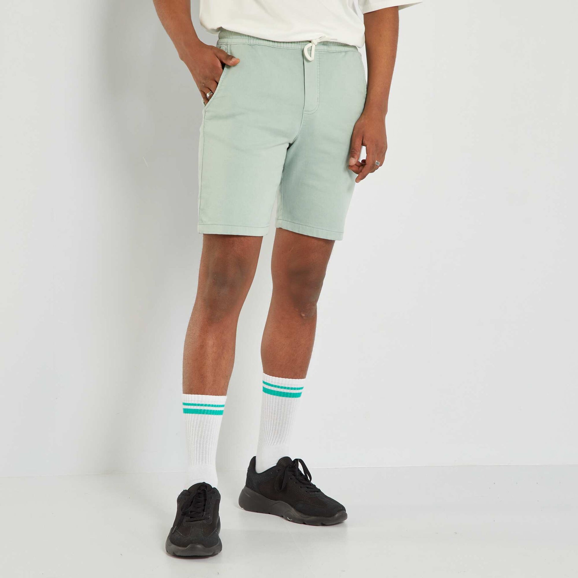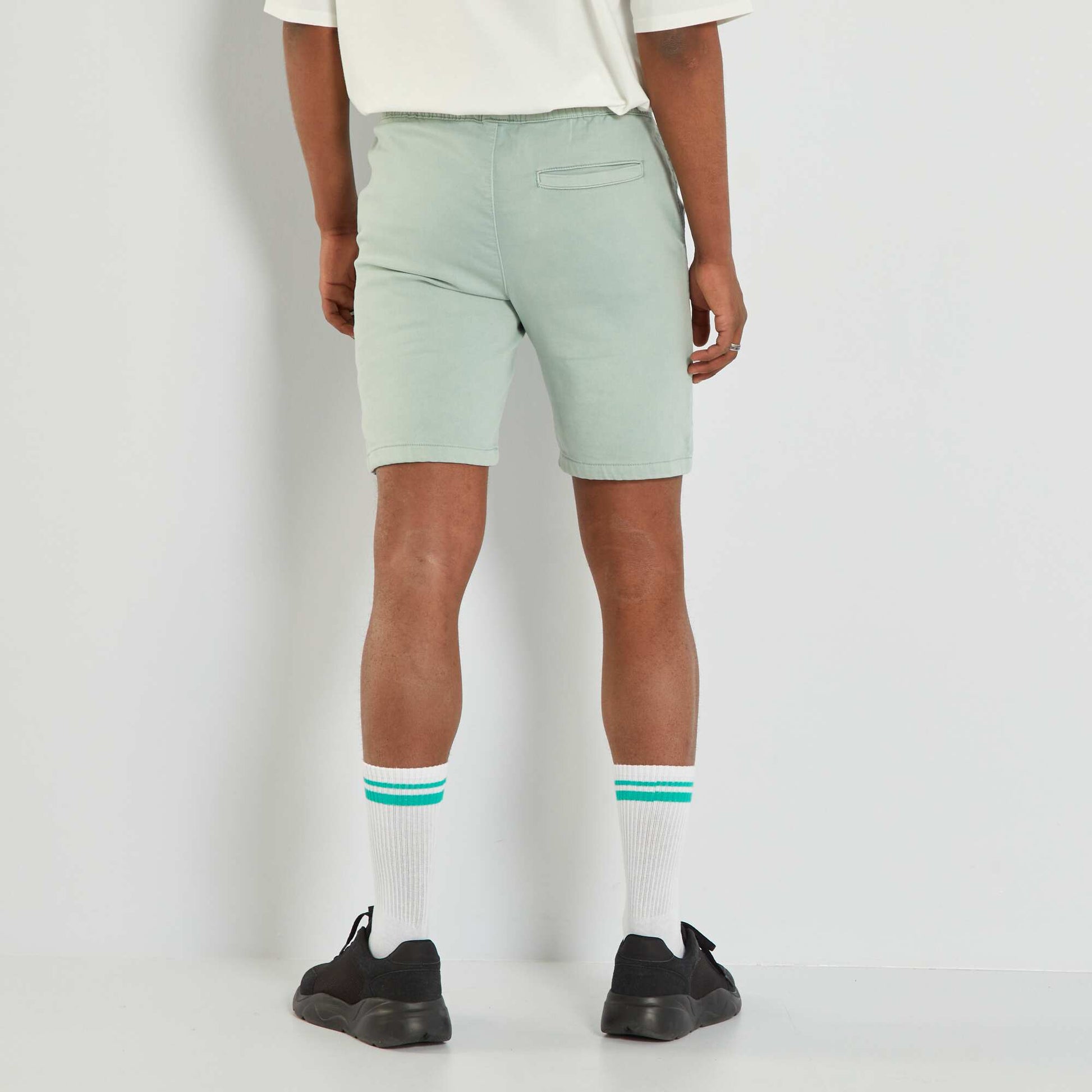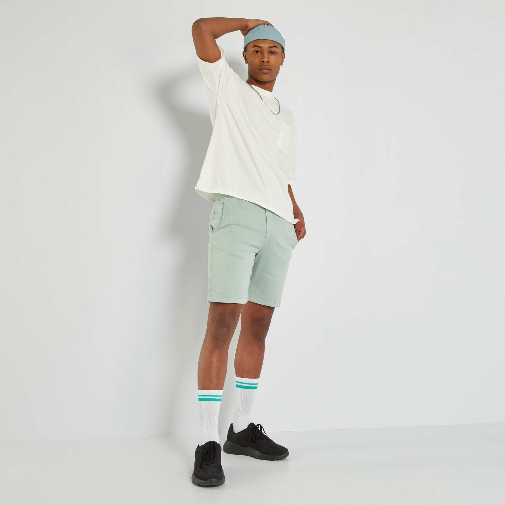 Un bermuda en molleton uni avec une taille élastiquée. Parfait pour une tenue chill ou un look streetwear soigné ;-) - Bermuda en molleton - Molleton non gratté (french terry) - Taille élastiquée - Cordons à nouer - 2 poches sur les côtés - 1 poche au dos - Couleur unie - Notre mannequin porte une taille M et mesure 1m84