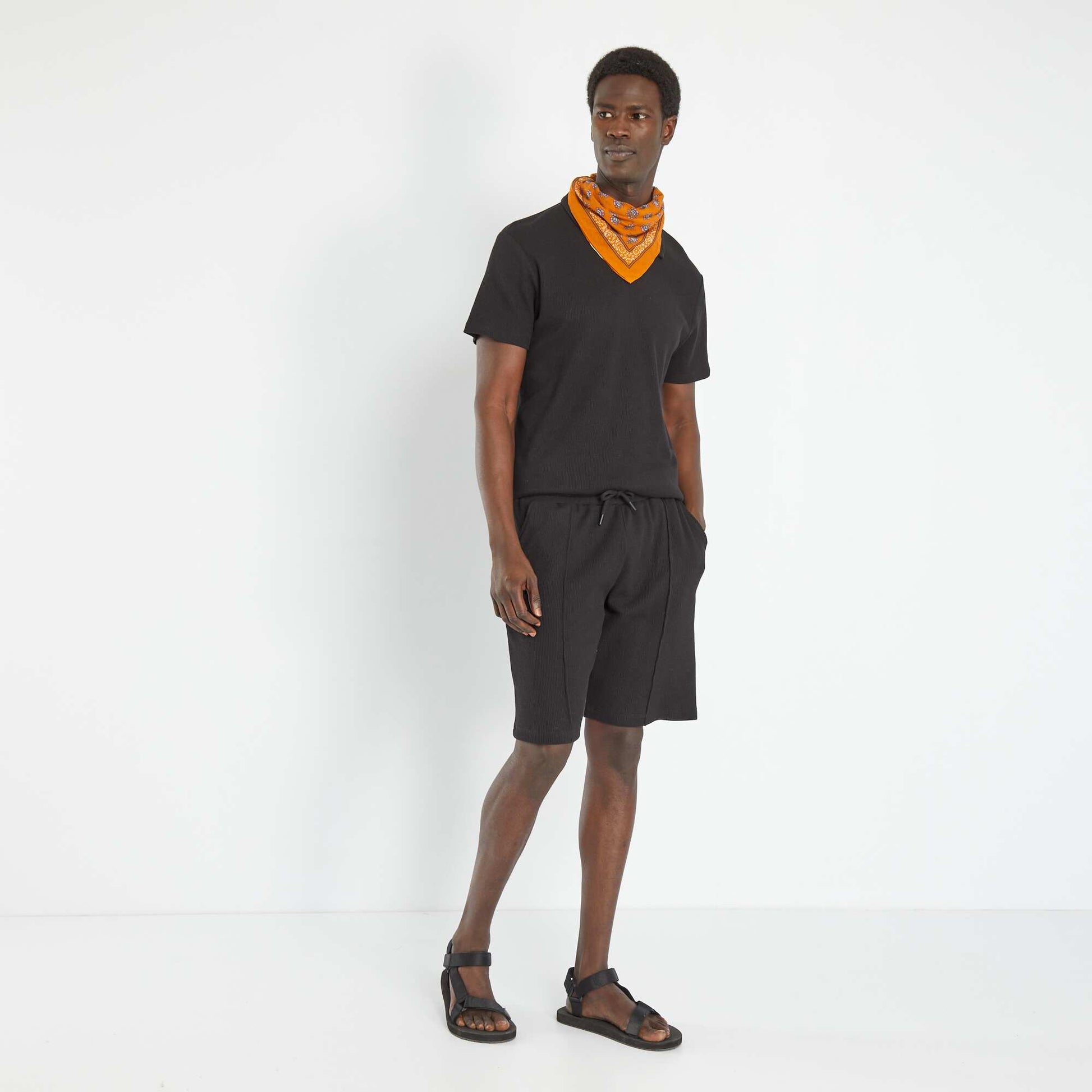 Bermuda uni en nid d'abeille noir