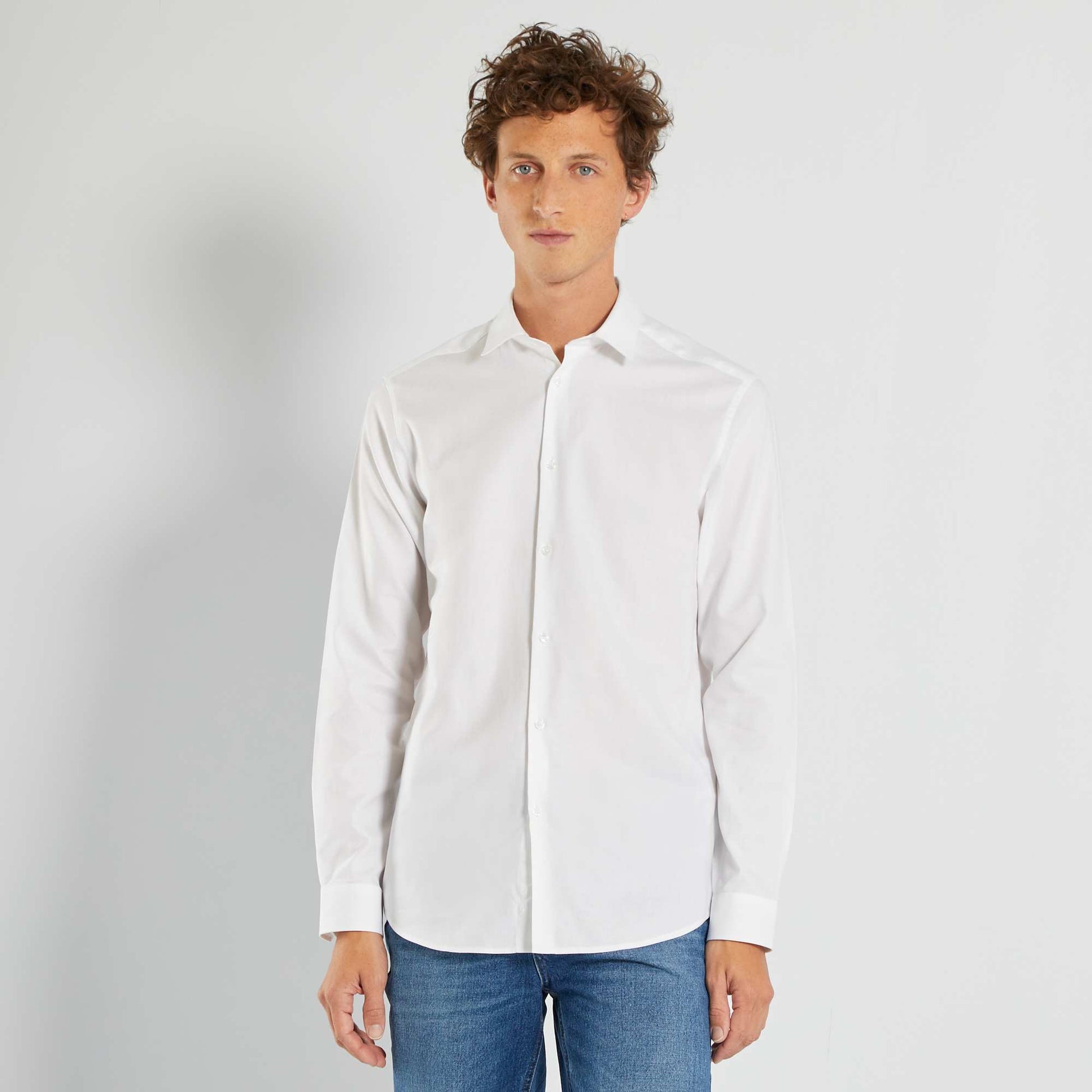 La chemise en oxford, un tissage textur l gant, id al pour vos tenues business ou twister pour un rendu plus casual. - Chemise en oxford de coton majoritaire - Regular fit / coupe droite - Col fran ais pointes libres - Manches longues poignets 1 bouton - Ouverture boutonn e - Base arrondie - Longueur dos : 76 cm - Notre mannequin porte une taille M et mesure 1m87